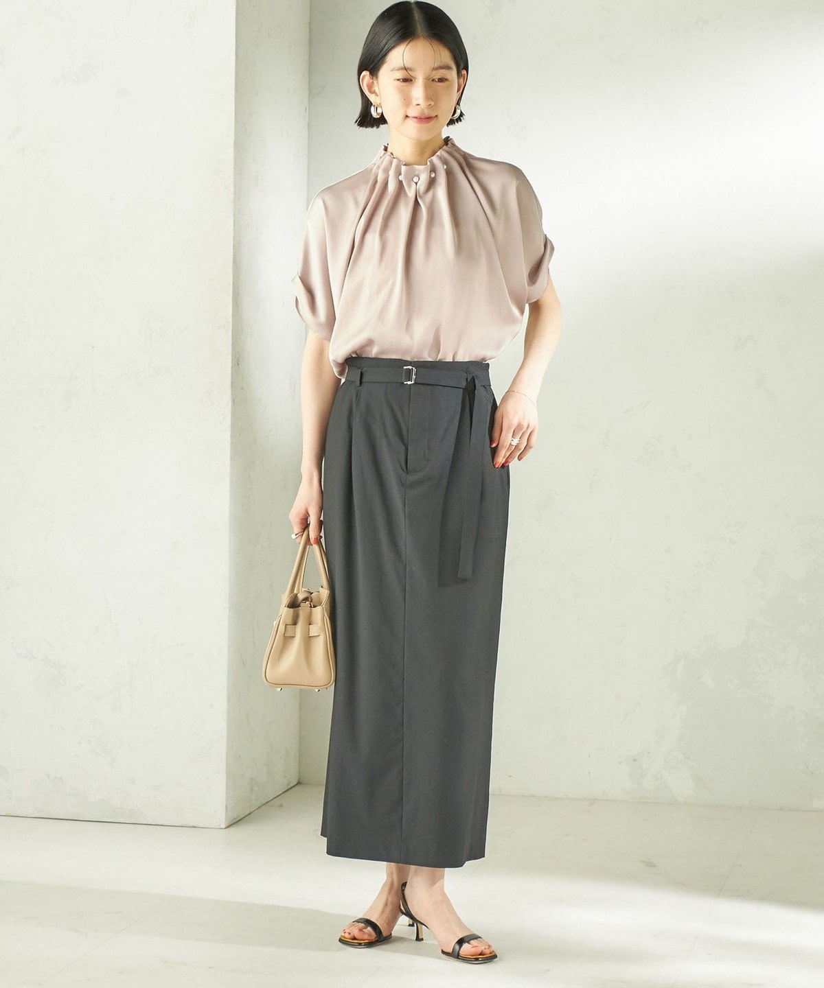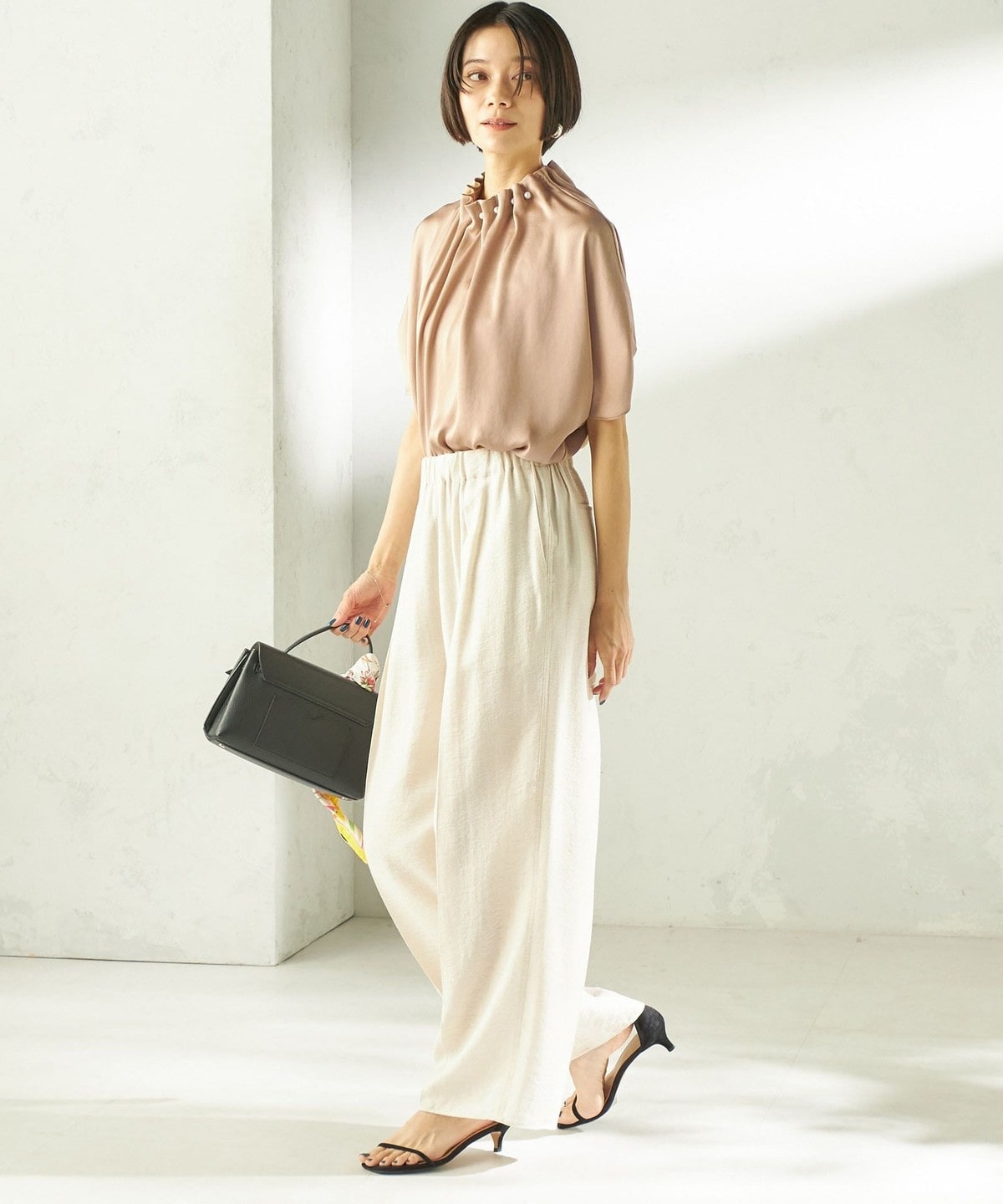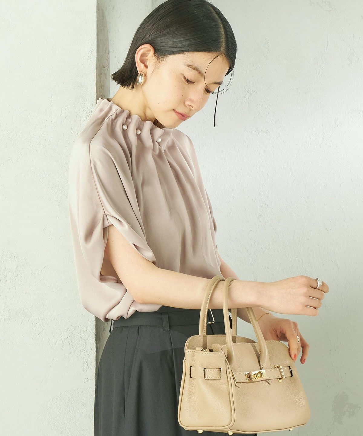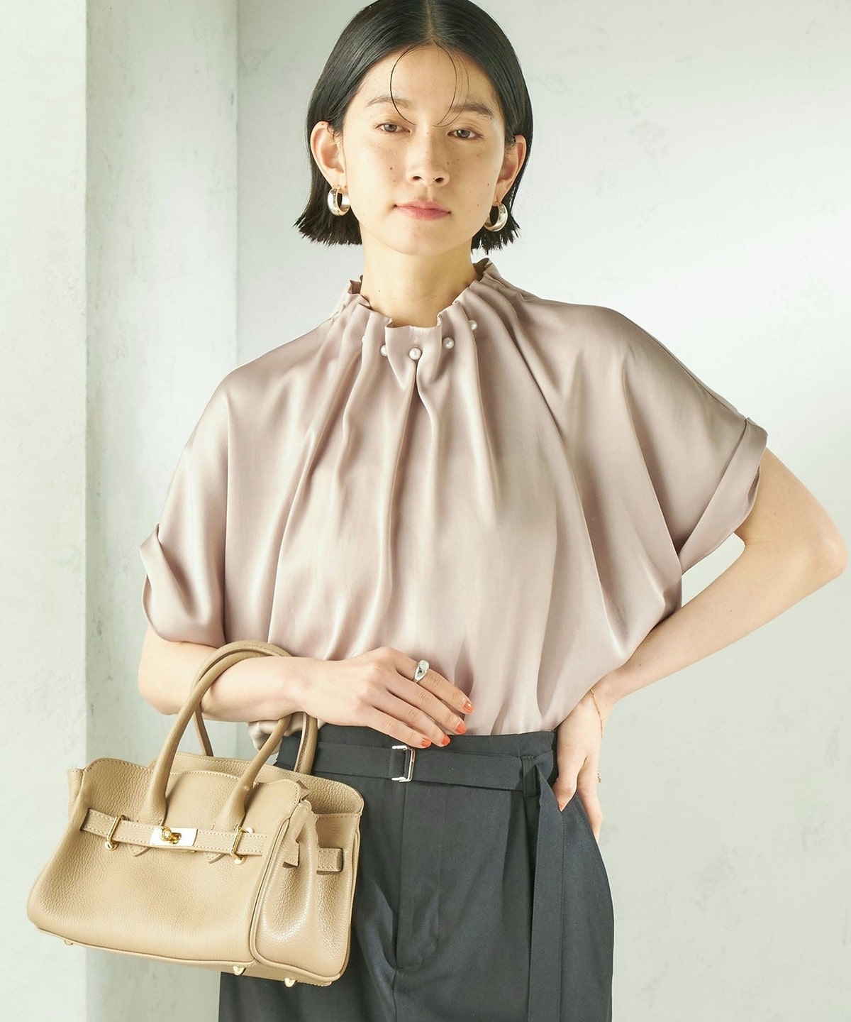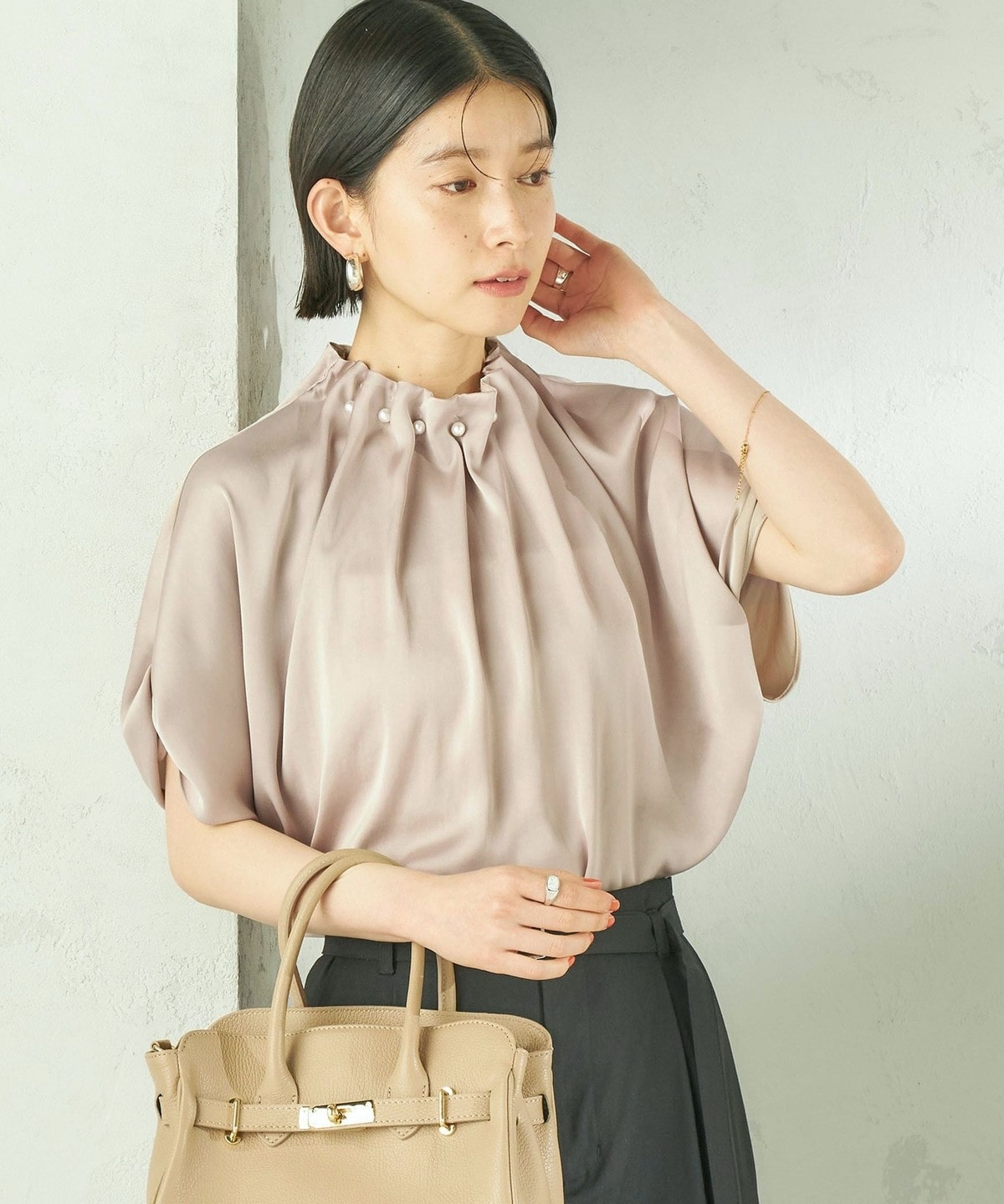 1. 《予約》【一部WEB限定】〈手洗い可能〉パール モチーフ ネック ギャザー ドルマン ブラウス ベージュ