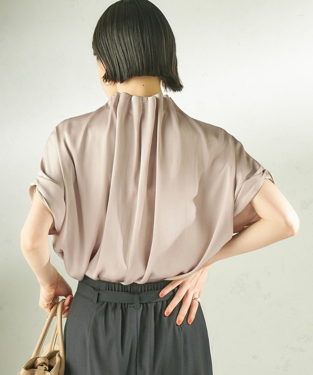 26. 《予約》【一部WEB限定】〈手洗い可能〉パール モチーフ ネック ギャザー ドルマン ブラウス