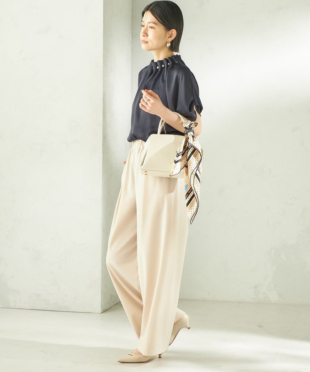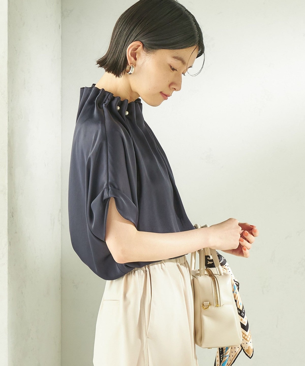 45. 《予約》【一部WEB限定】〈手洗い可能〉パール モチーフ ネック ギャザー ドルマン ブラウス