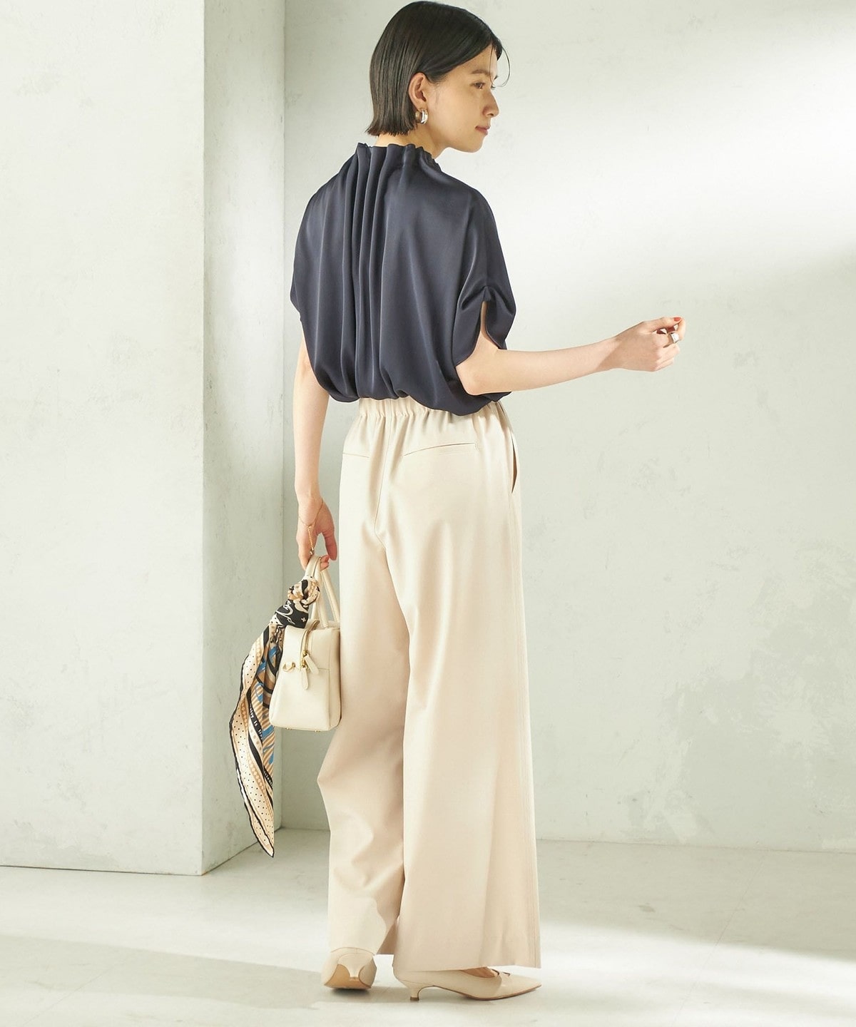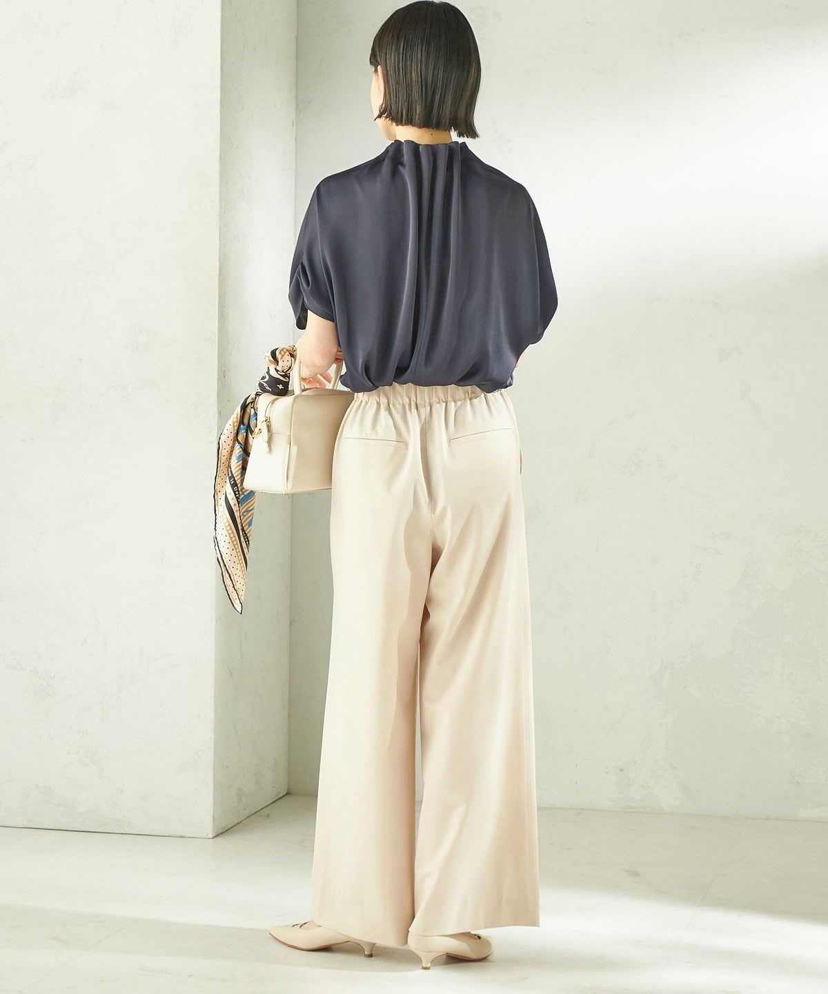 41. 《予約》【一部WEB限定】〈手洗い可能〉パール モチーフ ネック ギャザー ドルマン ブラウス