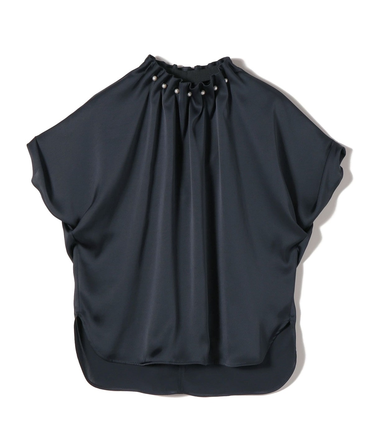 38. 《予約》【一部WEB限定】〈手洗い可能〉パール モチーフ ネック ギャザー ドルマン ブラウス