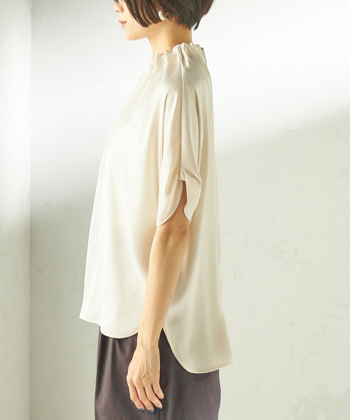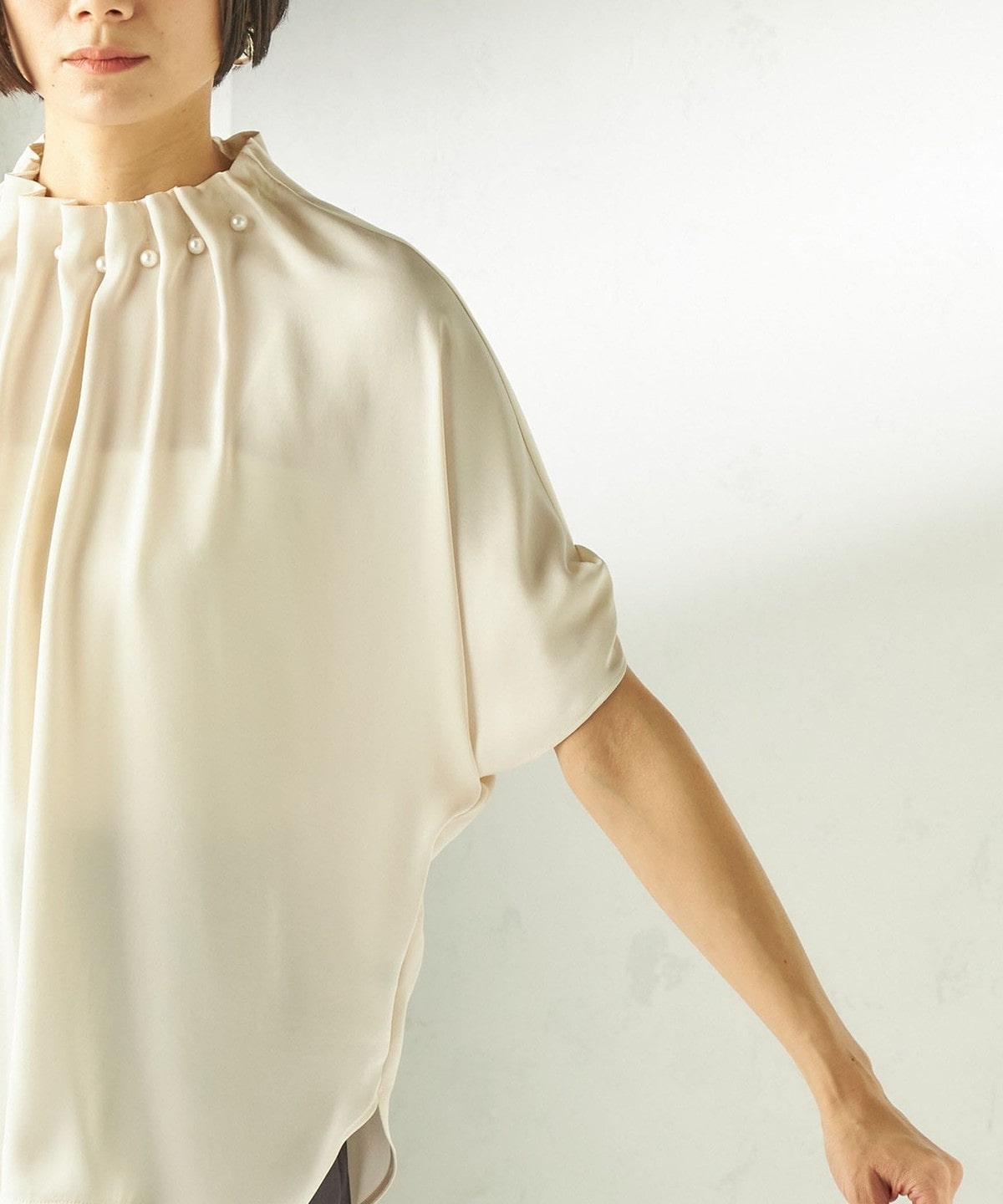 10. 《予約》【一部WEB限定】〈手洗い可能〉パール モチーフ ネック ギャザー ドルマン ブラウス