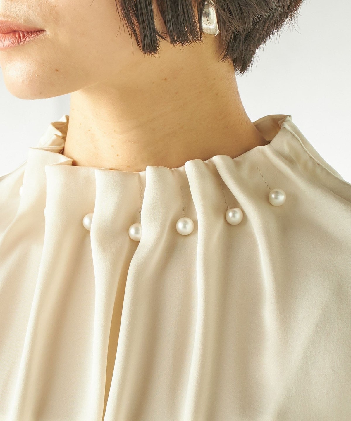 40. 《予約》【一部WEB限定】〈手洗い可能〉パール モチーフ ネック ギャザー ドルマン ブラウス