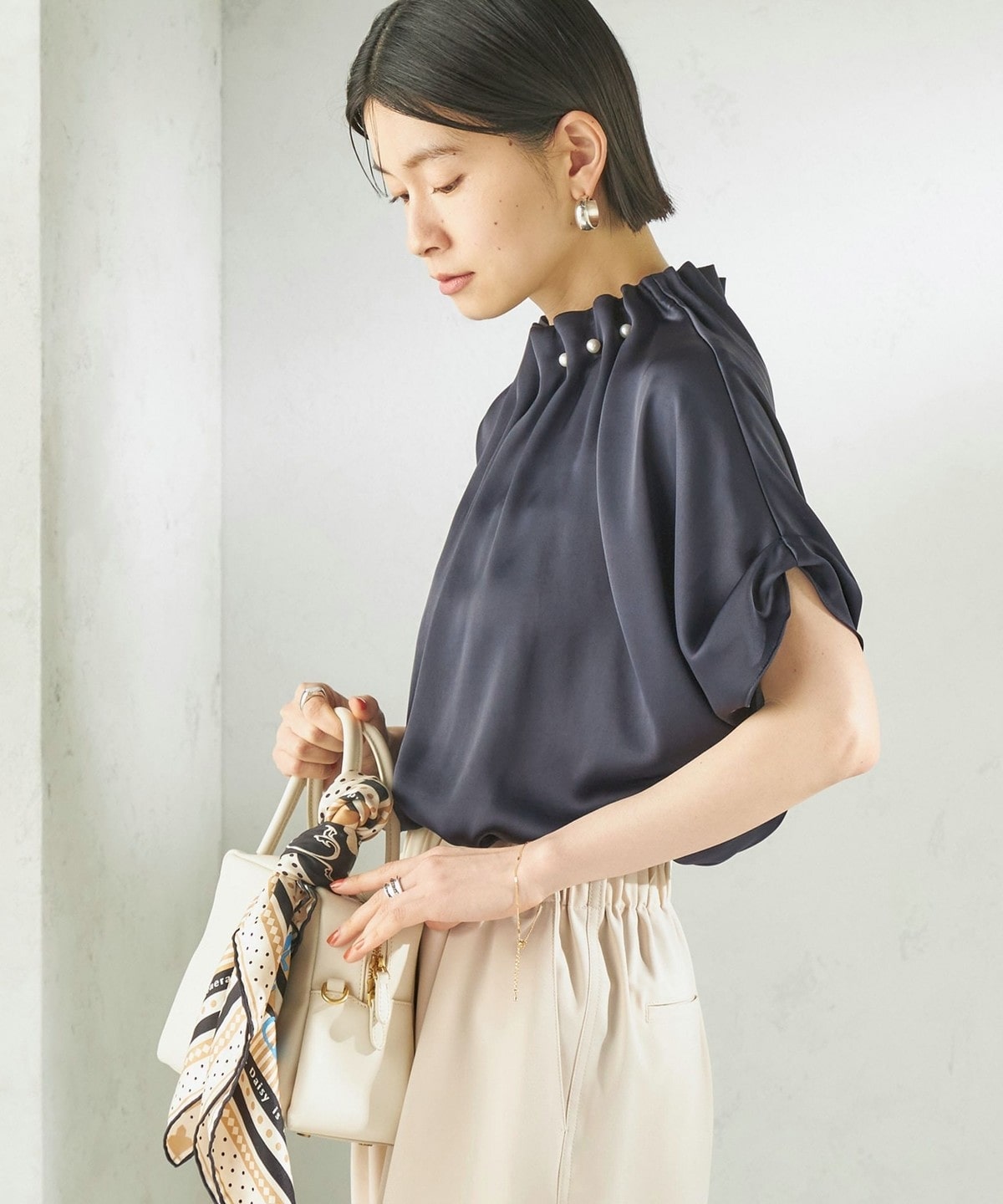 5. 《予約》【一部WEB限定】〈手洗い可能〉パール モチーフ ネック ギャザー ドルマン ブラウス