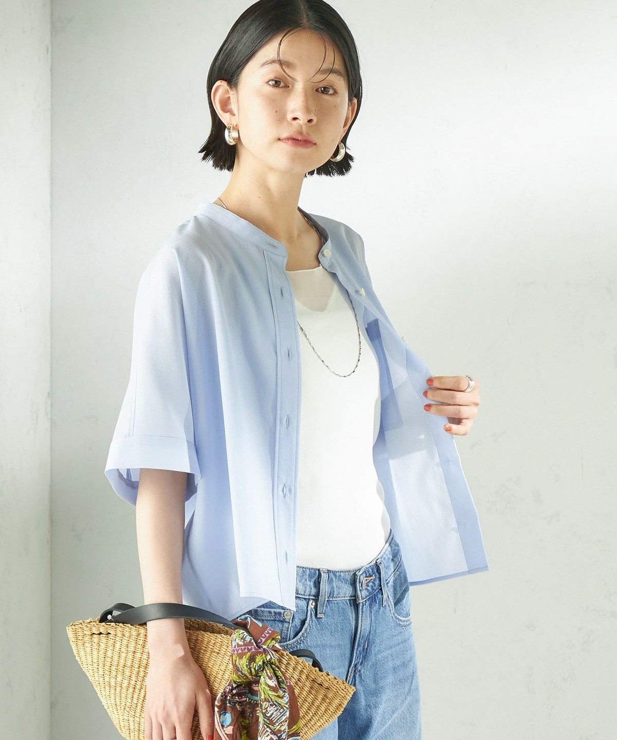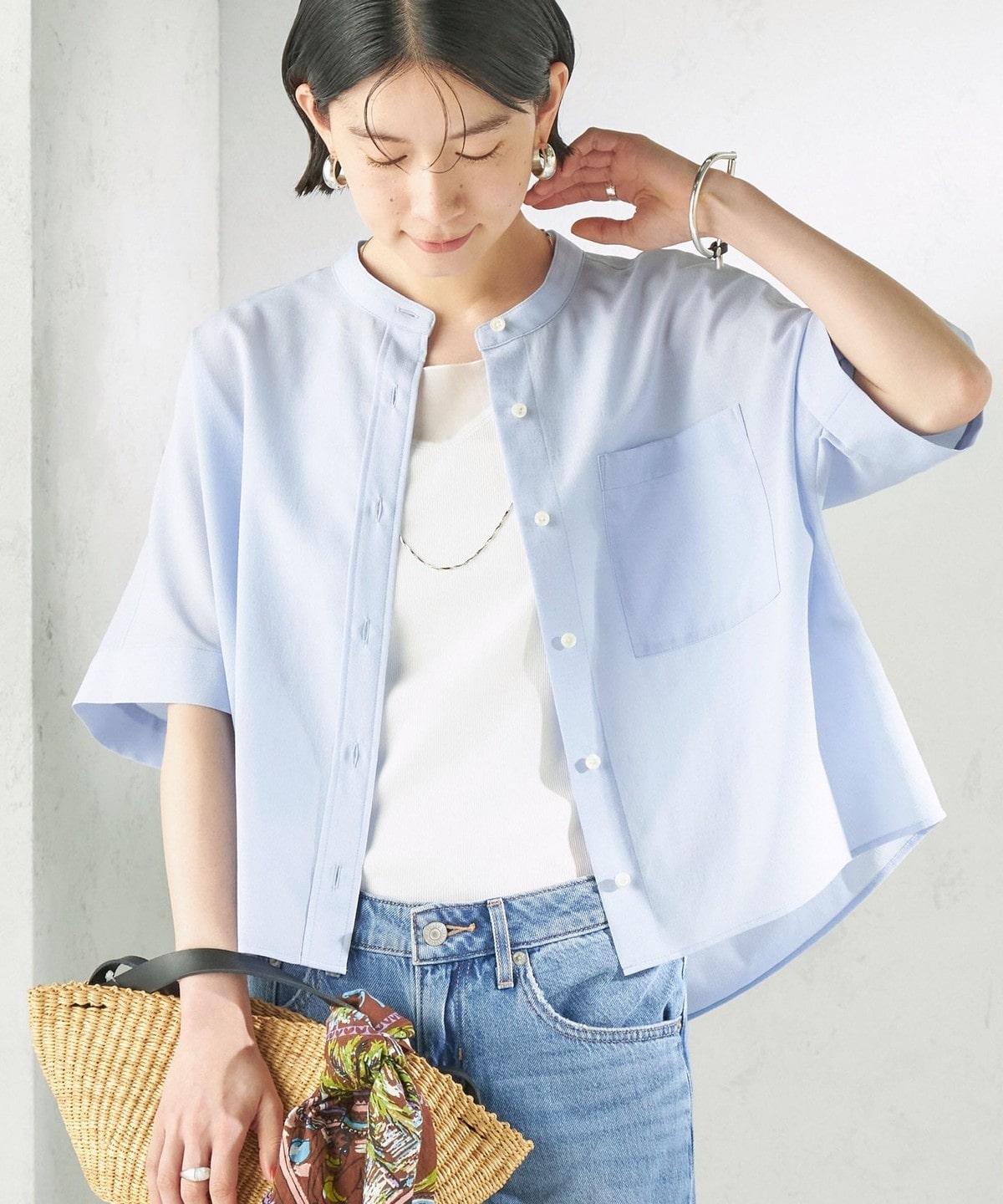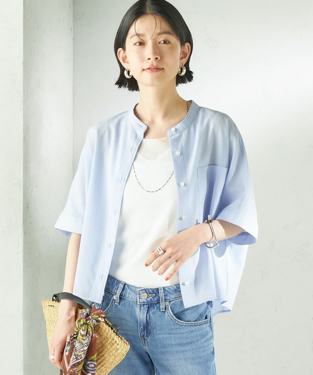 夏に嬉しい、涼しく快適な着心地のバンドカラーシャツ。
