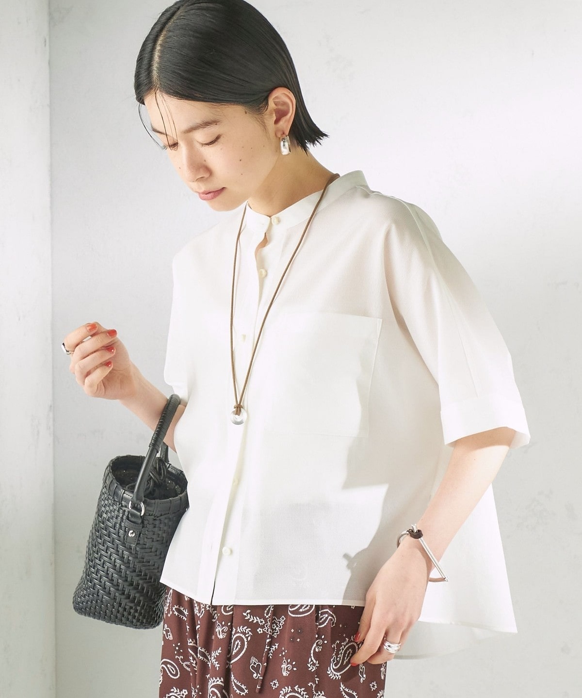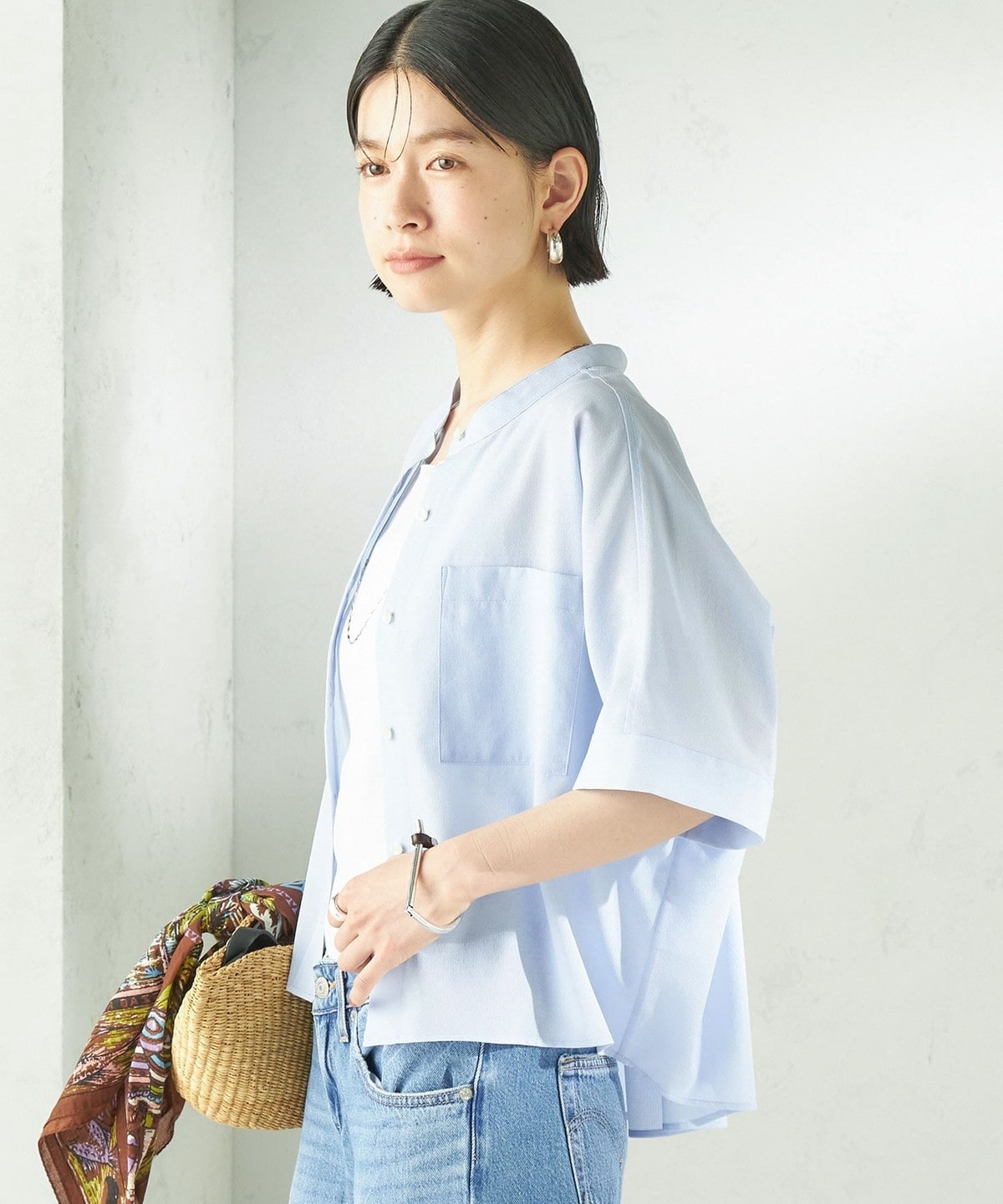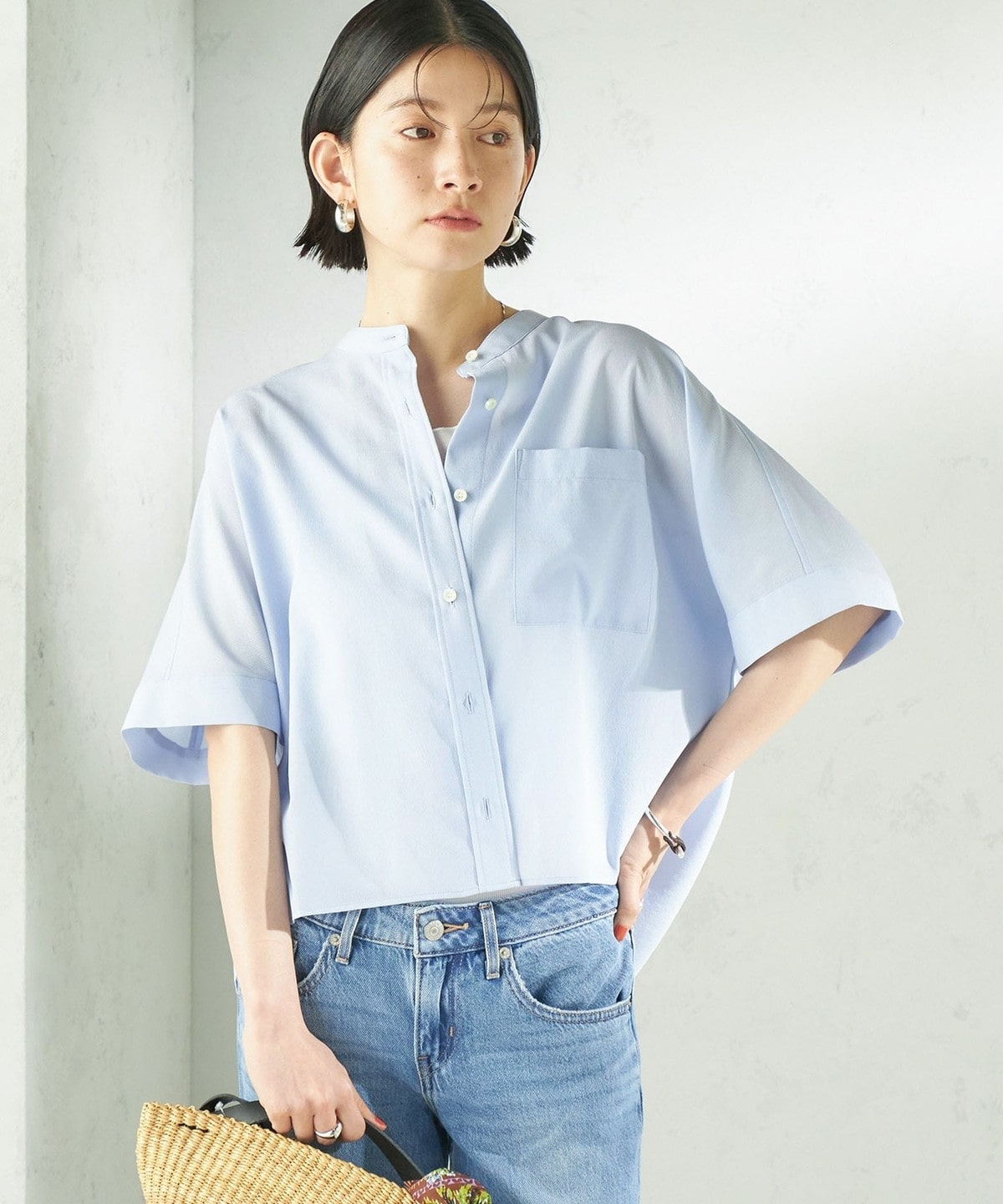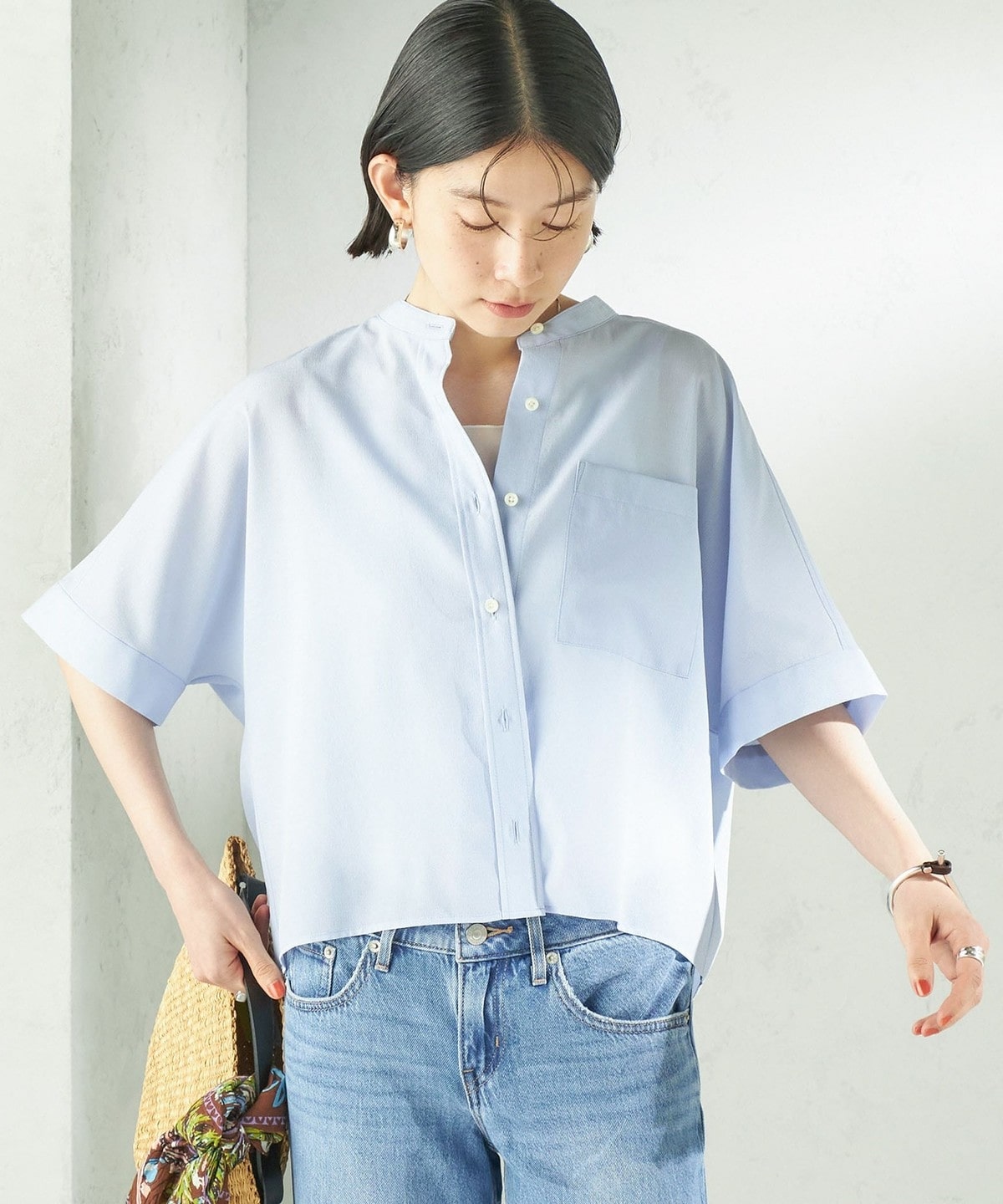 夏に嬉しい、涼しく快適な着心地のバンドカラーシャツ。