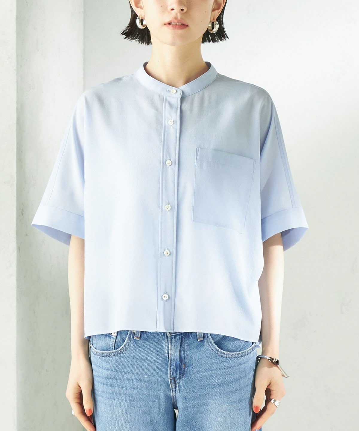 1. 《予約》〈接触冷感/洗濯機可能〉SUUSUU バンドカラー 半袖 シャツ ライトブルー