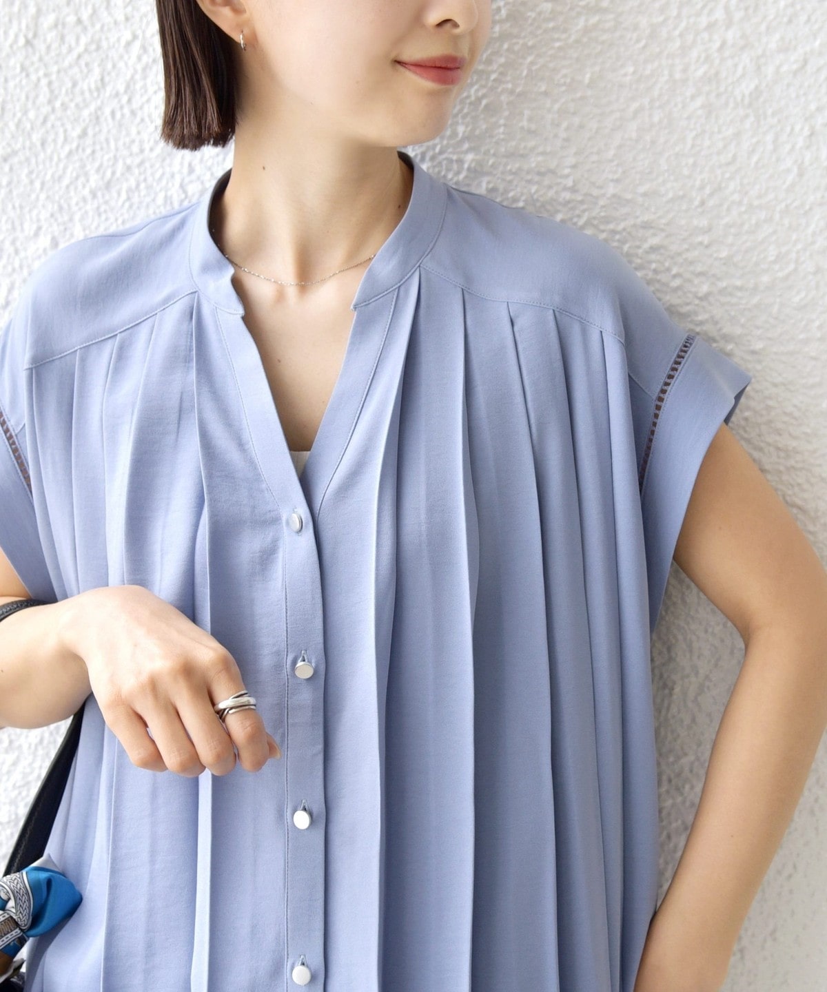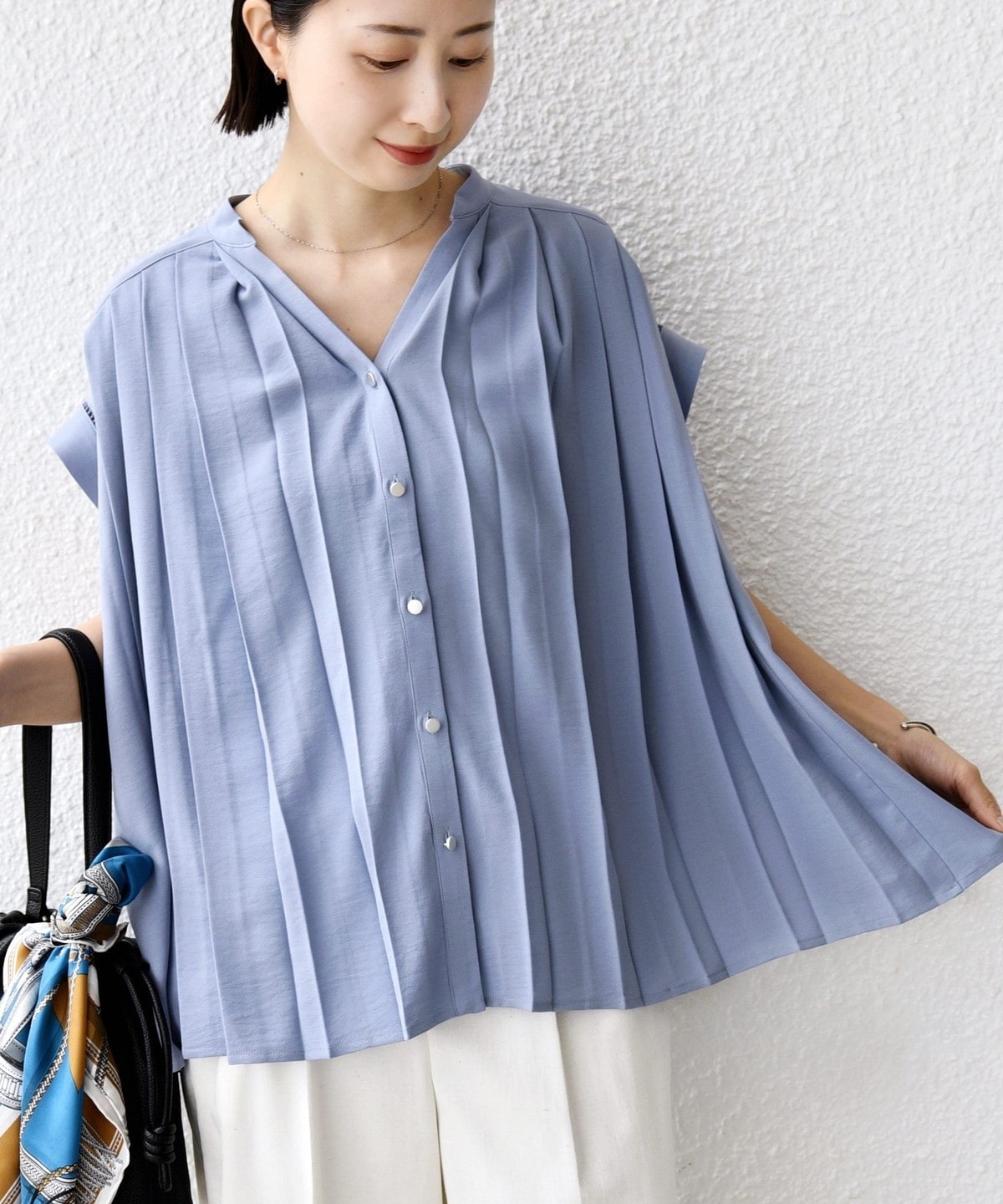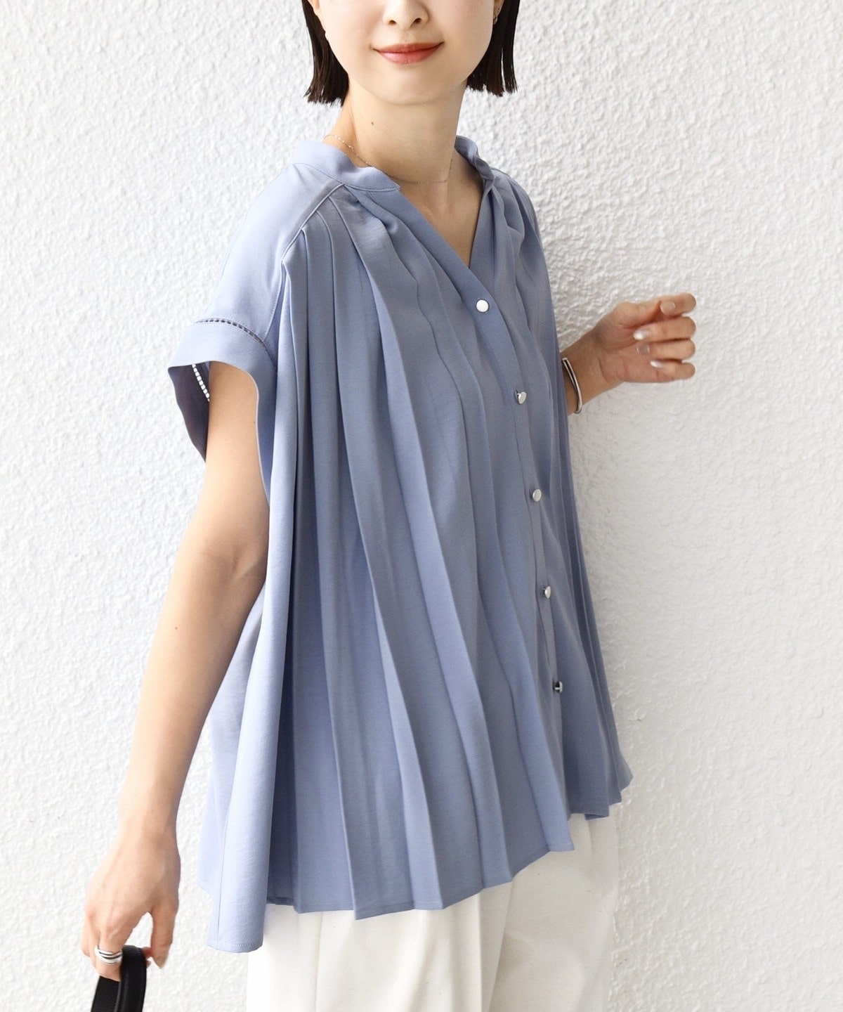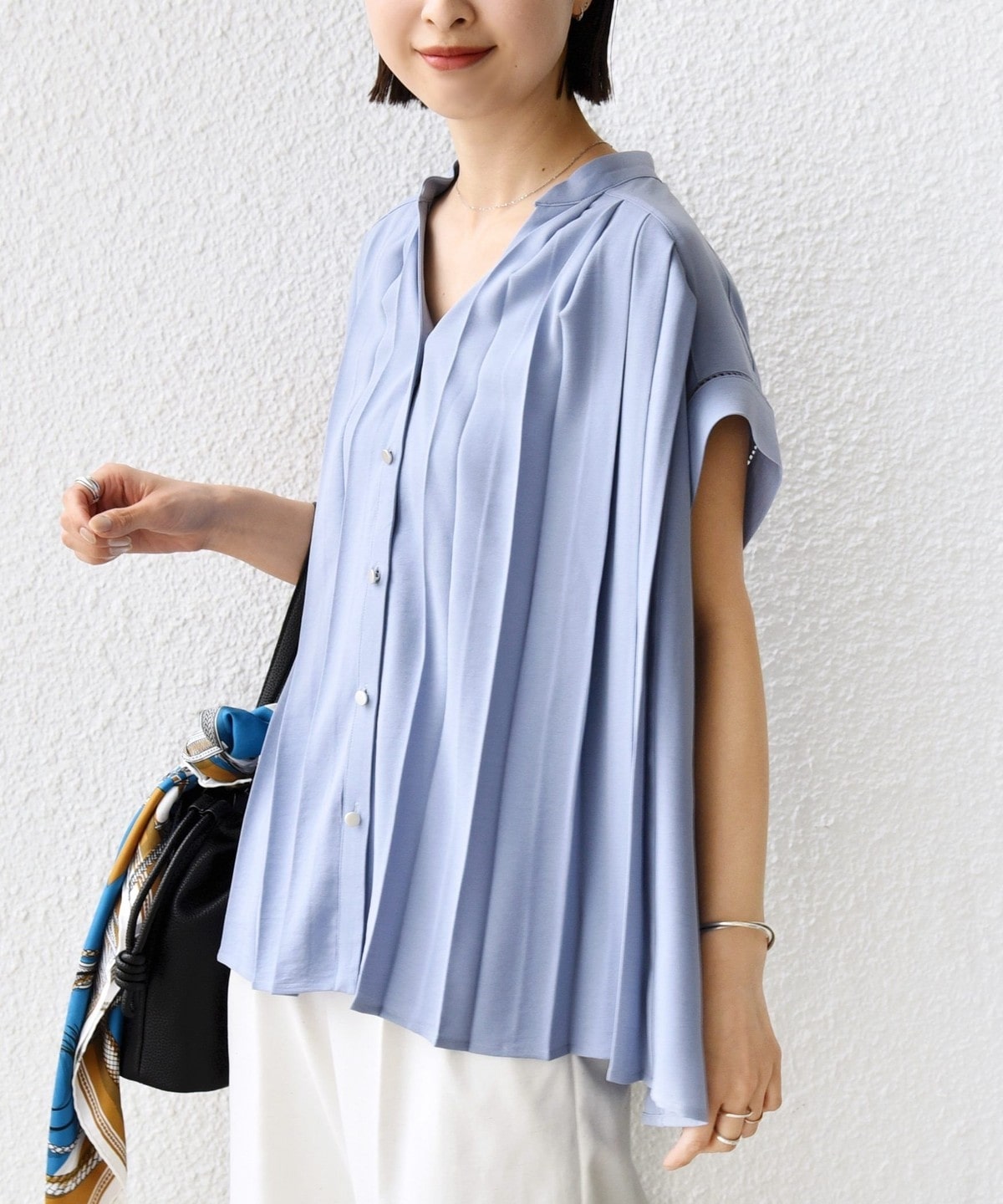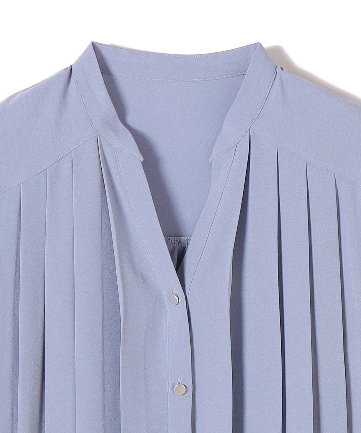 2. 《予約》【WEB限定】〈手洗い可能〉ストレッチ ジョーゼット プリーツ スキッパー ブラウス スカイブルー