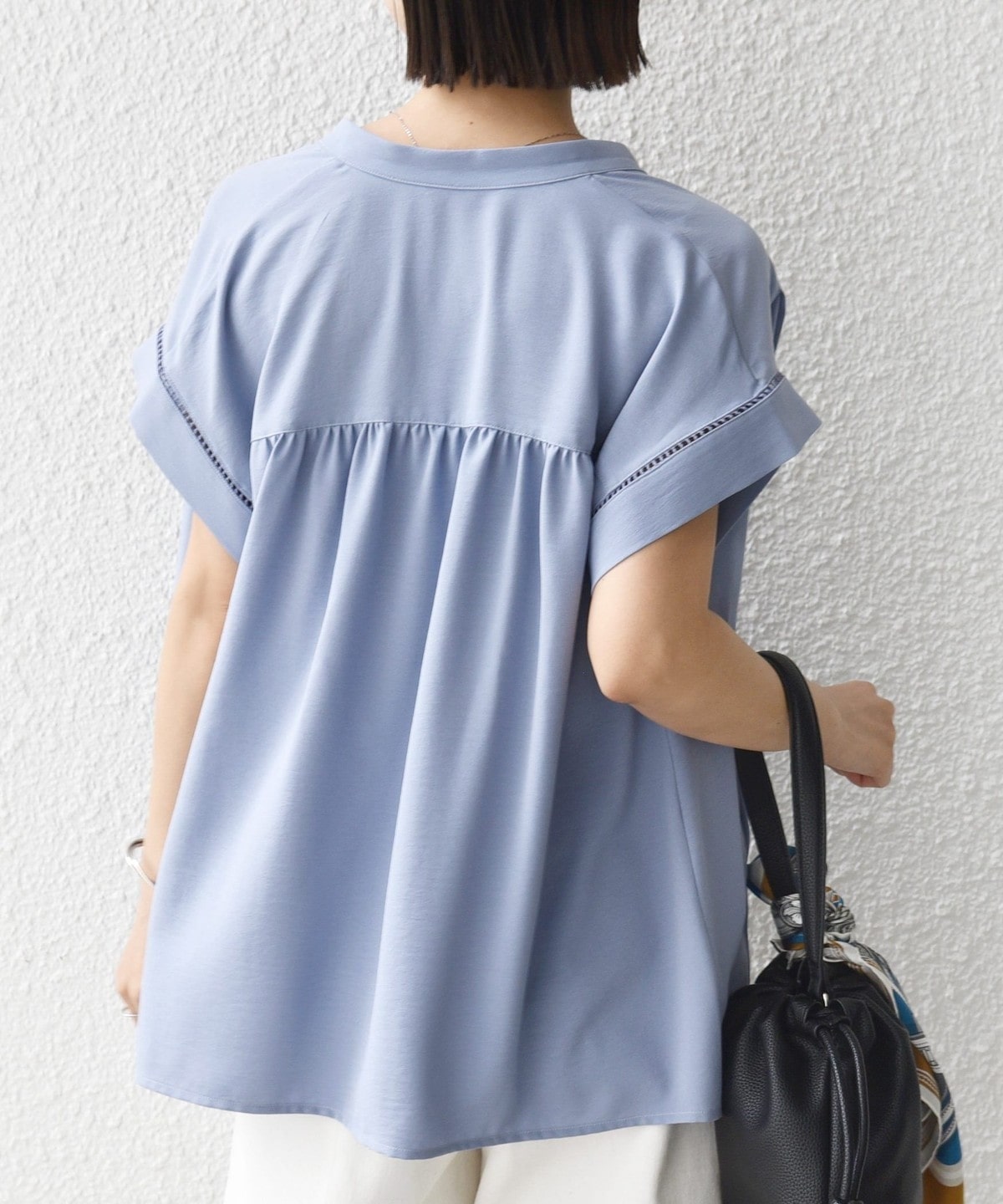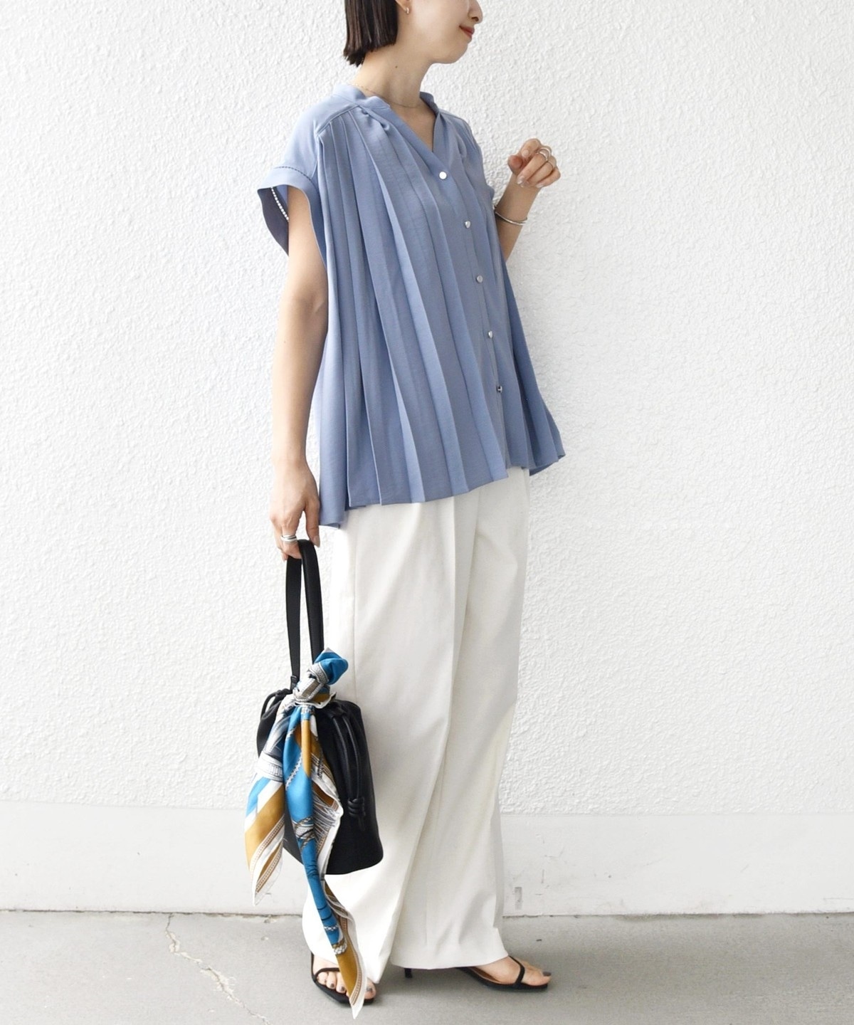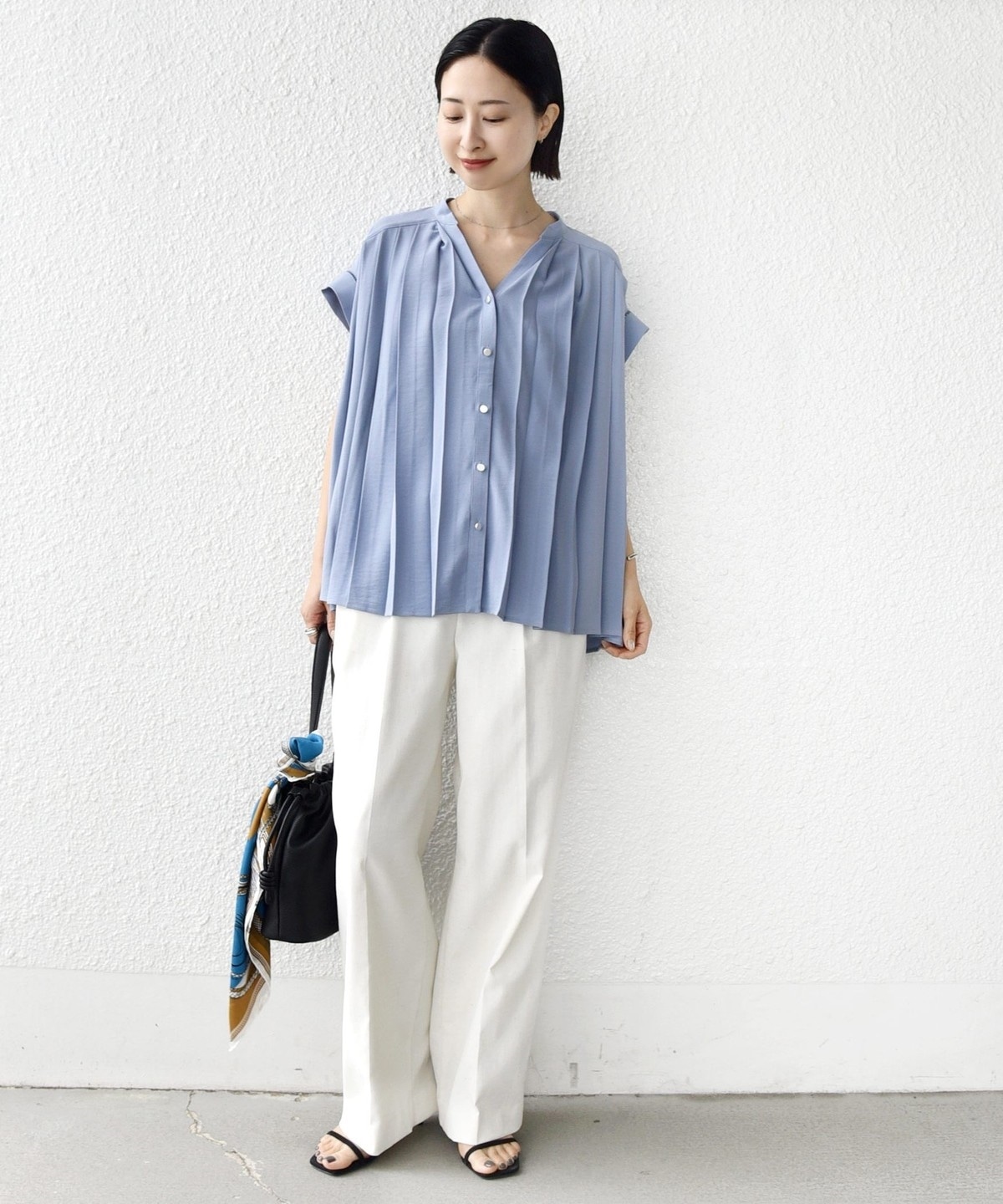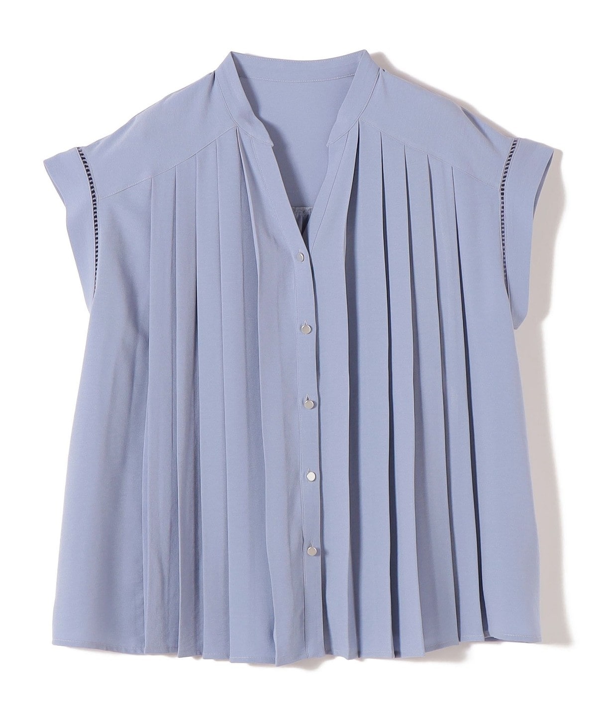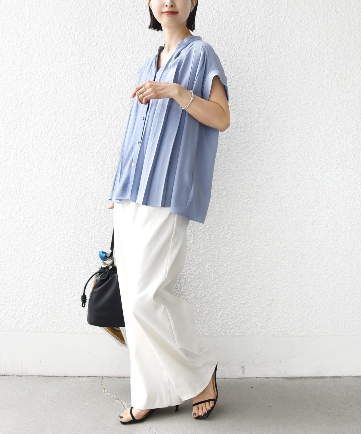 2. 《予約》【WEB限定】〈手洗い可能〉ストレッチ ジョーゼット プリーツ スキッパー ブラウス スカイブルー