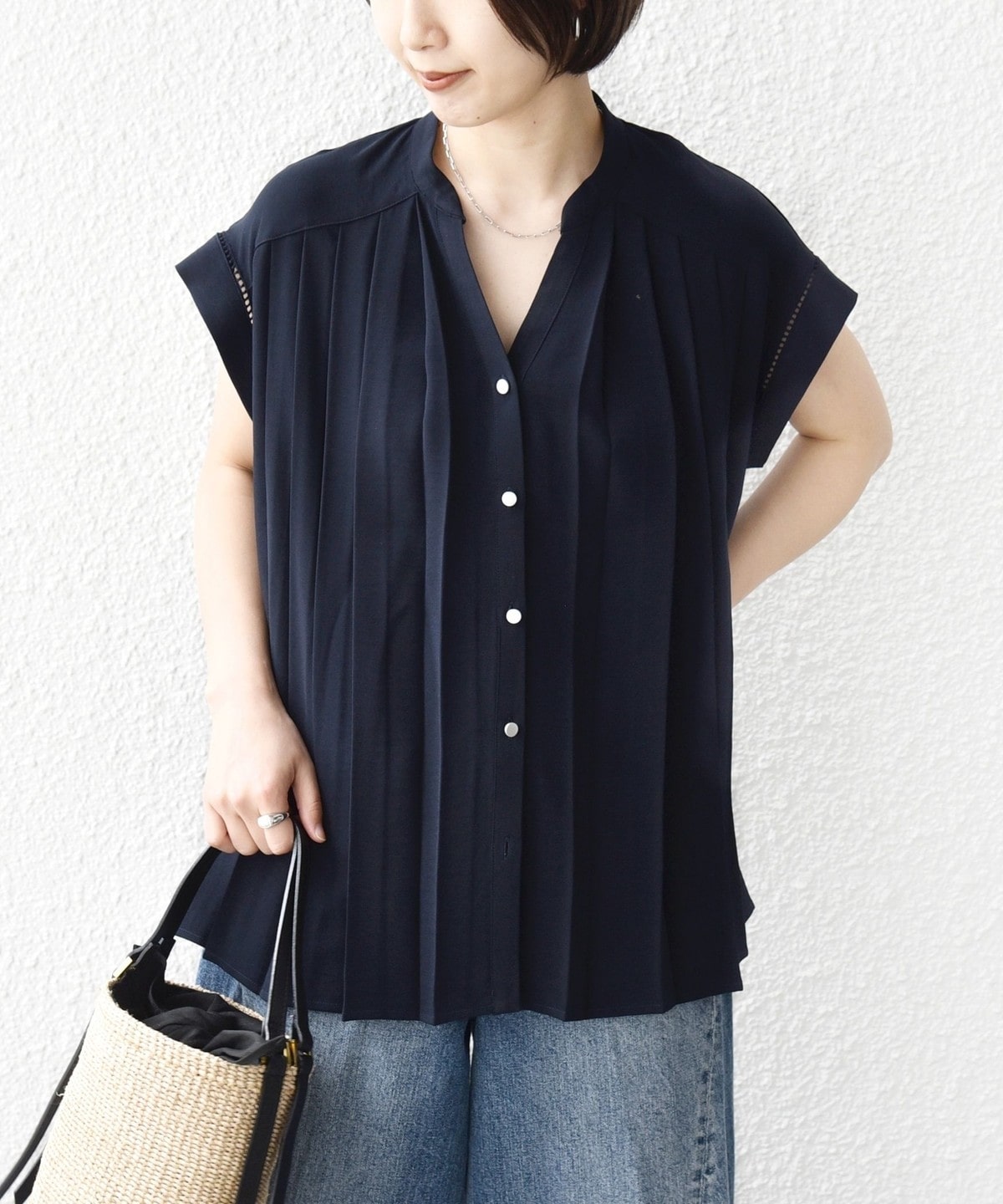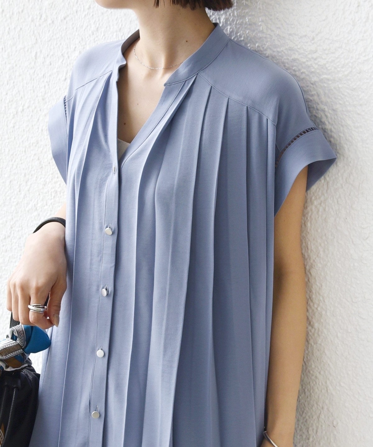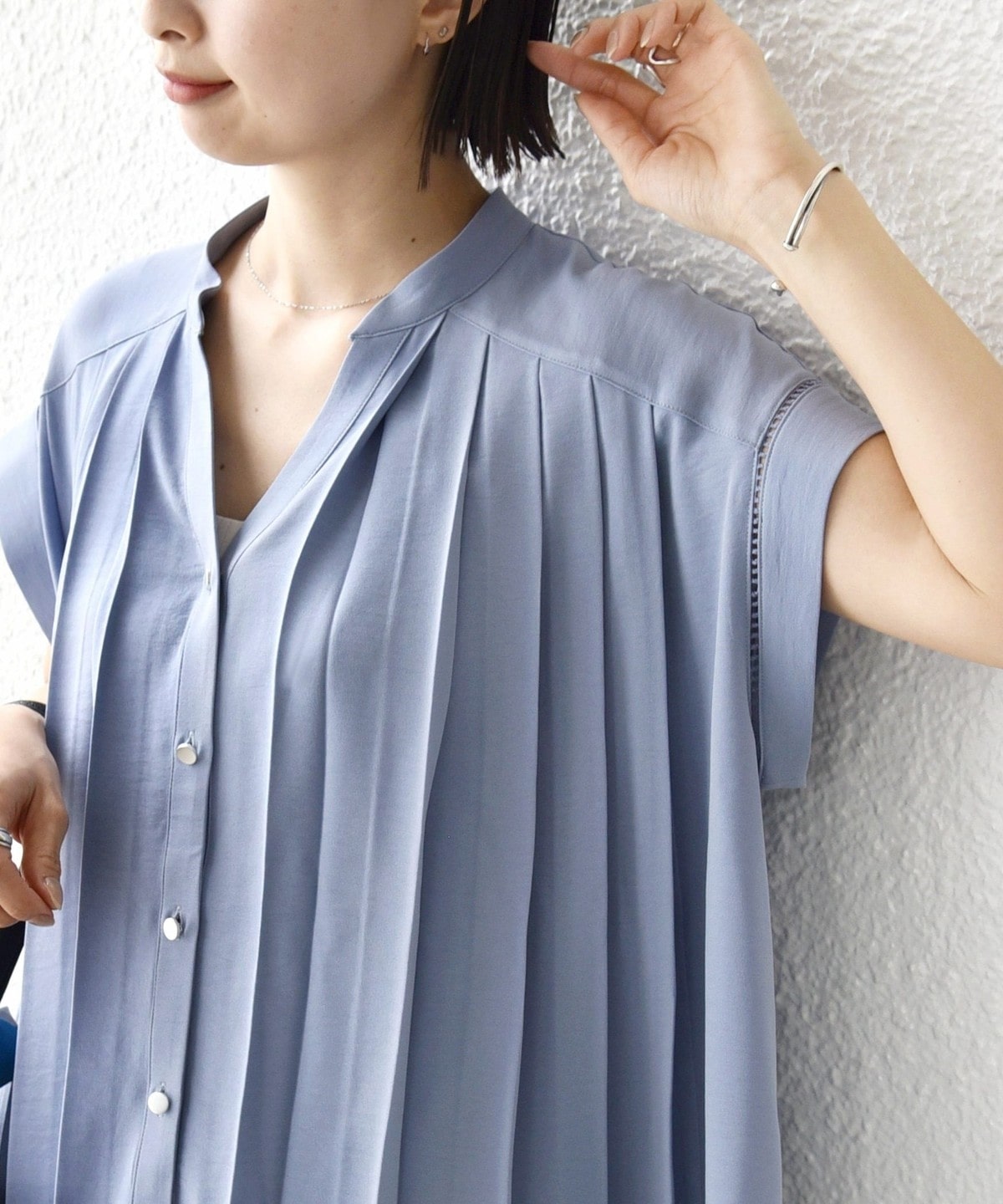 フロントにプリーツ加工を施しスキッパー襟のさわやかなデザインに仕上げました。