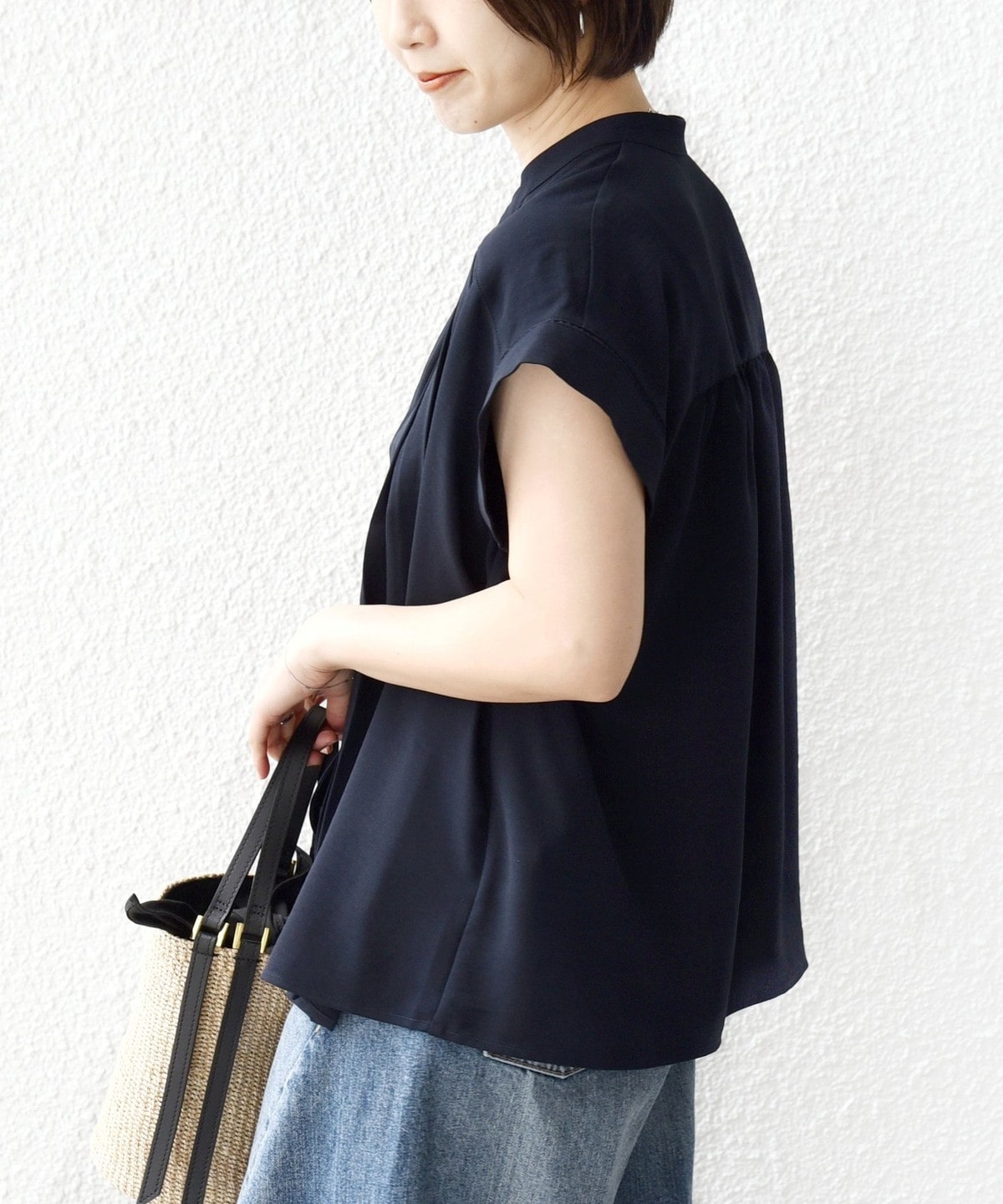 3. 《予約》【WEB限定】〈手洗い可能〉ストレッチ ジョーゼット プリーツ スキッパー ブラウス ダークブルー