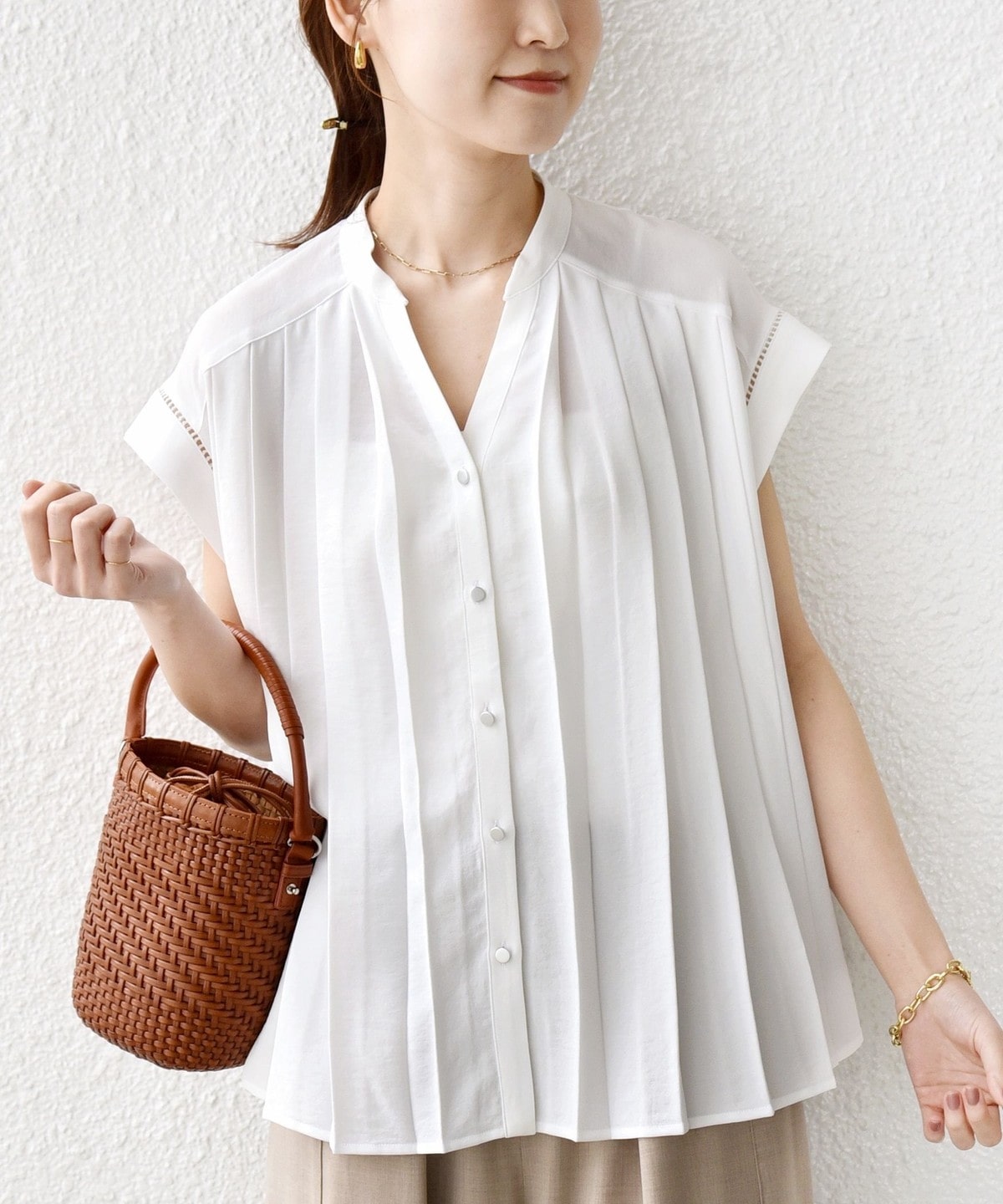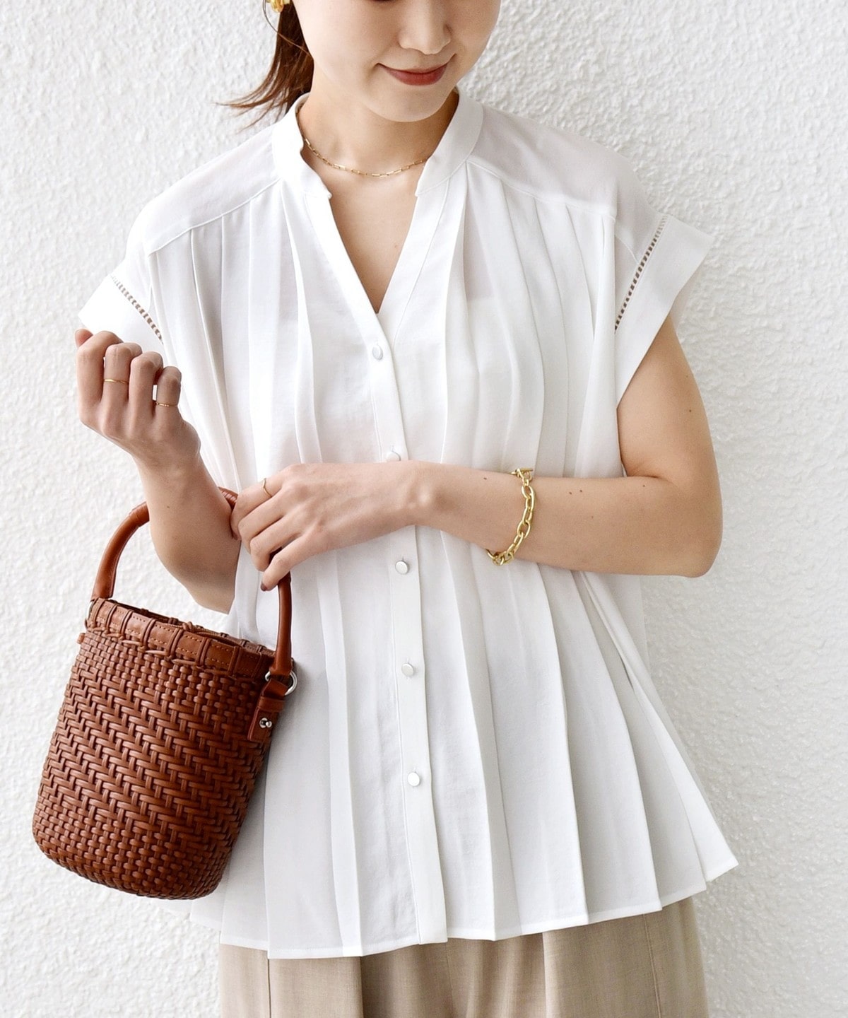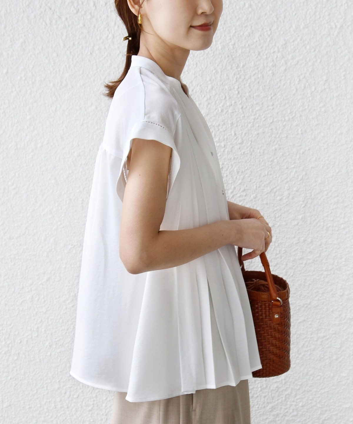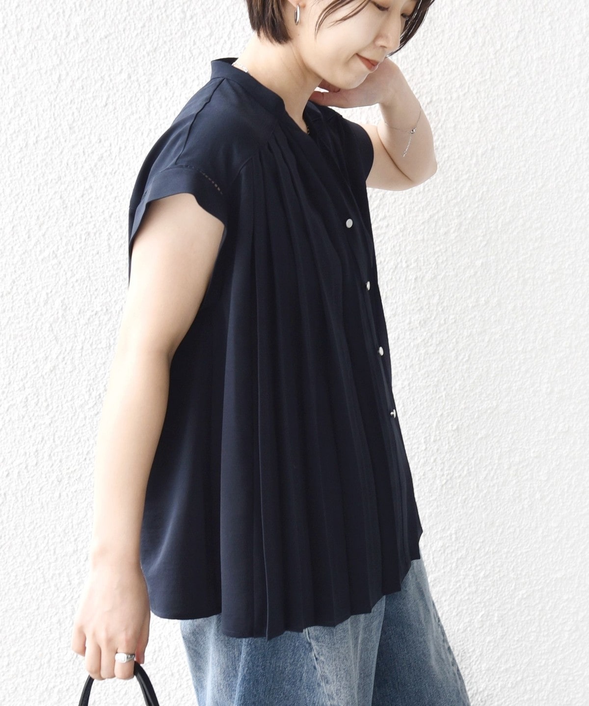 38. 《予約》【WEB限定】〈手洗い可能〉ストレッチ ジョーゼット プリーツ スキッパー ブラウス