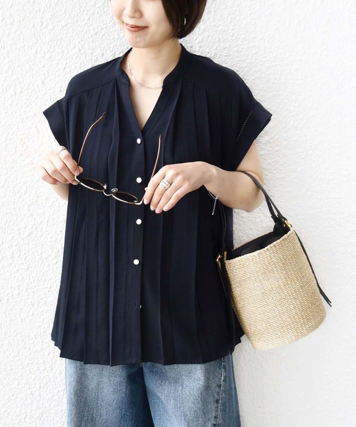 26. 《予約》【WEB限定】〈手洗い可能〉ストレッチ ジョーゼット プリーツ スキッパー ブラウス