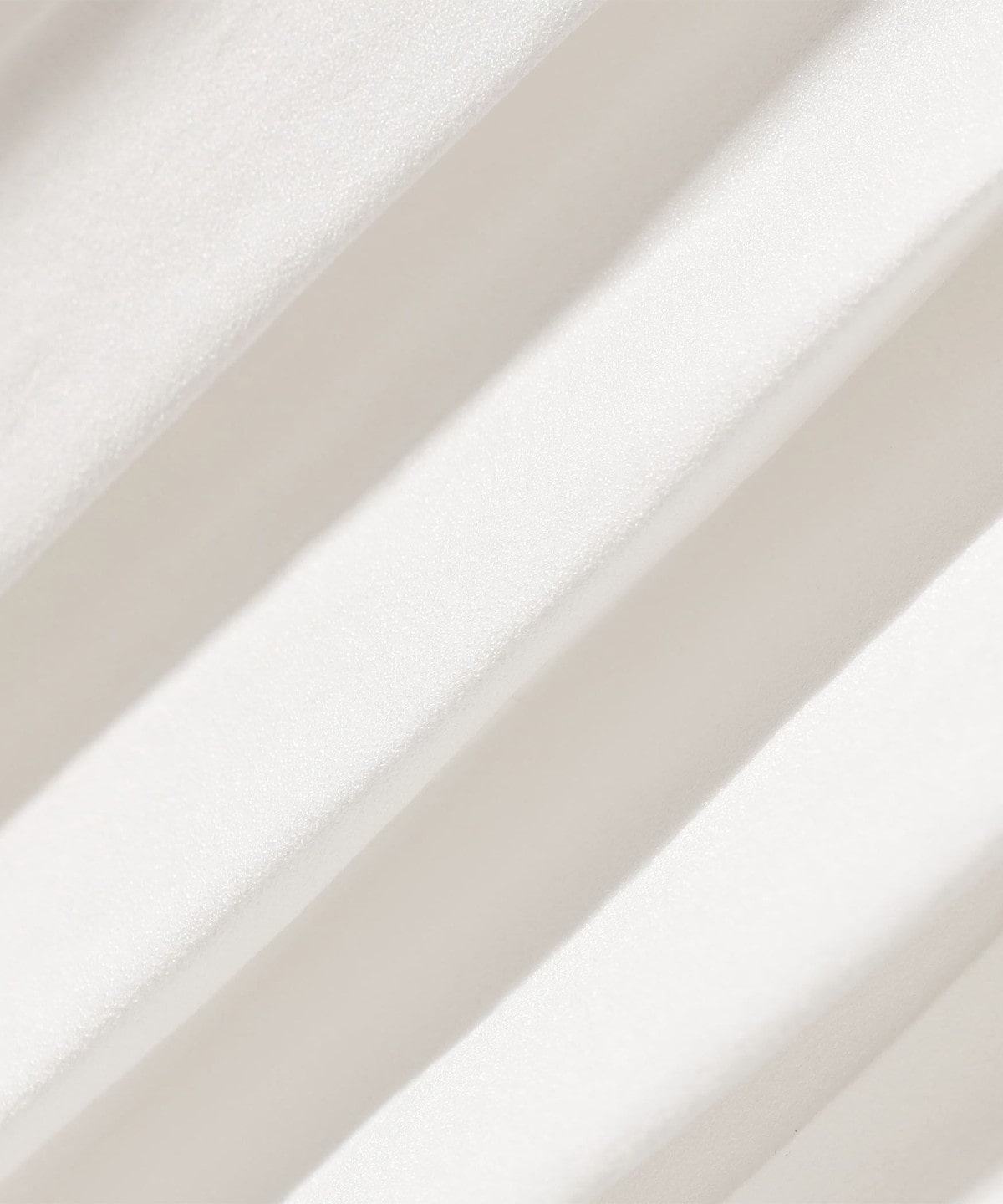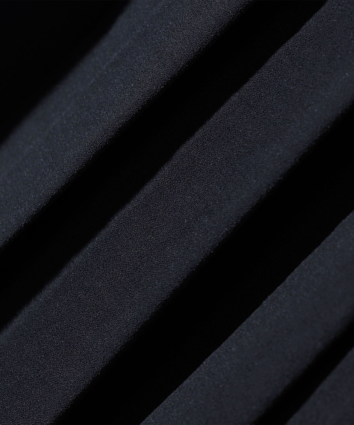 歩くたびにゆれるプリーツが軽やかで華やかな印象に。