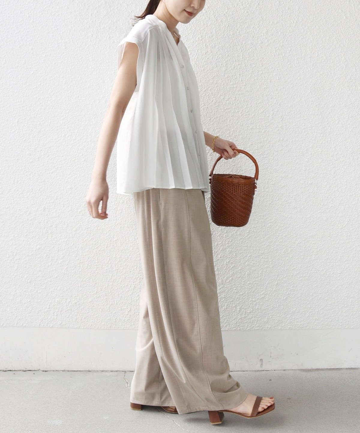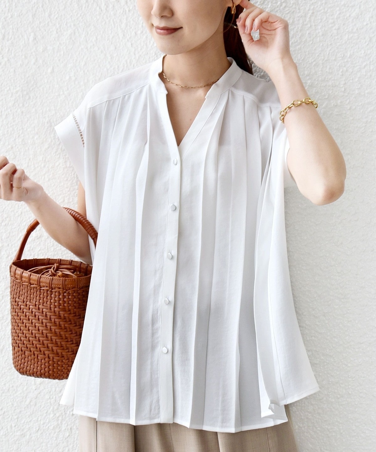 23. 《予約》【WEB限定】〈手洗い可能〉ストレッチ ジョーゼット プリーツ スキッパー ブラウス