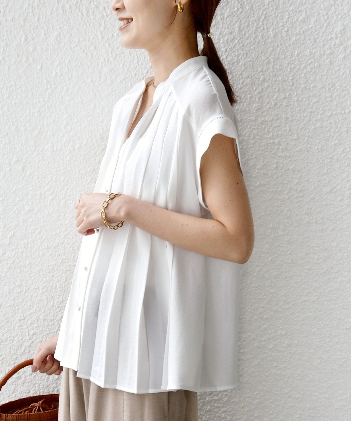 10. 《予約》【WEB限定】〈手洗い可能〉ストレッチ ジョーゼット プリーツ スキッパー ブラウス