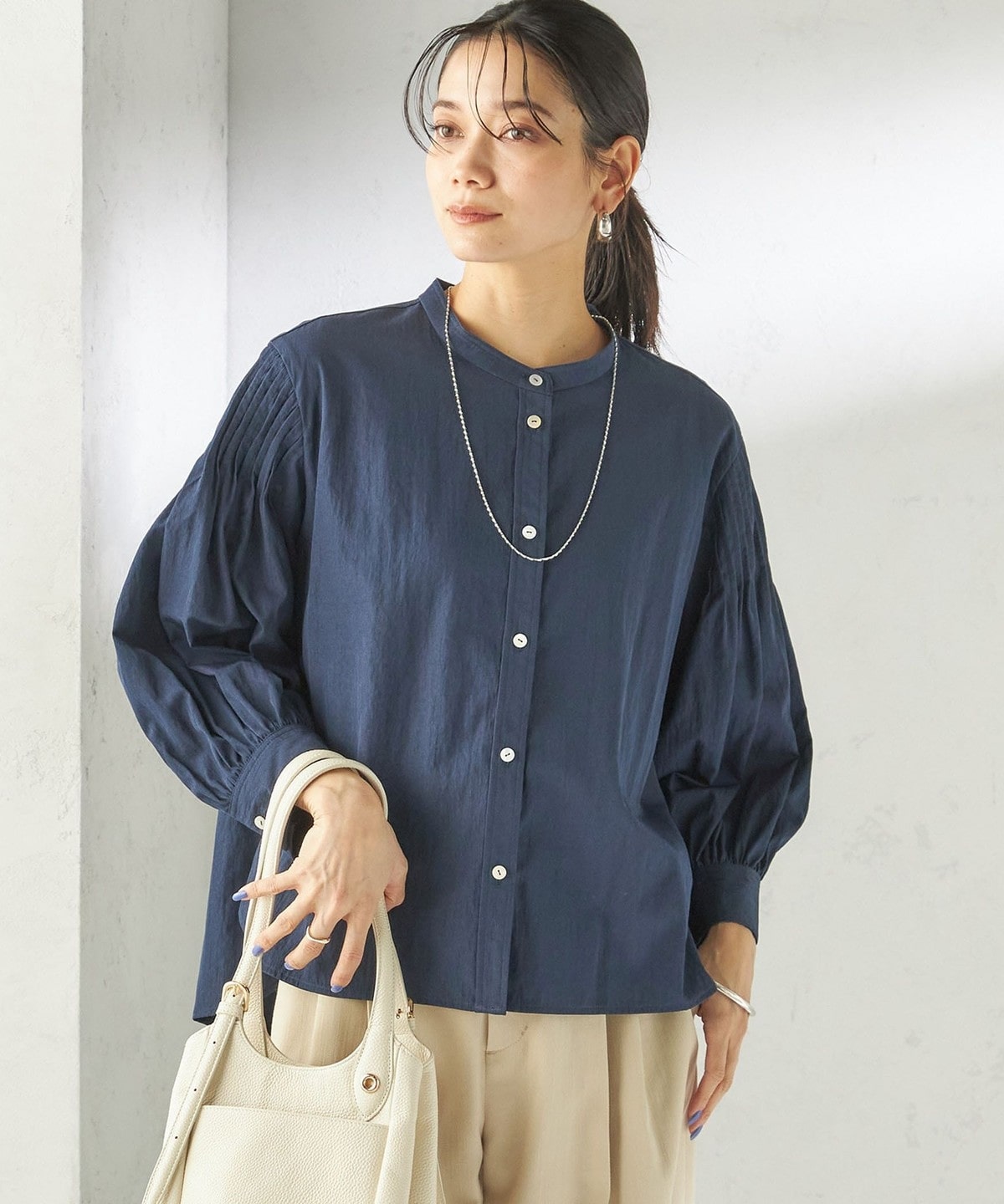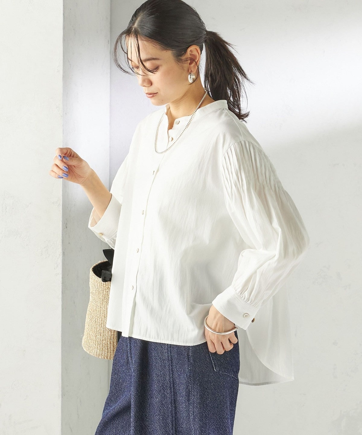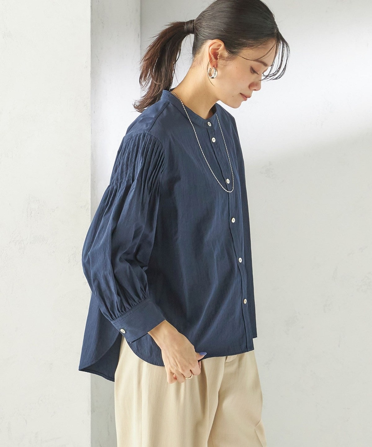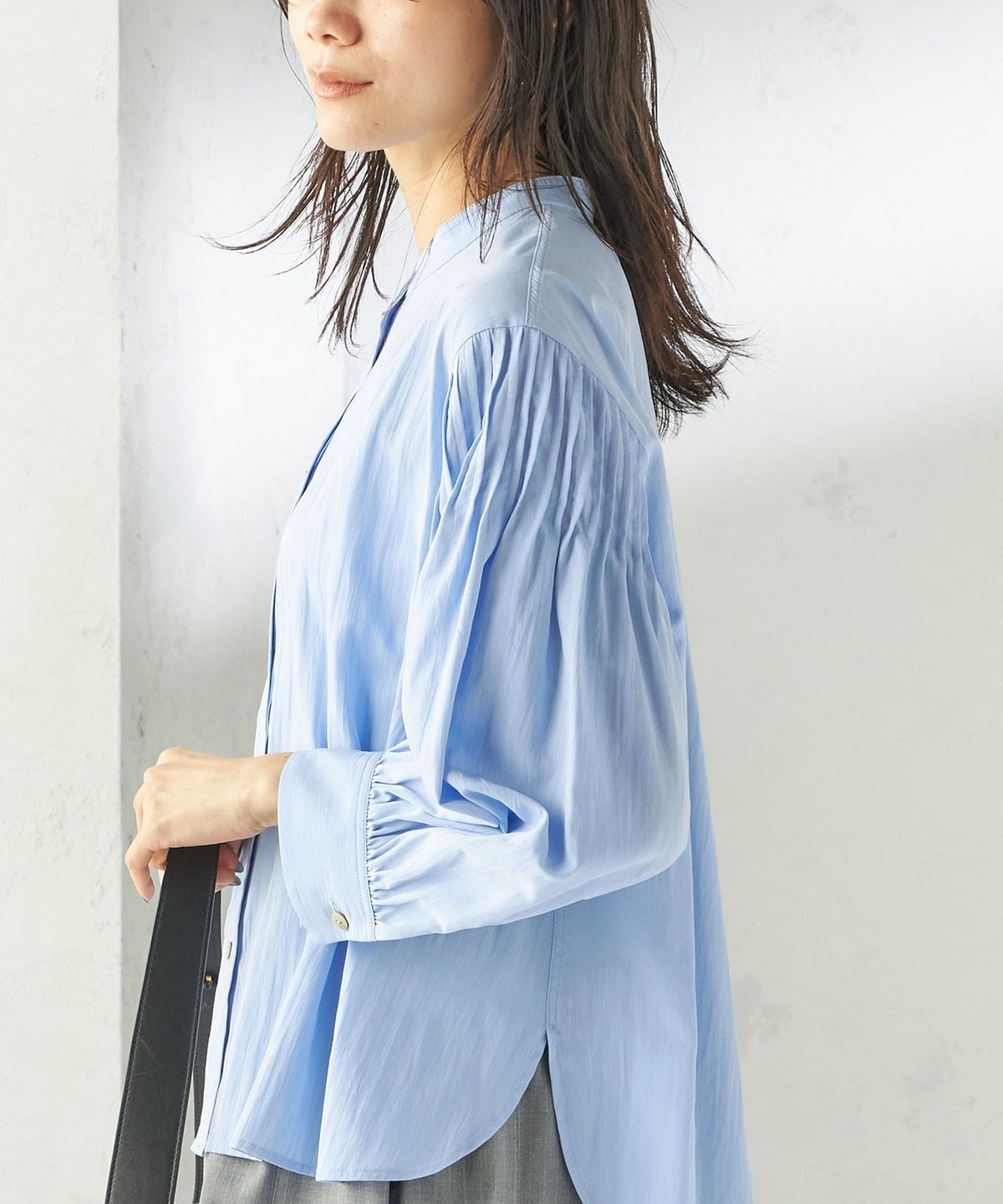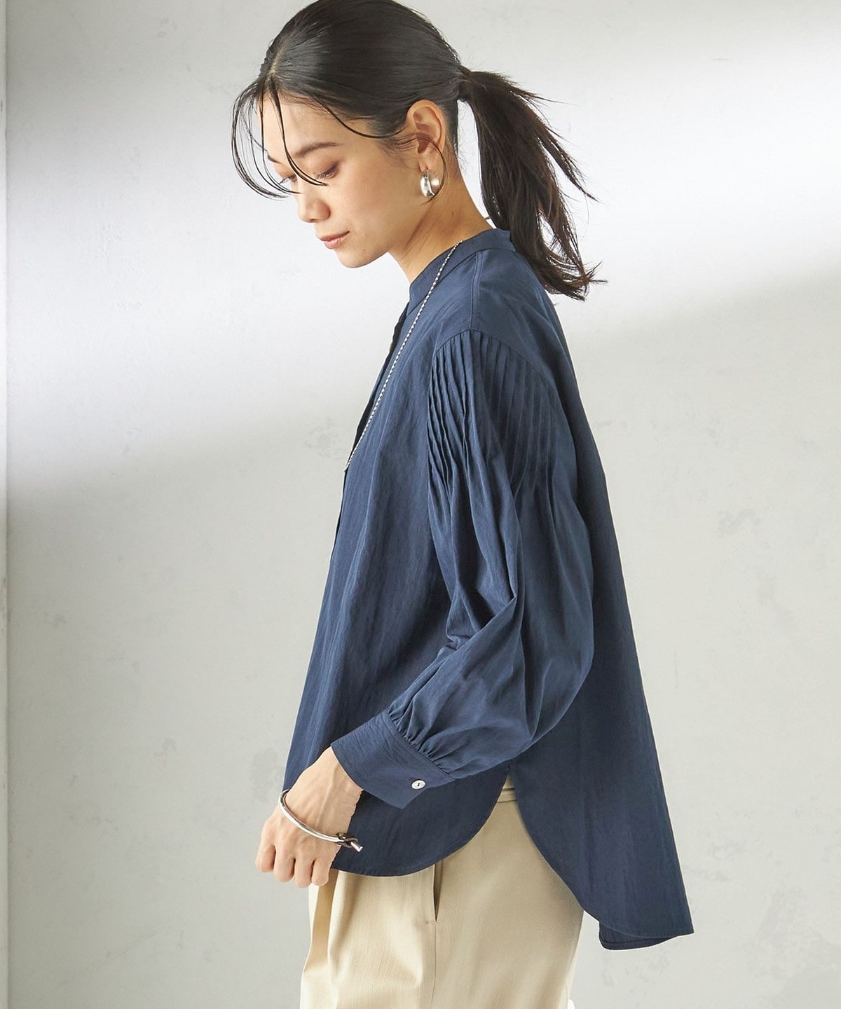 さりげない抜け感と上品さのバランスが絶妙なピンタックブラウス