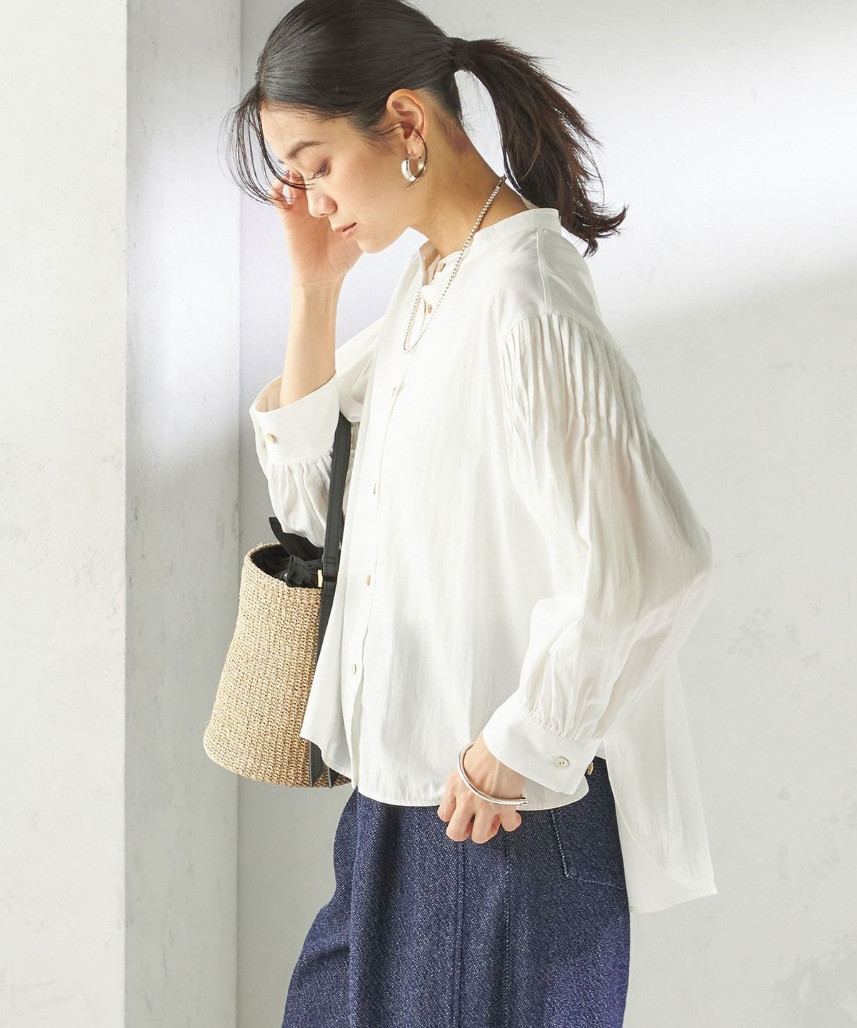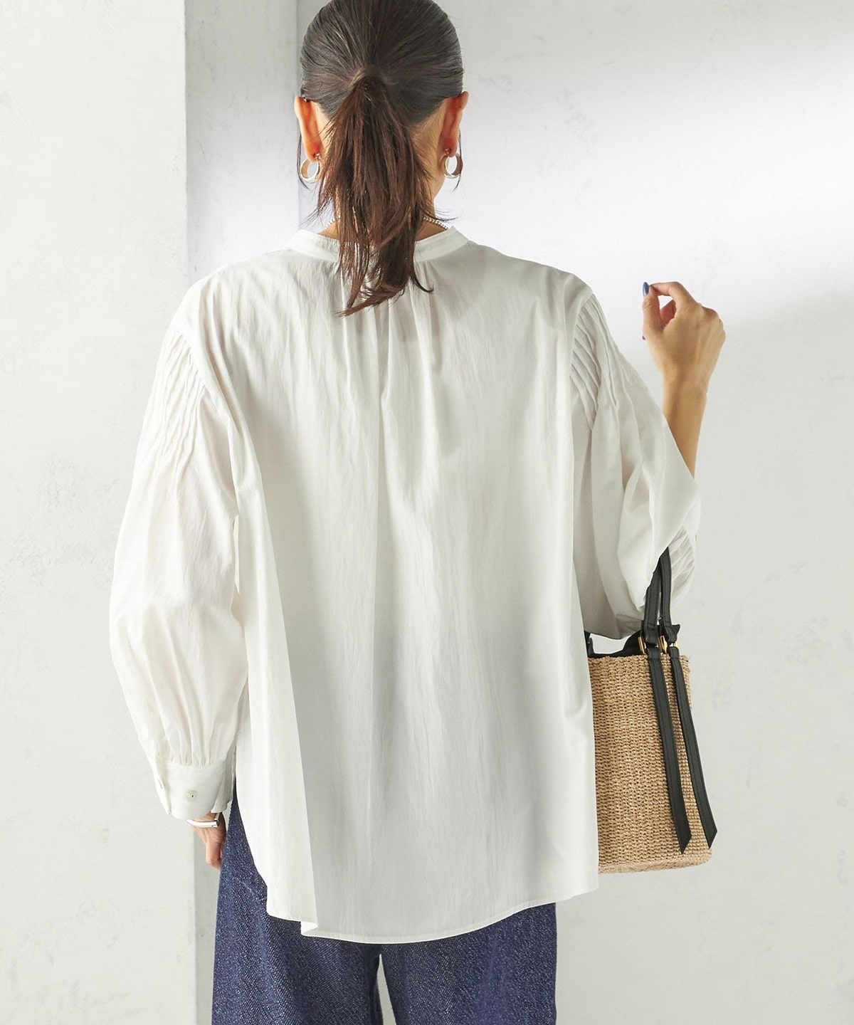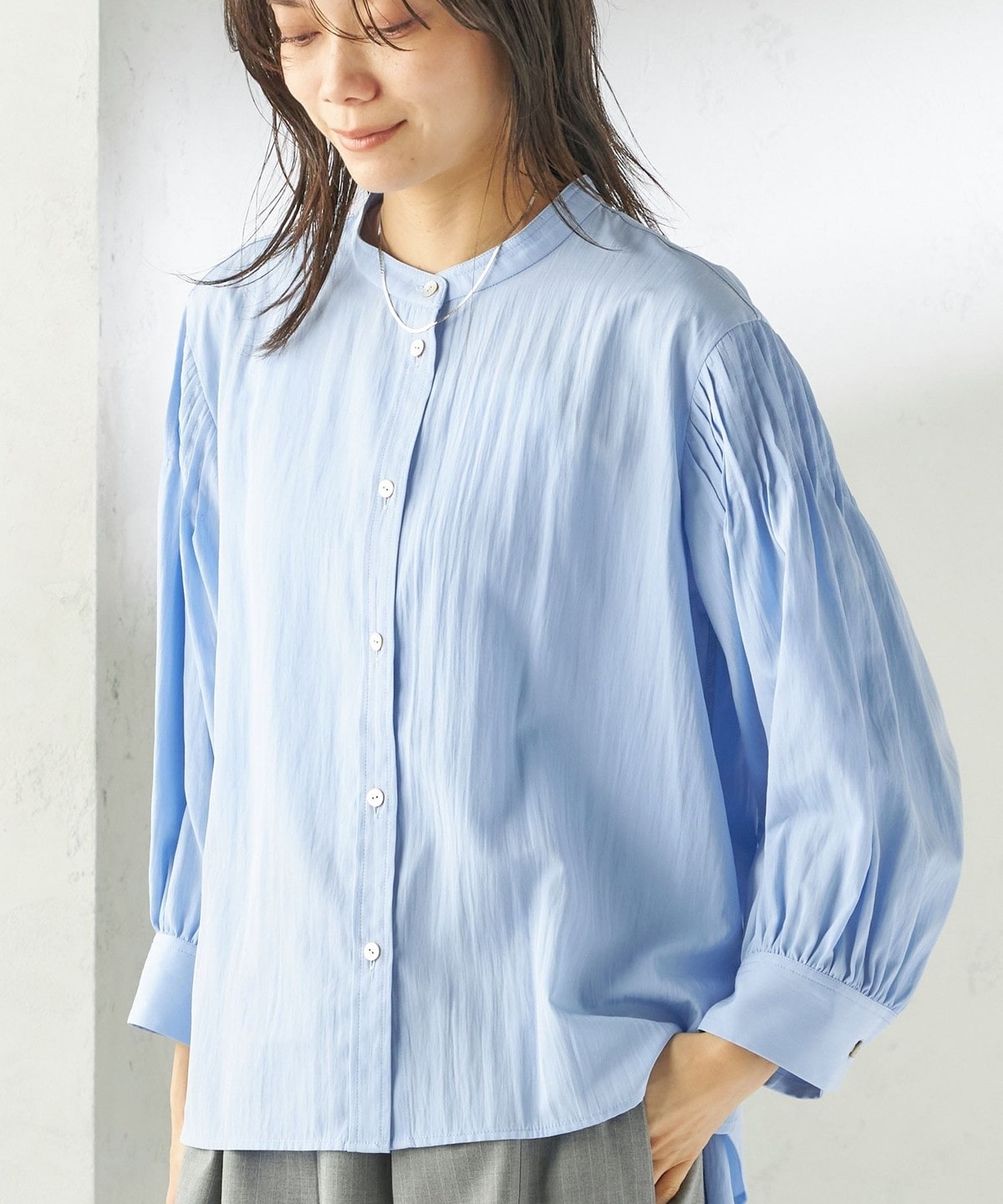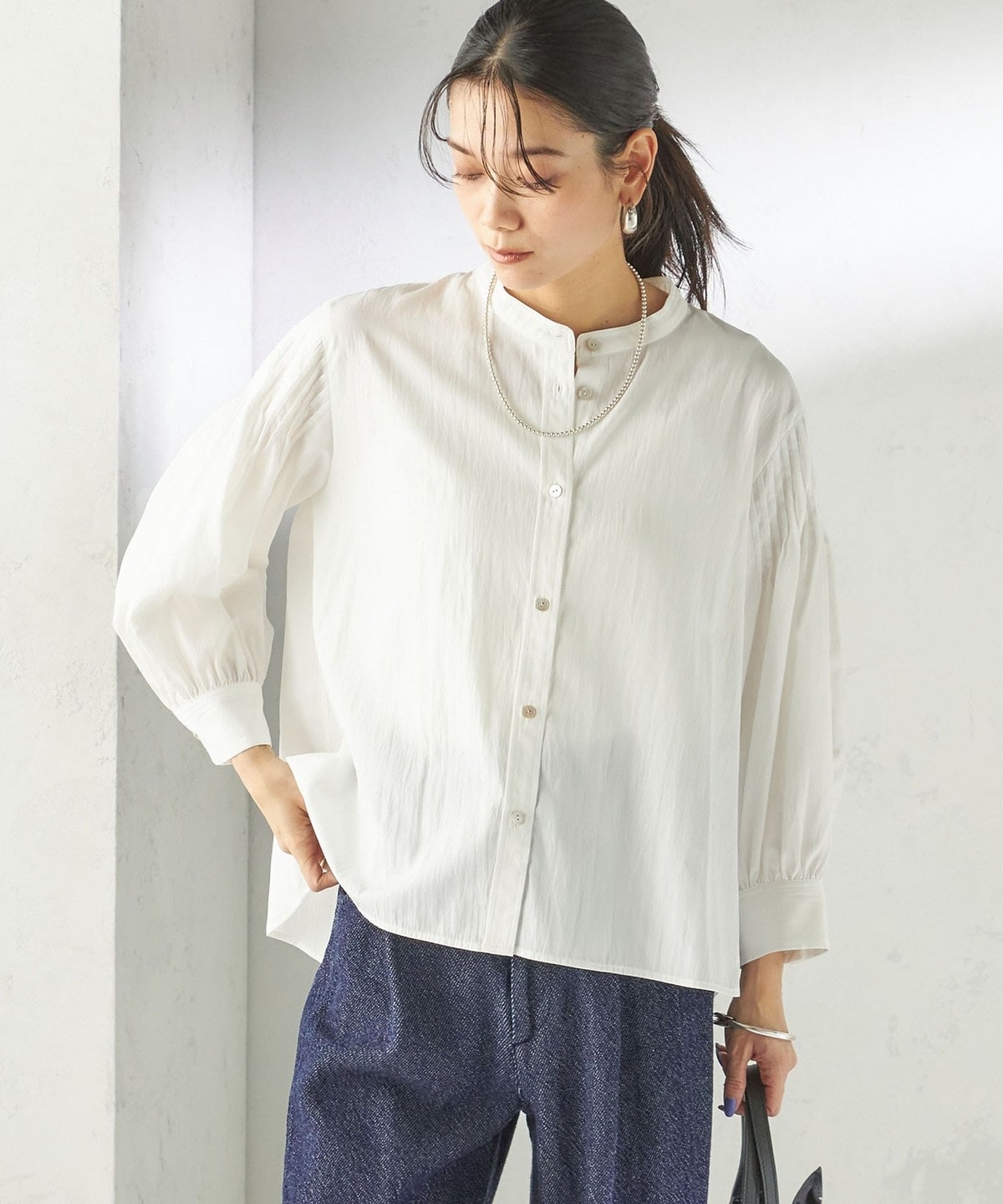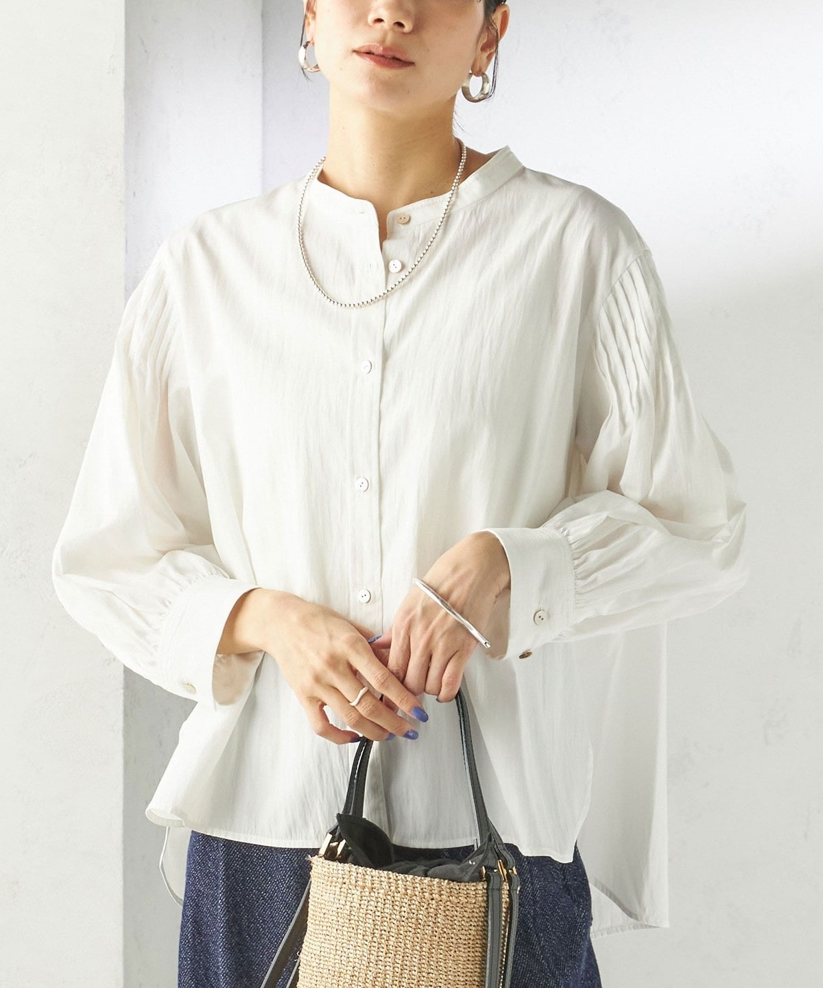 さりげない抜け感と上品さのバランスが絶妙なピンタックブラウス