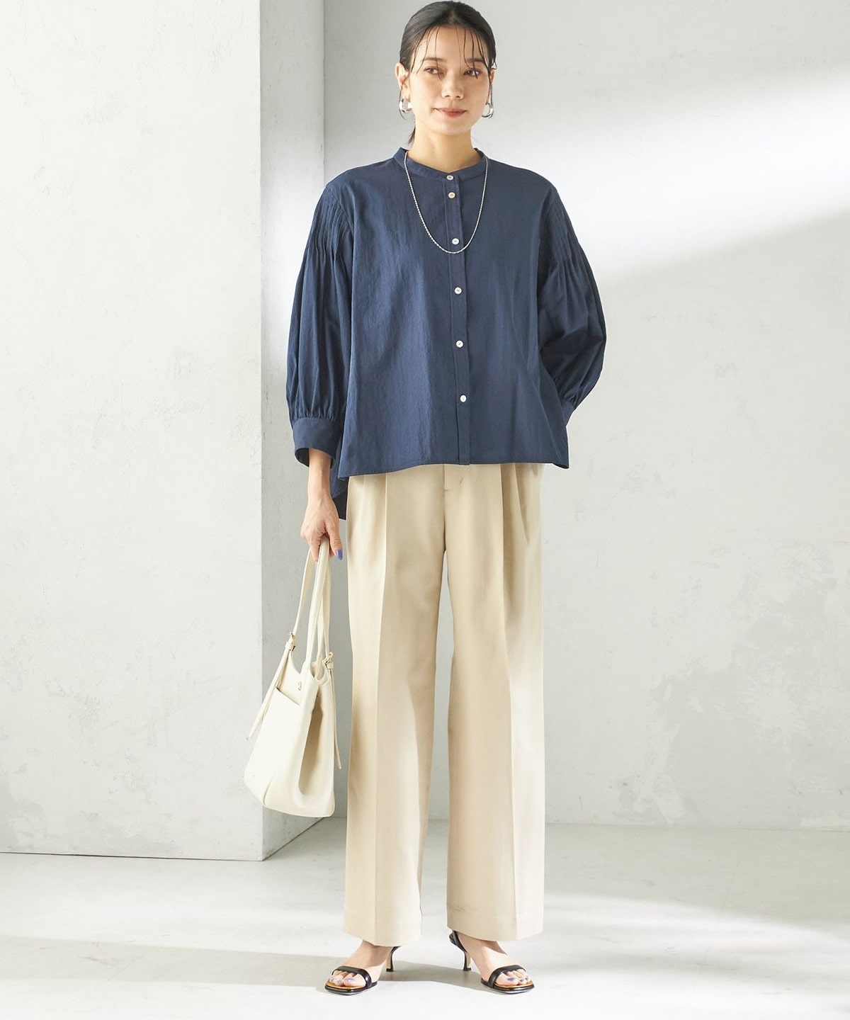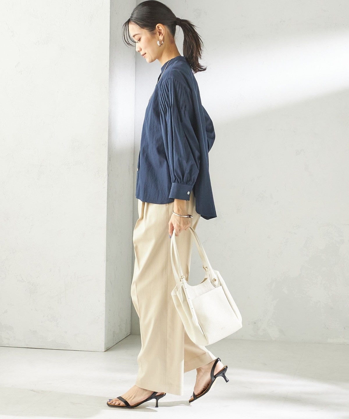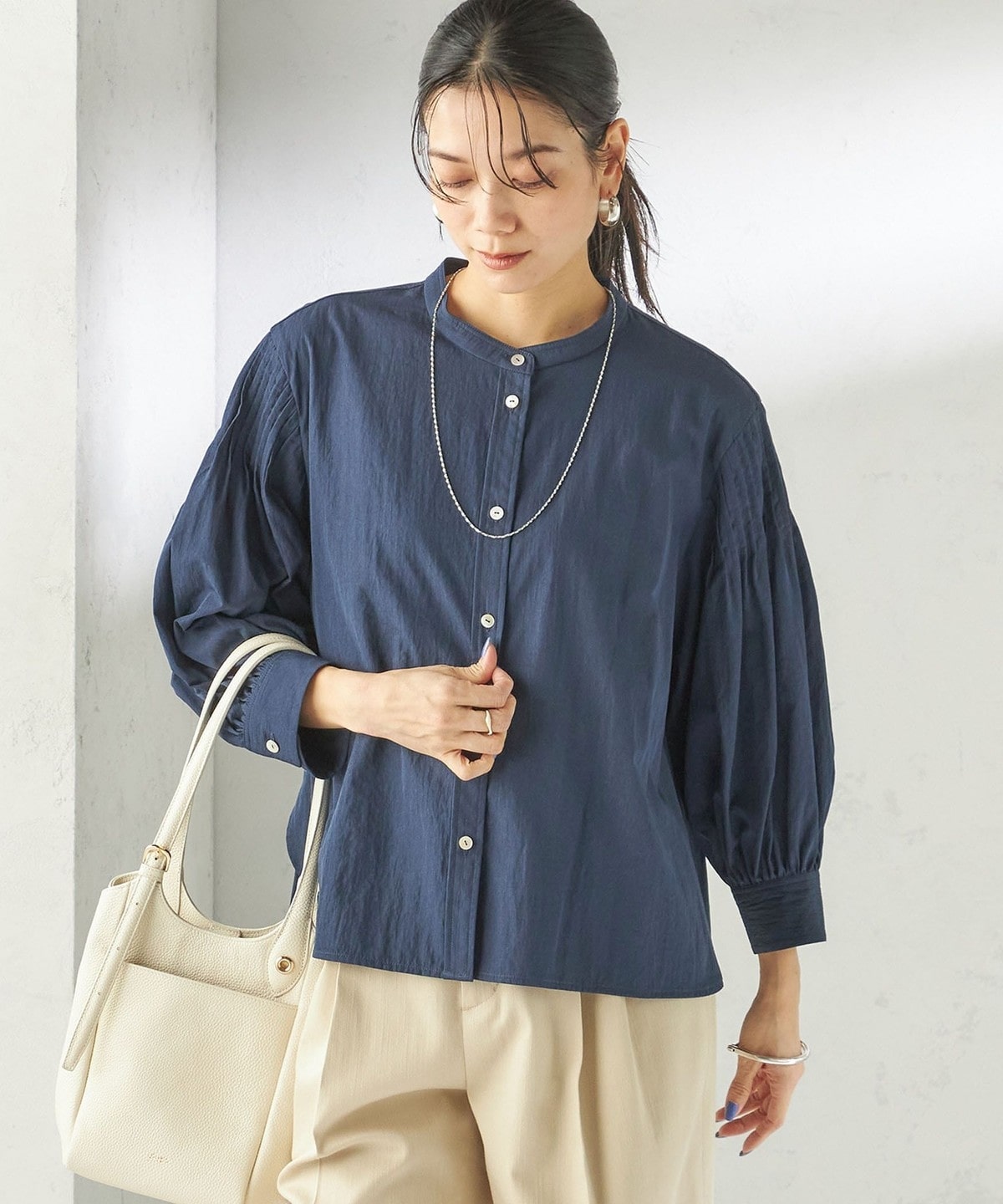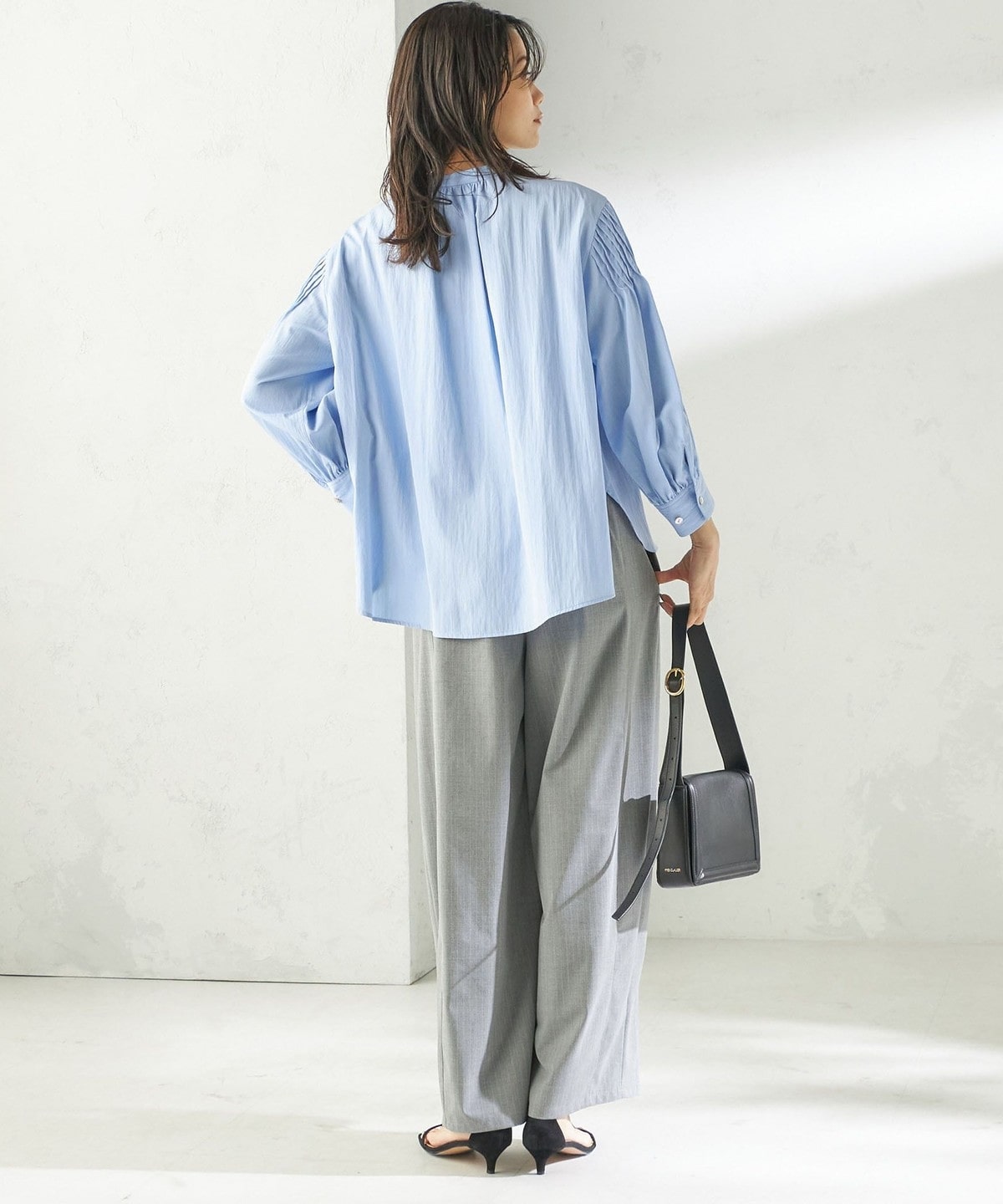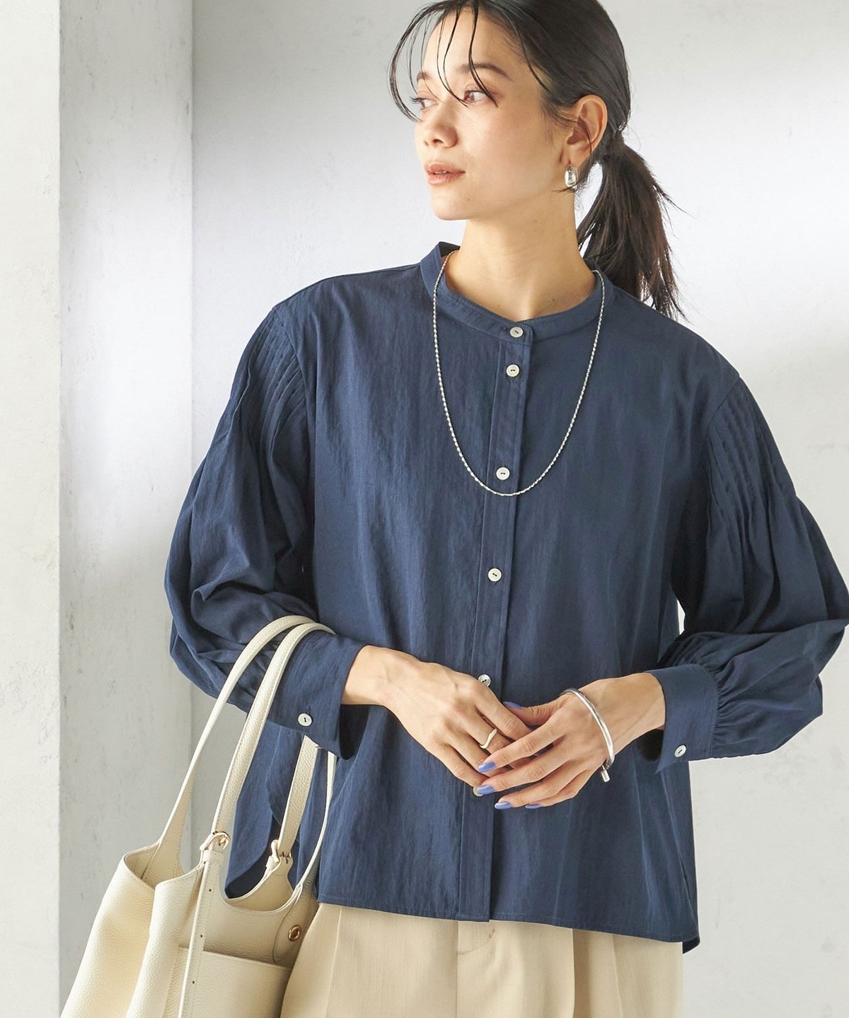 さりげない抜け感と上品さのバランスが絶妙なピンタックブラウス