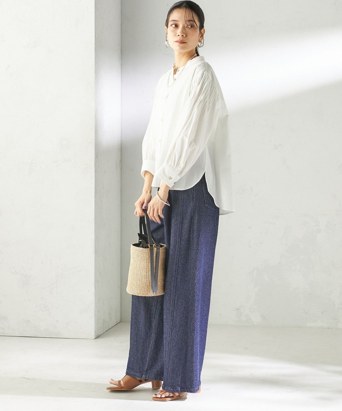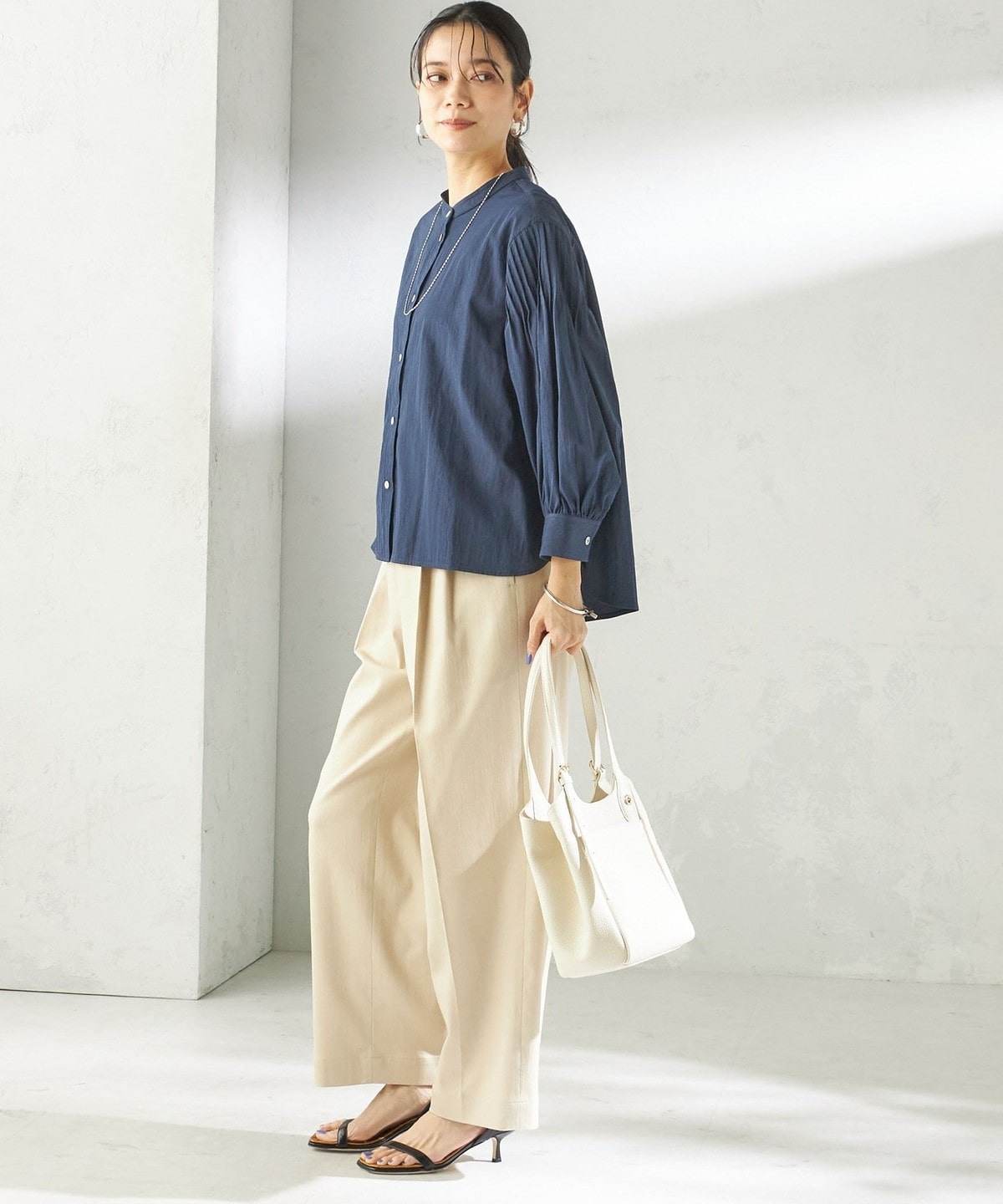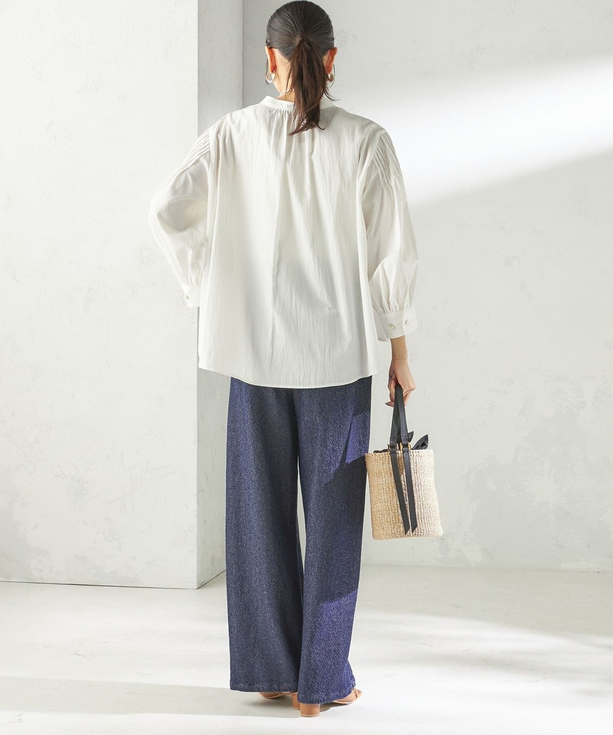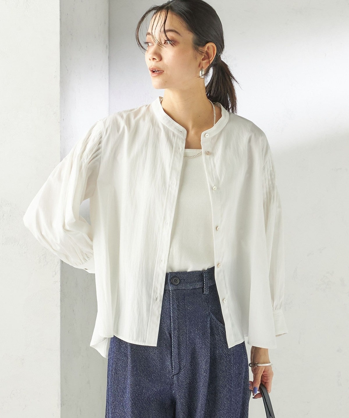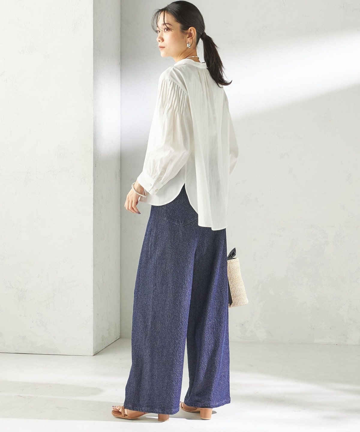 さりげない抜け感と上品さのバランスが絶妙なピンタックブラウス