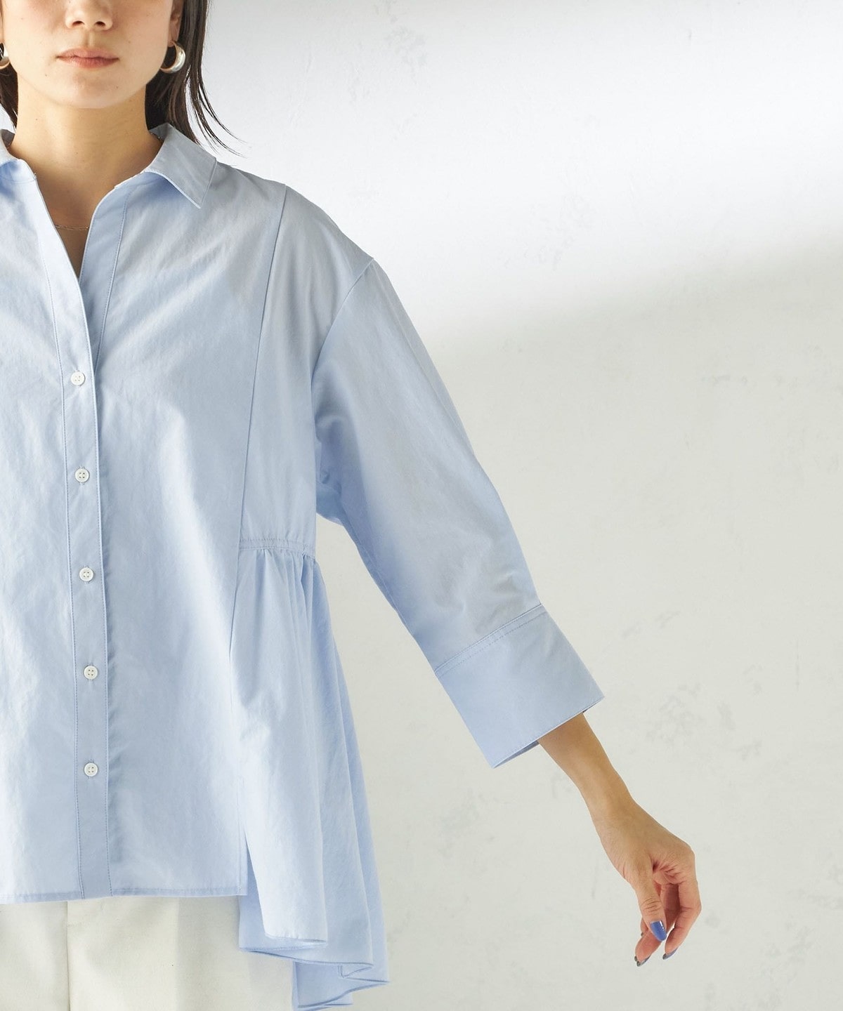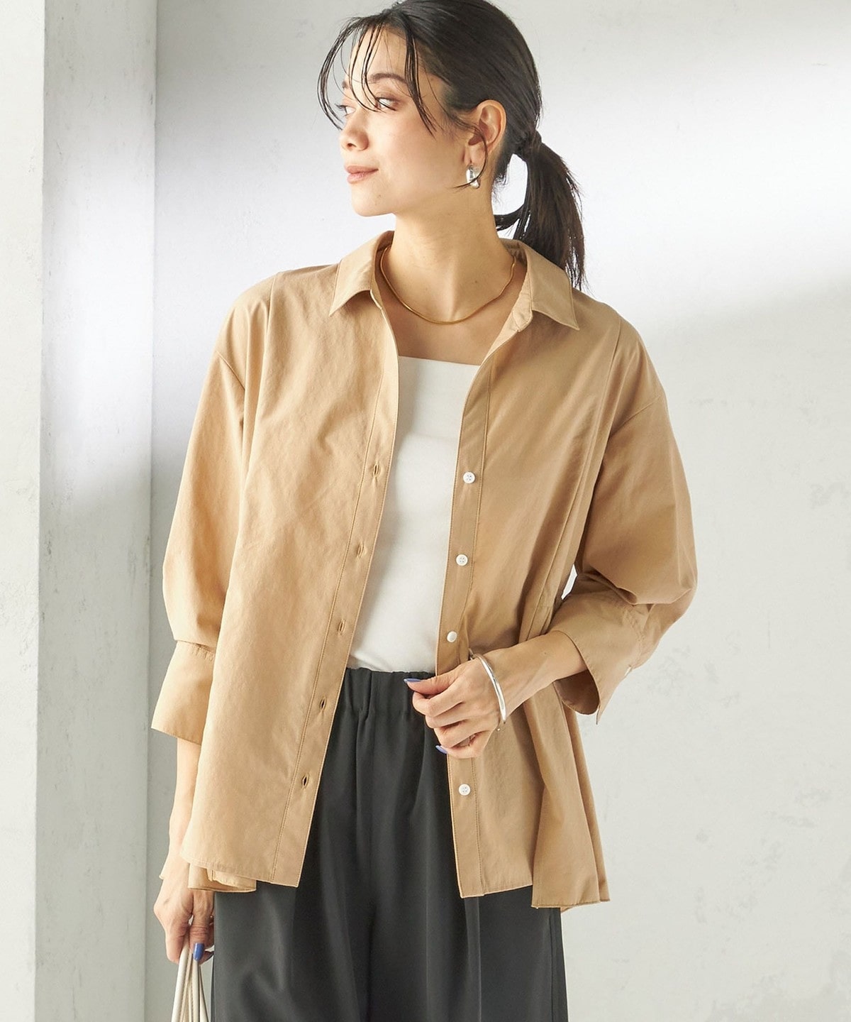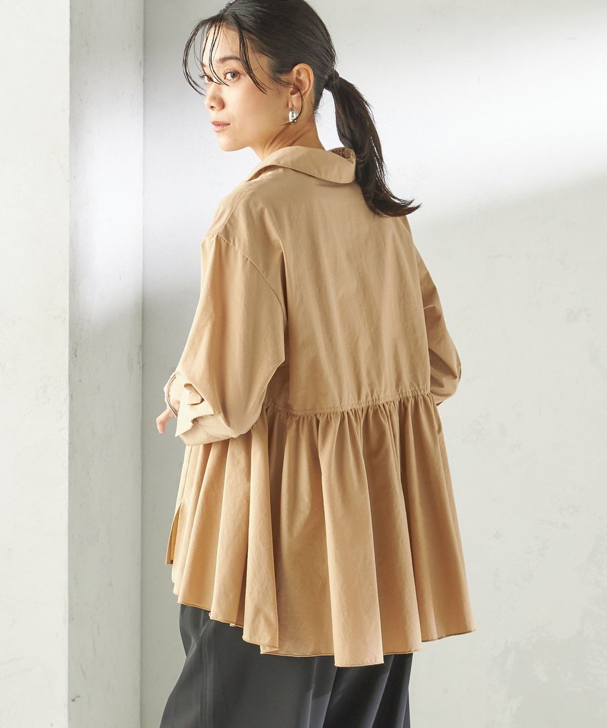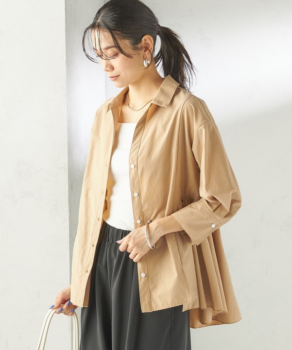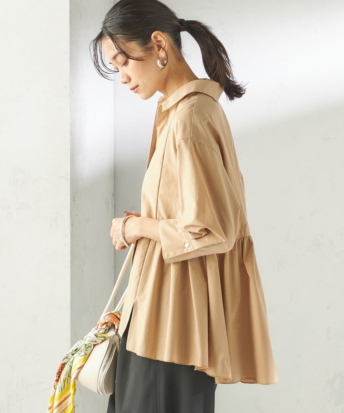 《予約》〈手洗い可能〉ポリエステル コットン ギャザー 切替 羽織 シャツ