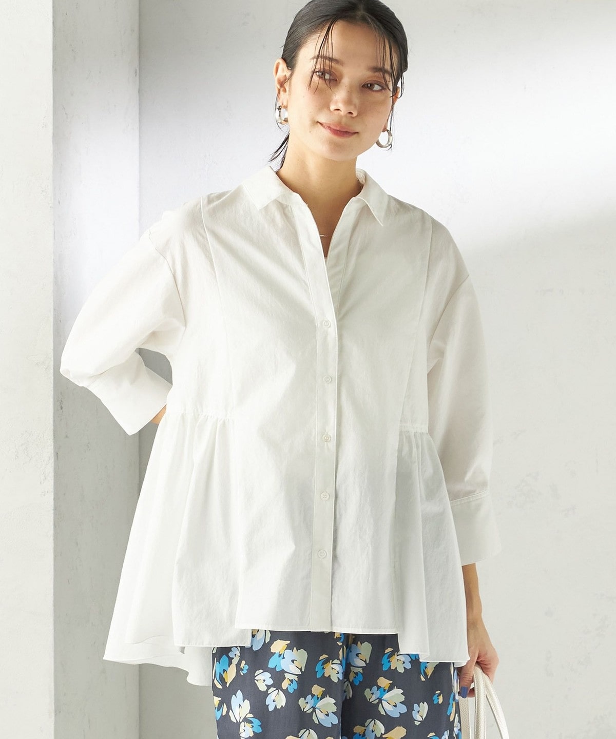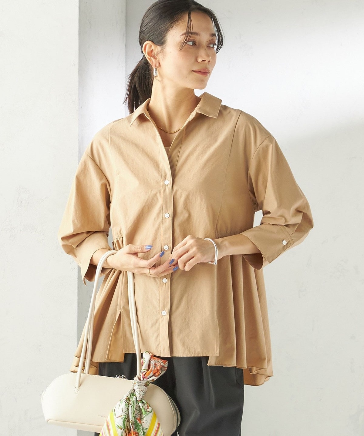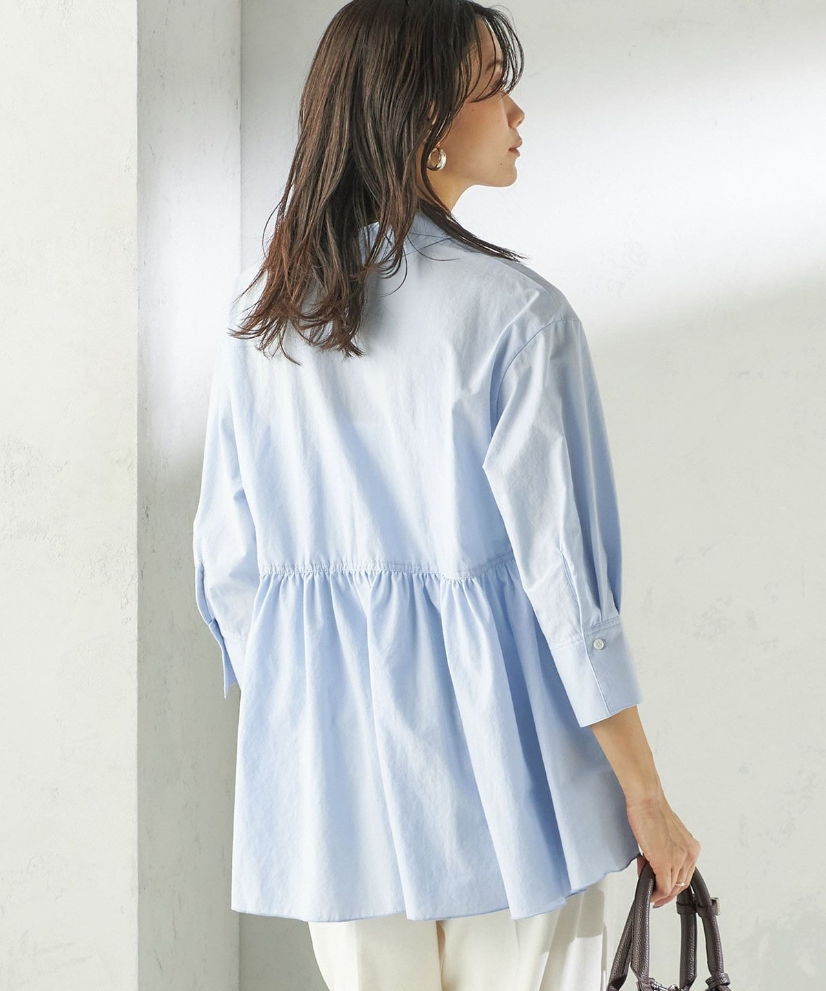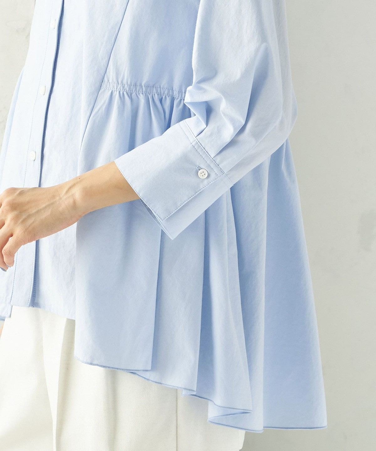 《予約》〈手洗い可能〉ポリエステル コットン ギャザー 切替 羽織 シャツ