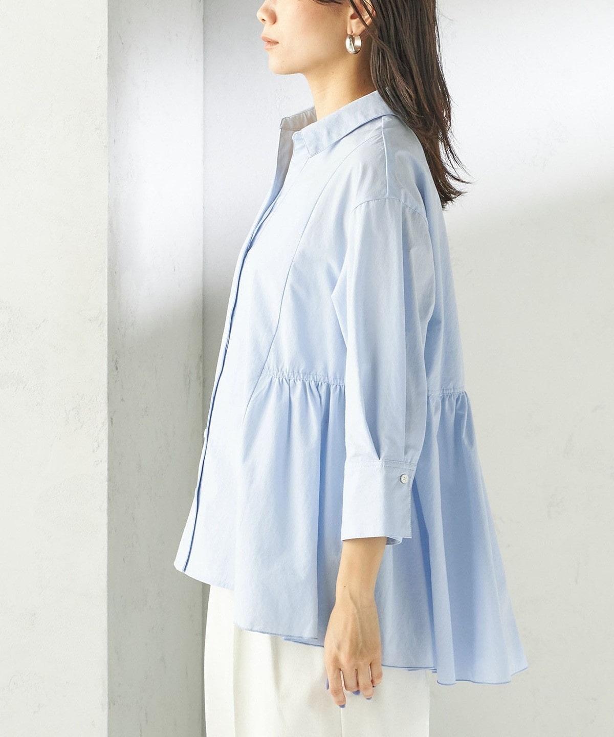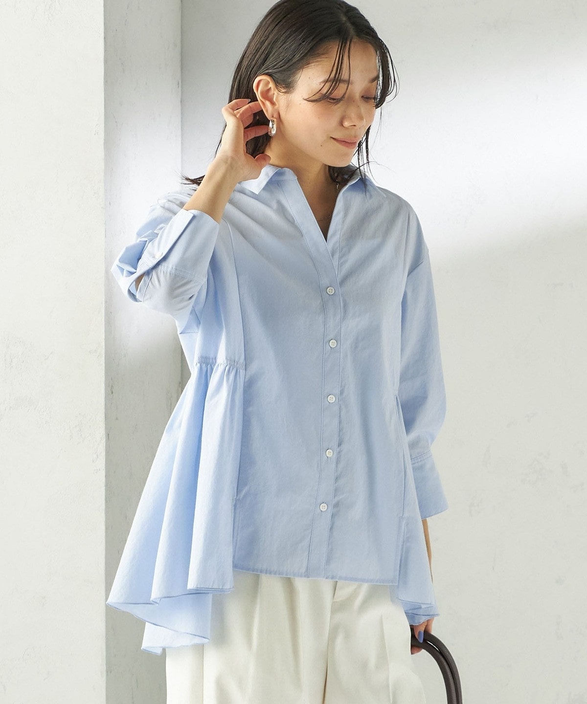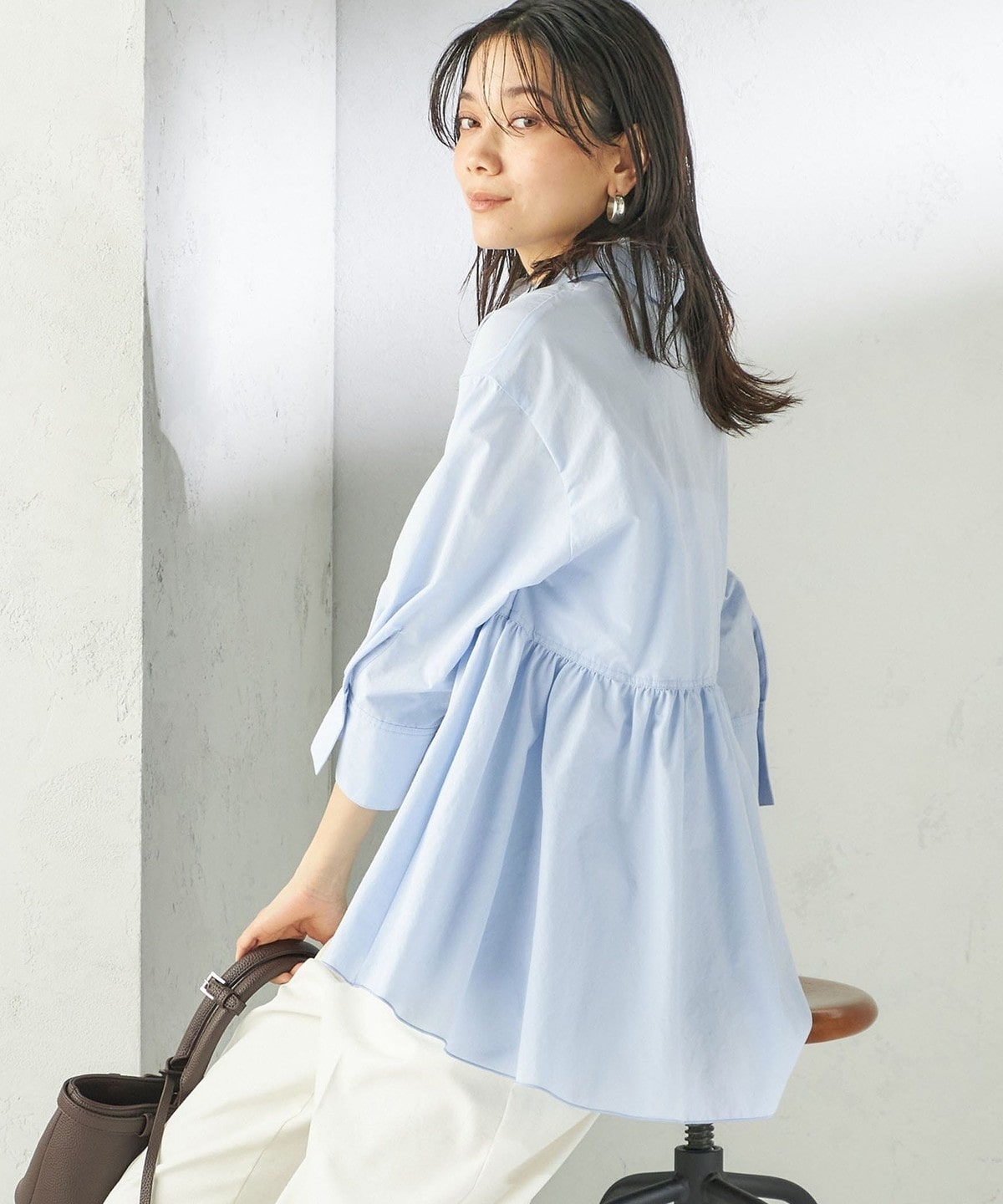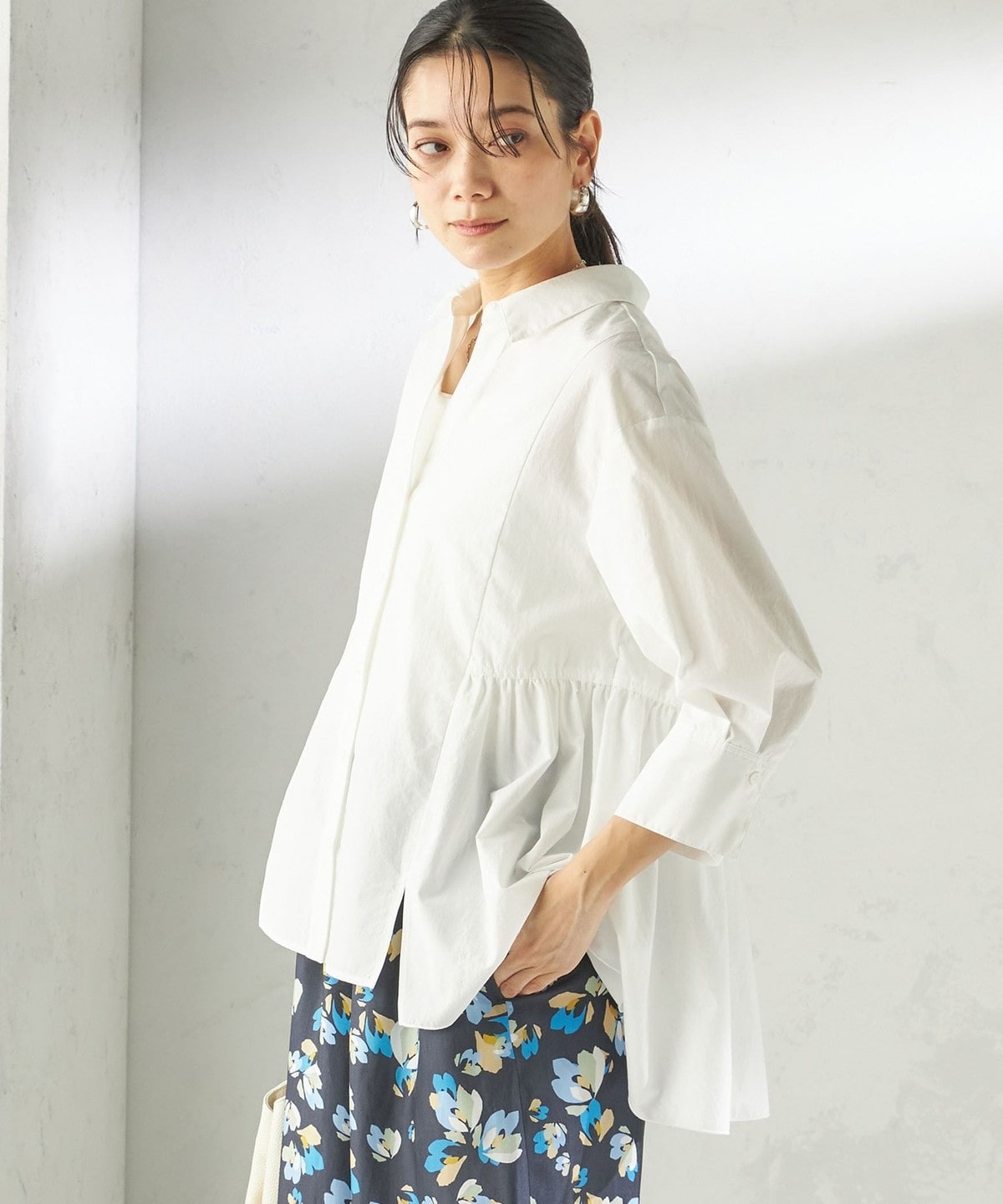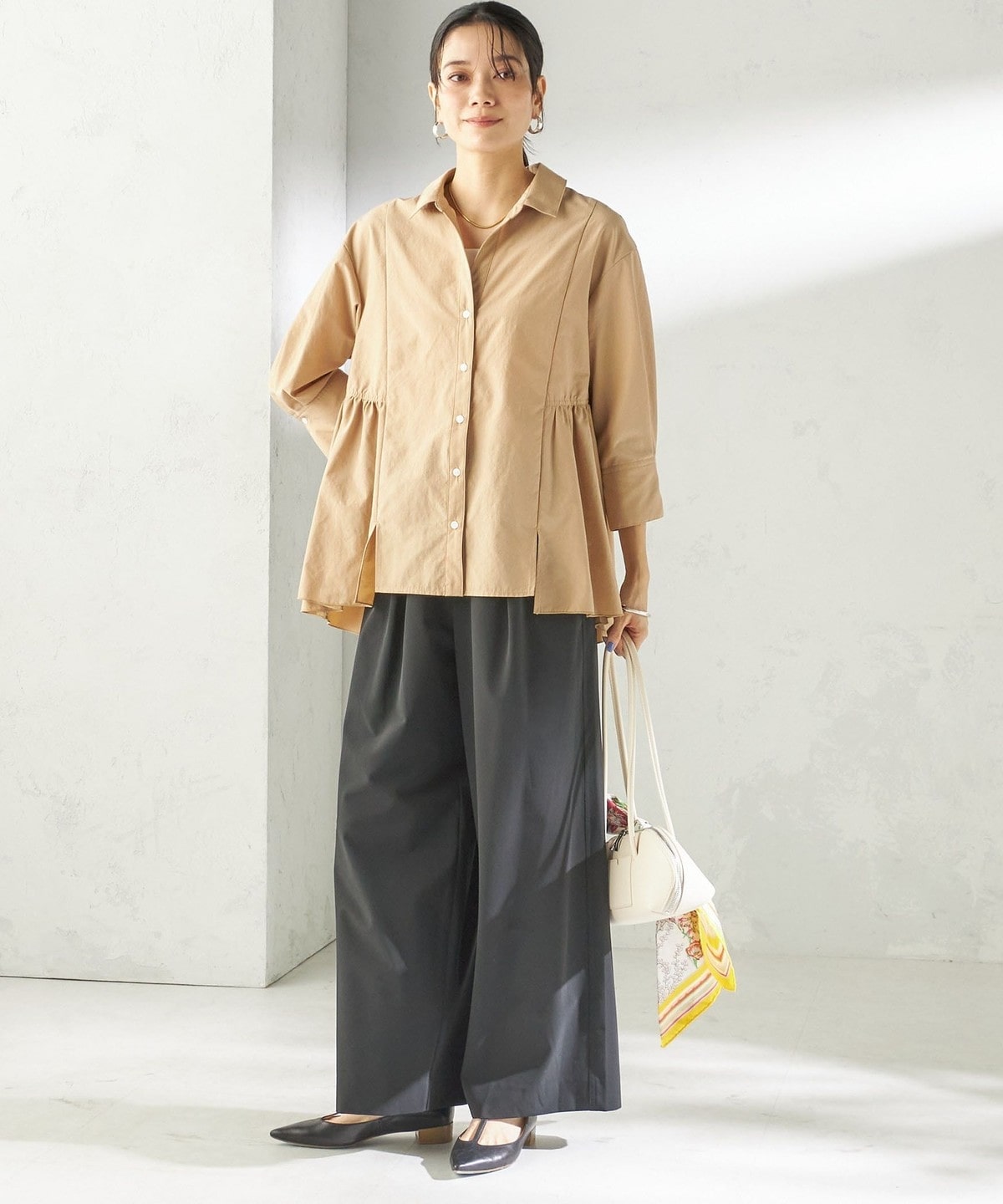 《予約》〈手洗い可能〉ポリエステル コットン ギャザー 切替 羽織 シャツ