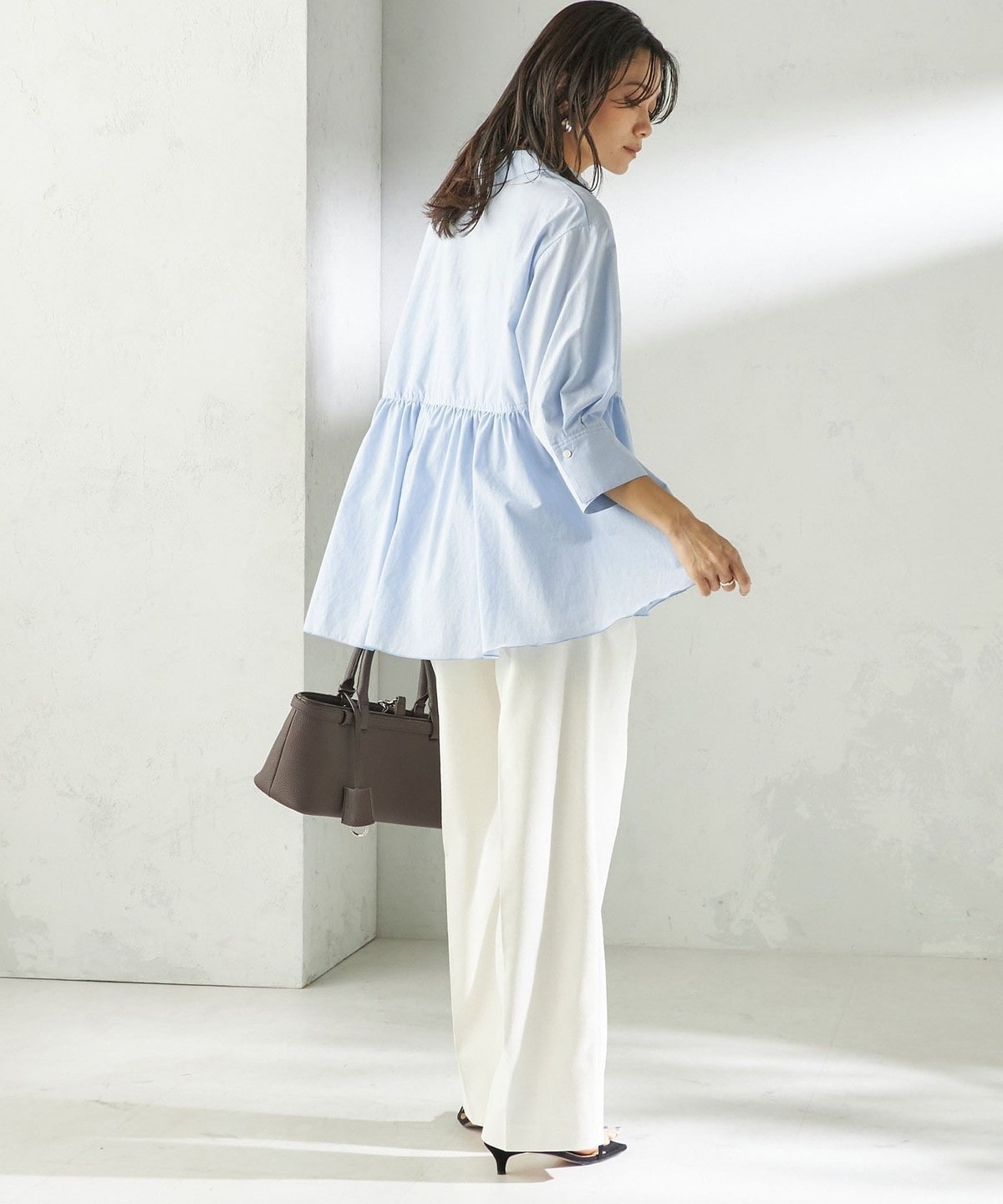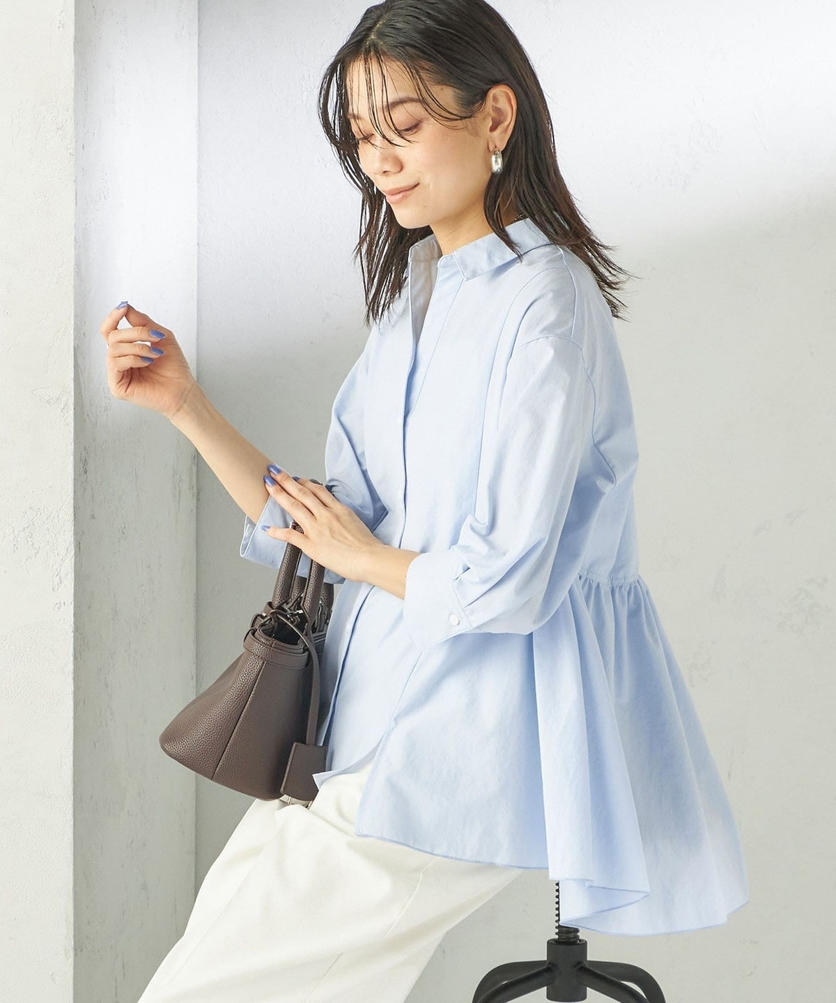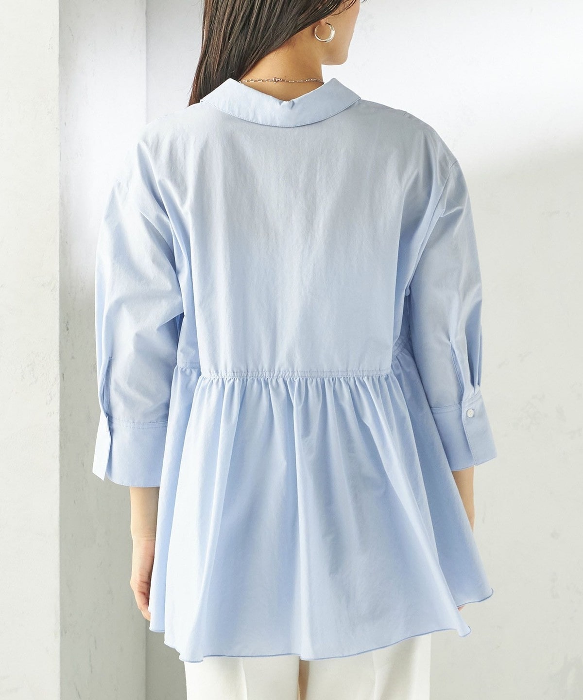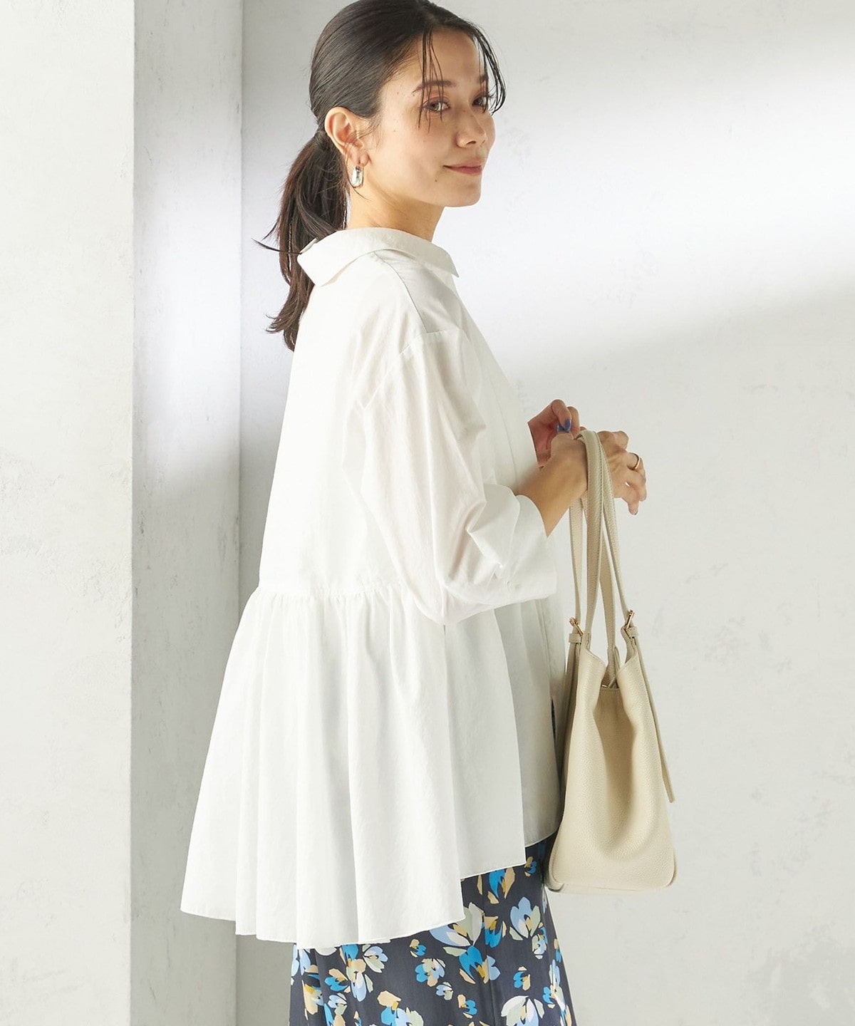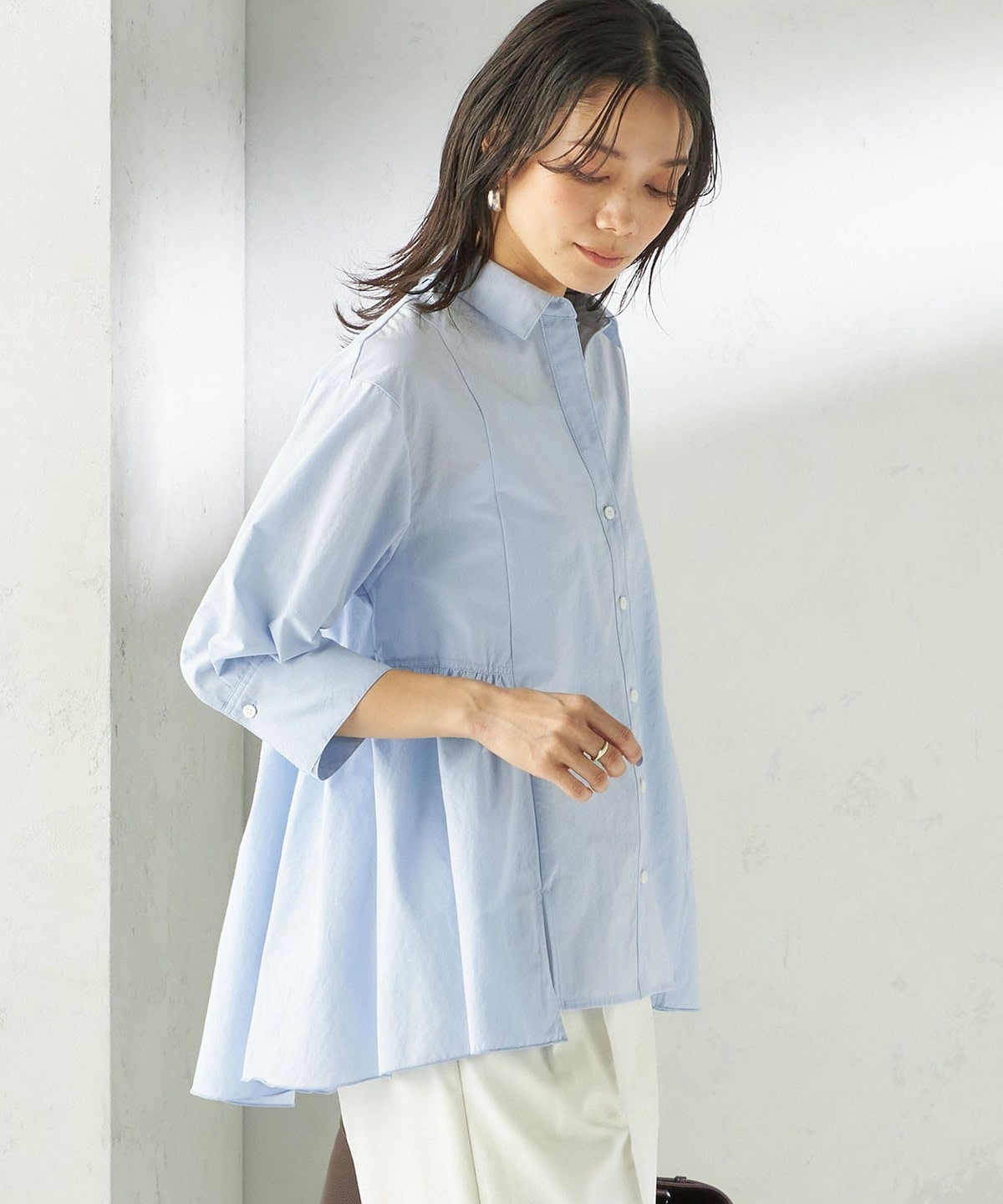 《予約》〈手洗い可能〉ポリエステル コットン ギャザー 切替 羽織 シャツ