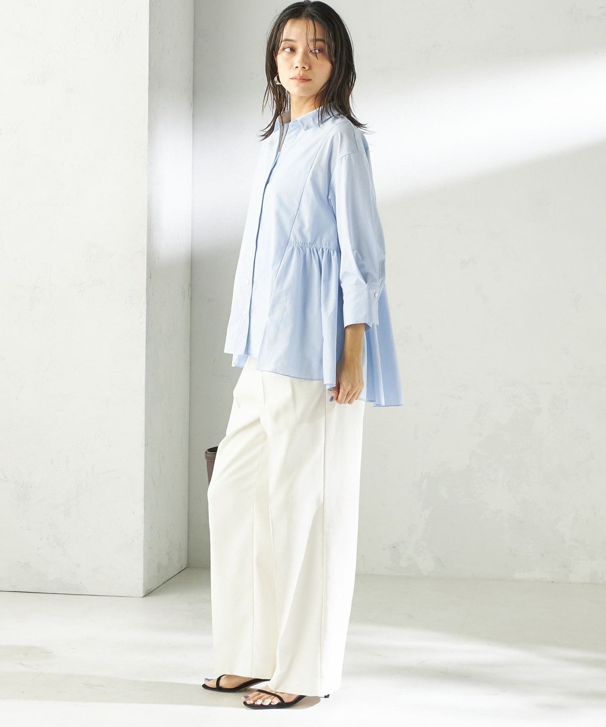 着丈は前後差をつけて前身頃にスリットを入れることで、すっきりとしたシルエットで着用頂けます。
