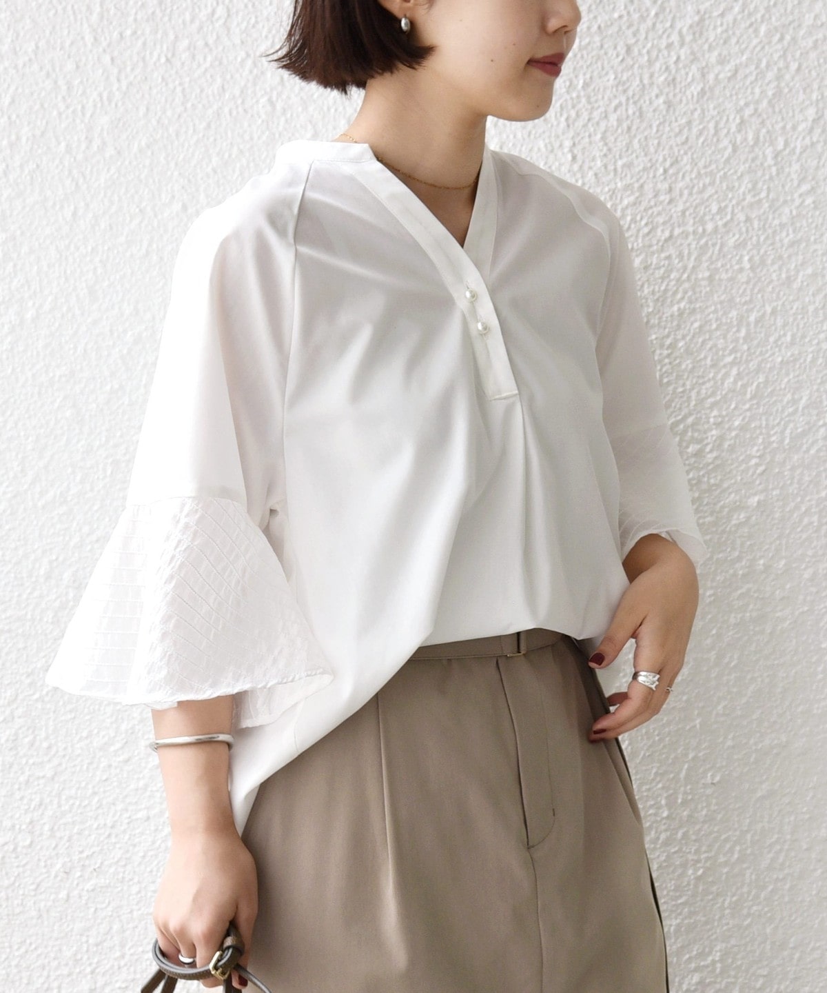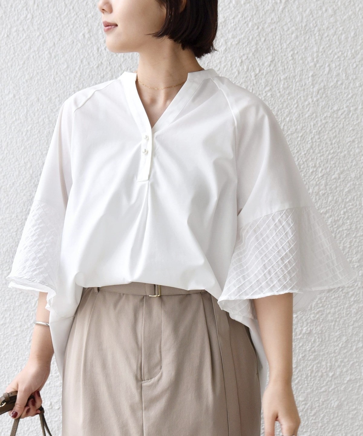軽やかに揺れるフレアスリーブが女性らしい 上品ブラウス