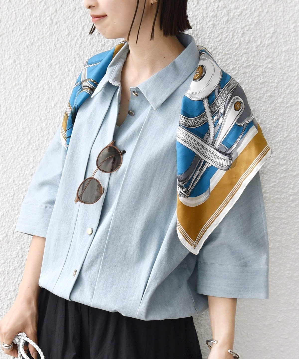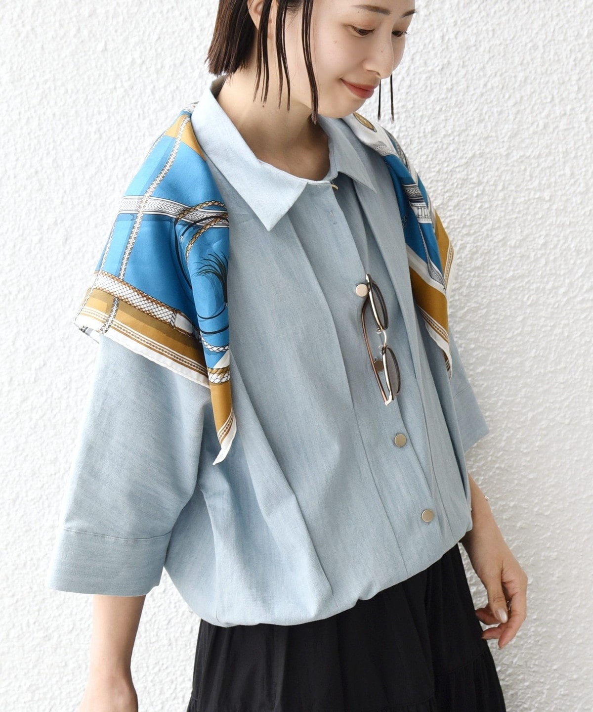 薄手で柔らかなデニムライク素材で五分袖なので春〜秋まで長いシーズン着回しができます。
