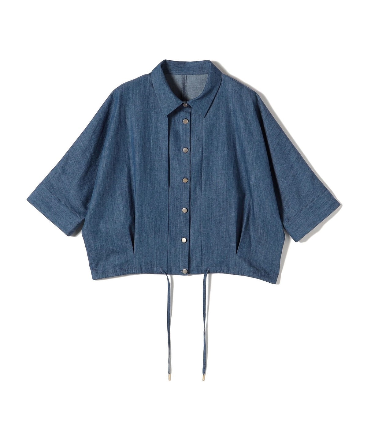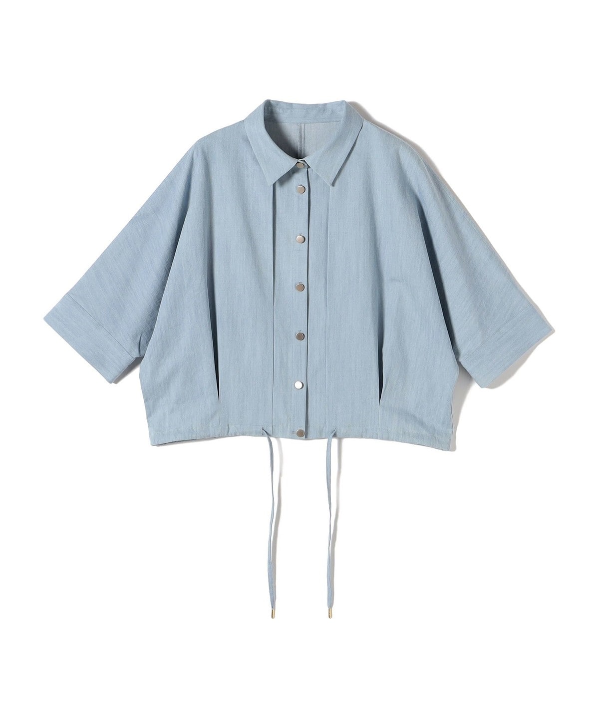 【WEB限定】〈手洗い可能〉デニム ライク タック 裾 ドロスト 羽織 シャツ