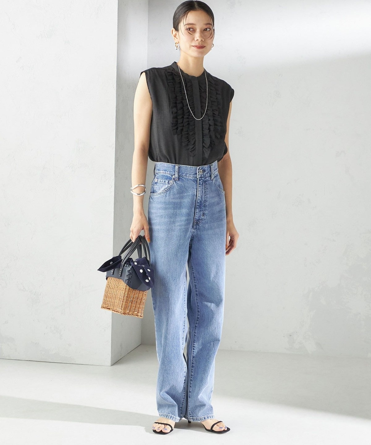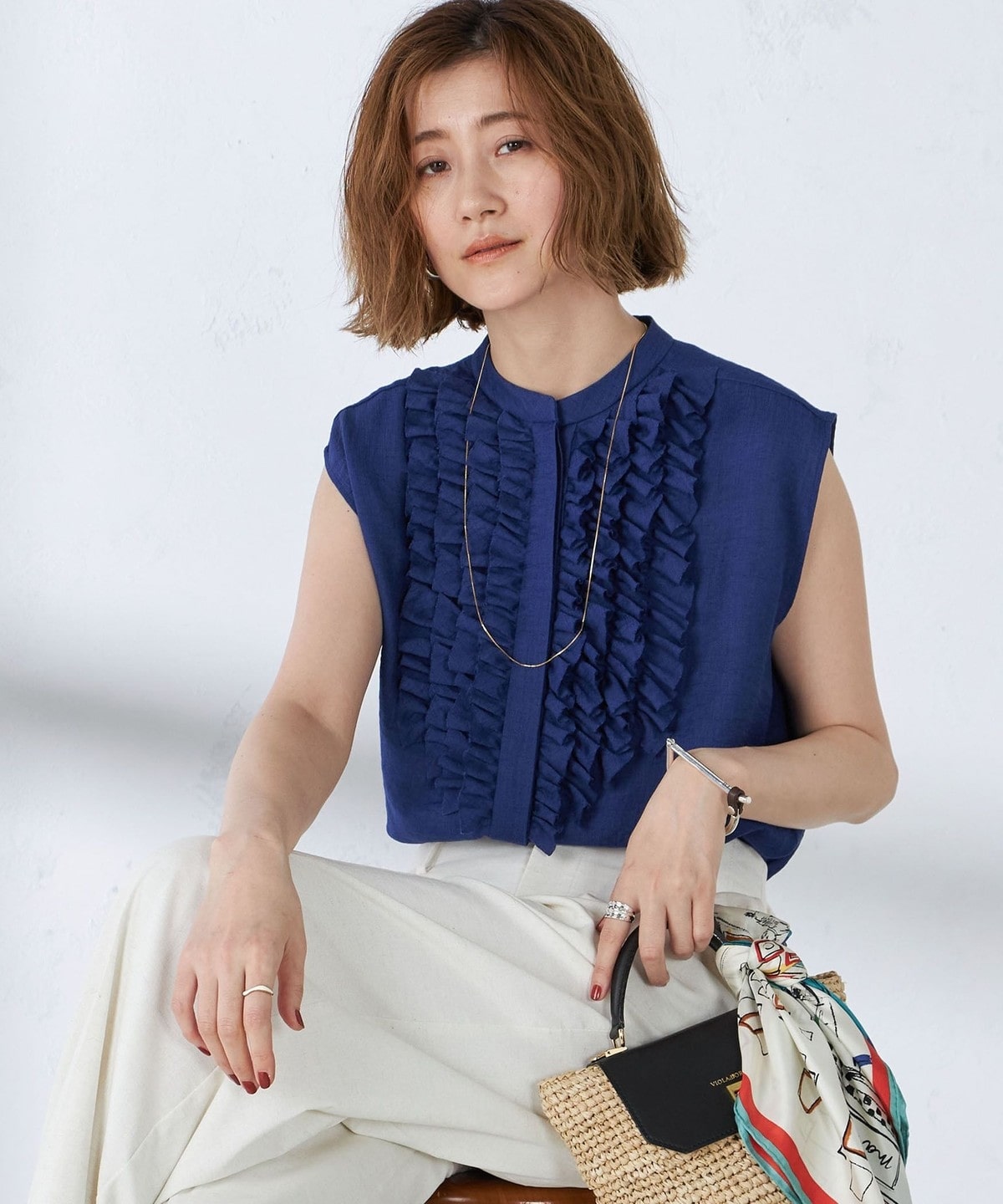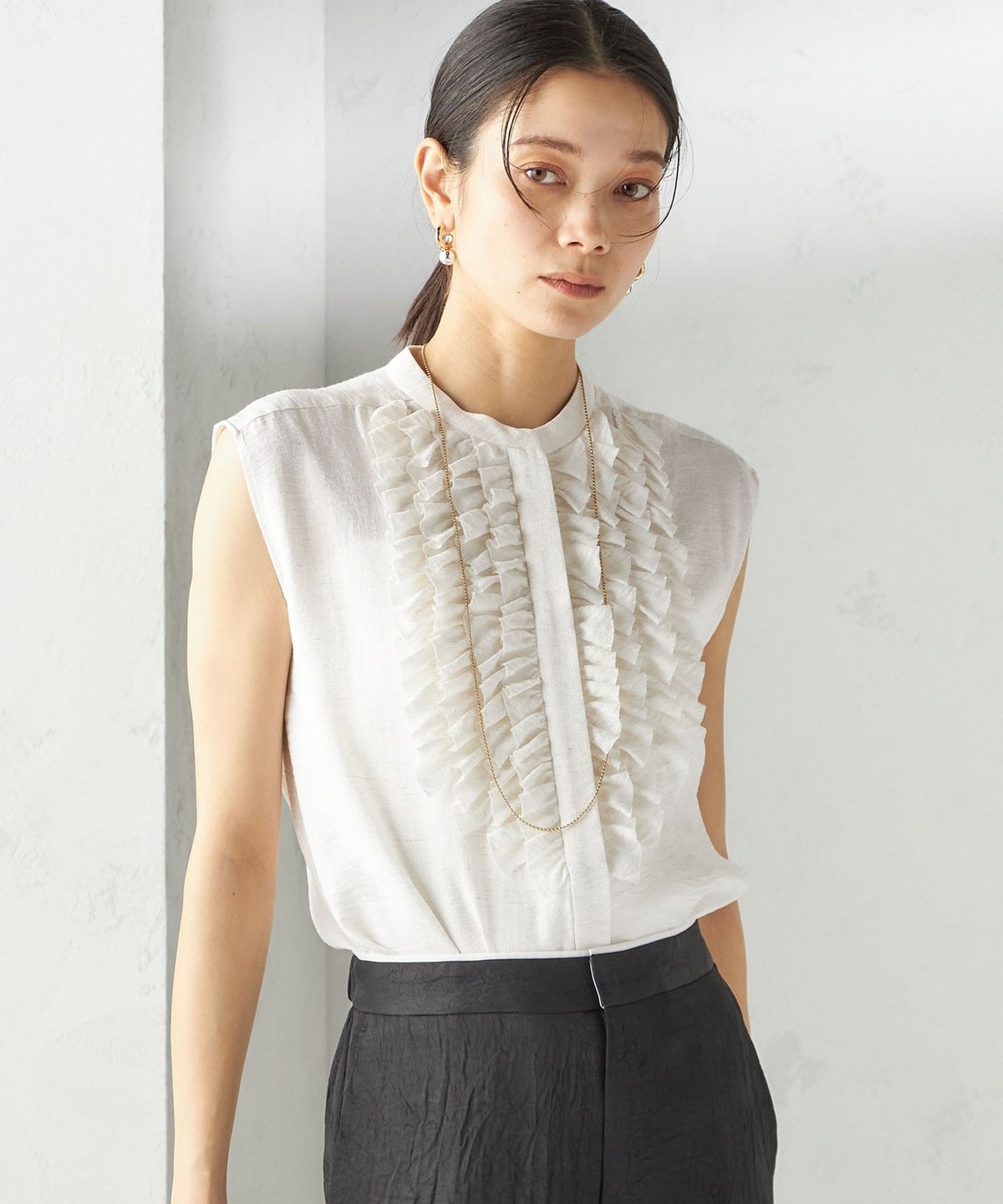 甘すぎないフロントフリルのデザインがポイントのブラウス