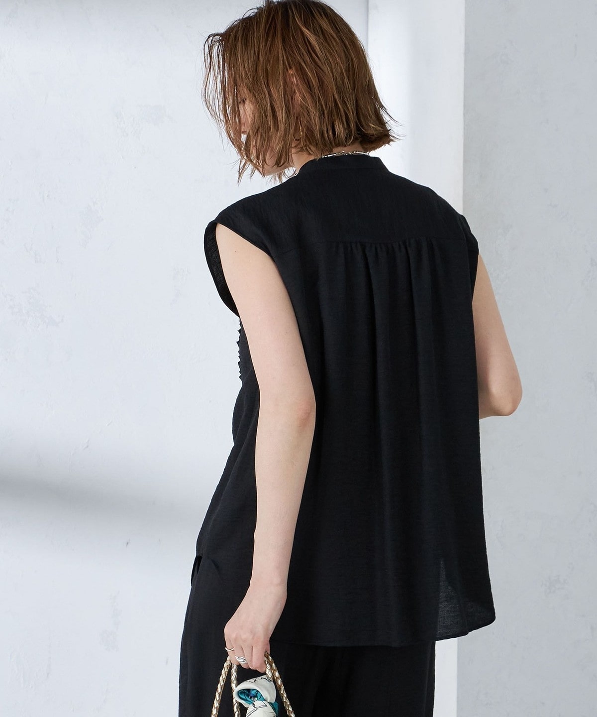 程良い緩さのサイズ感なので、ラフな印象で着ていただけます。
