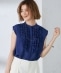 3. 〈手洗い可能〉麻混 フロント フリル フレンチスリーブ ブラウス ブルー系