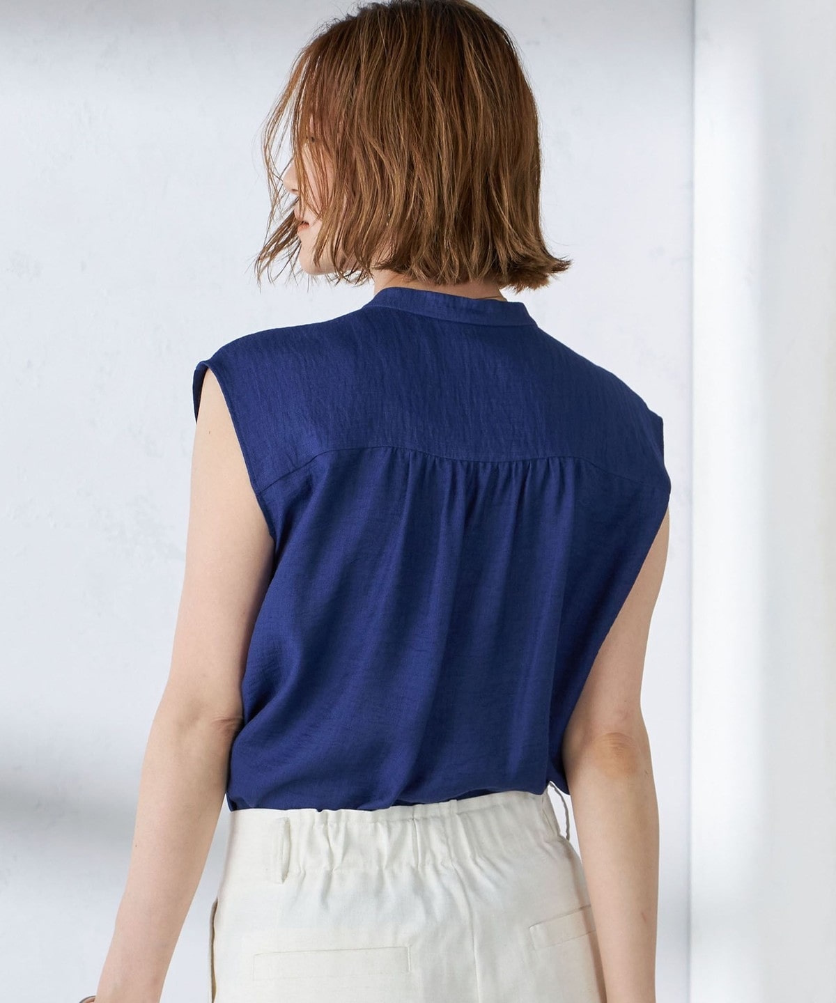 落ち感のあるボトムできれいめに、デニム合わせでカジュアルにもスタイリングしていただけるブラウスです。