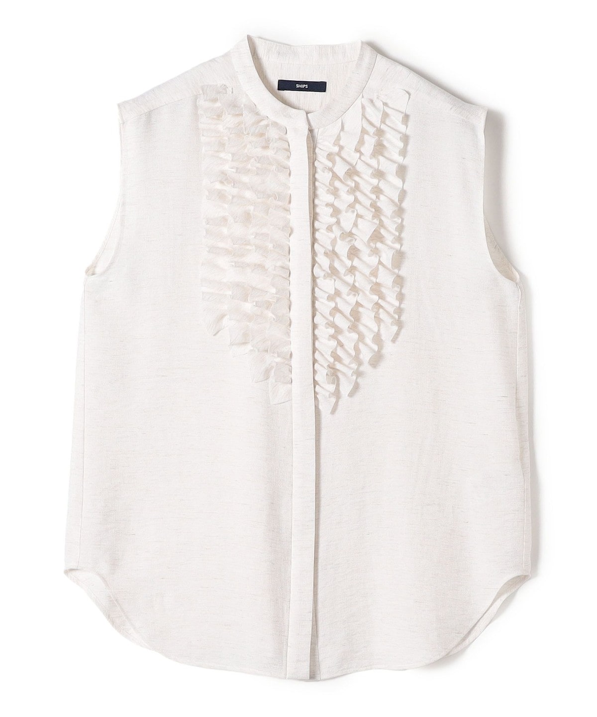 > > >  > 〈手洗い可能〉麻混 フロント フリル フレンチスリーブ ブラウス