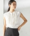 1. 〈手洗い可能〉麻混 フロント フリル フレンチスリーブ ブラウス オフホワイト