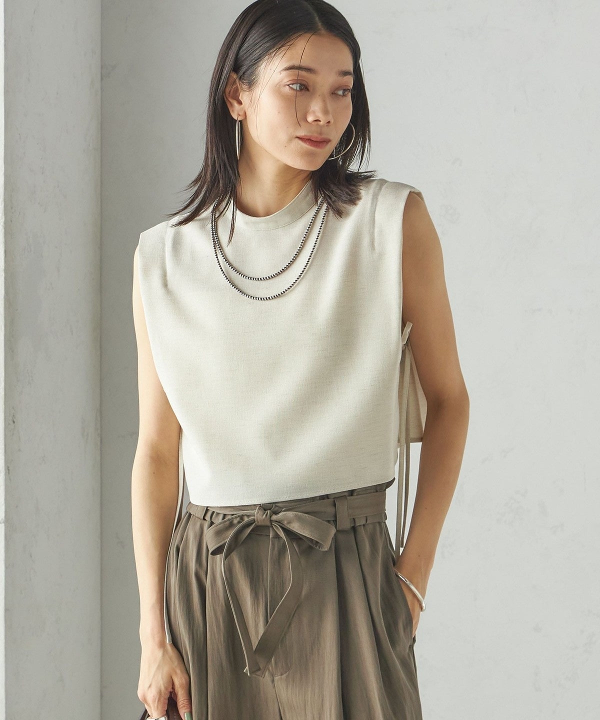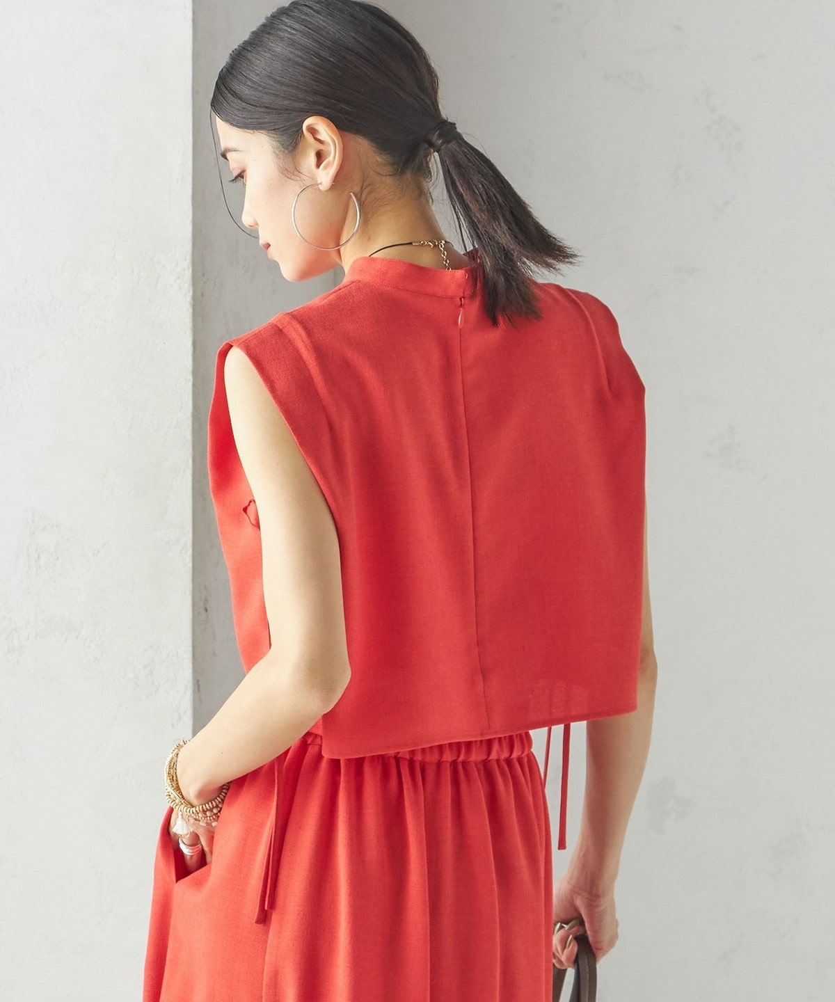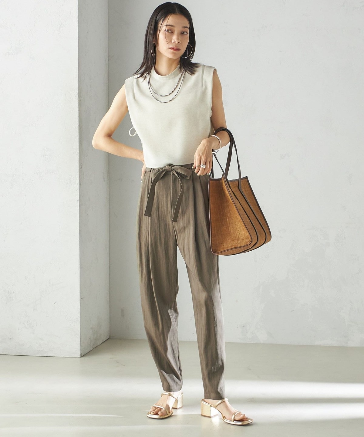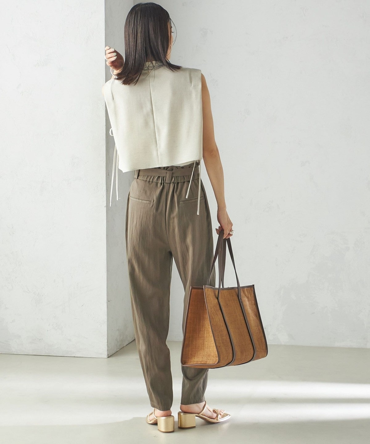 小泉里子コラボ:〈手洗い可能〉ツイル ウエスト テーパード パンツ