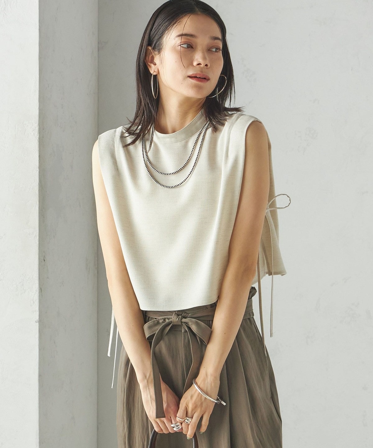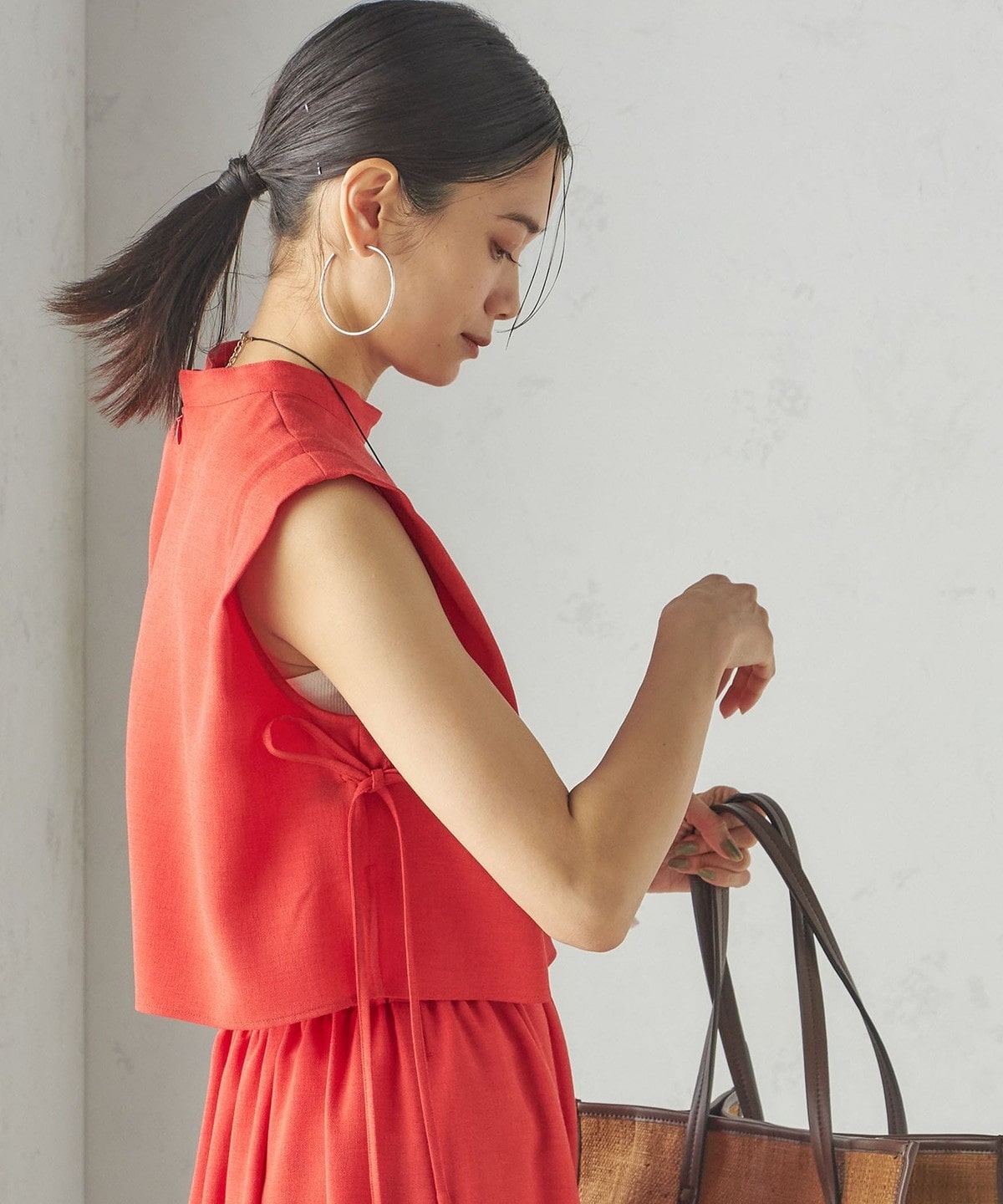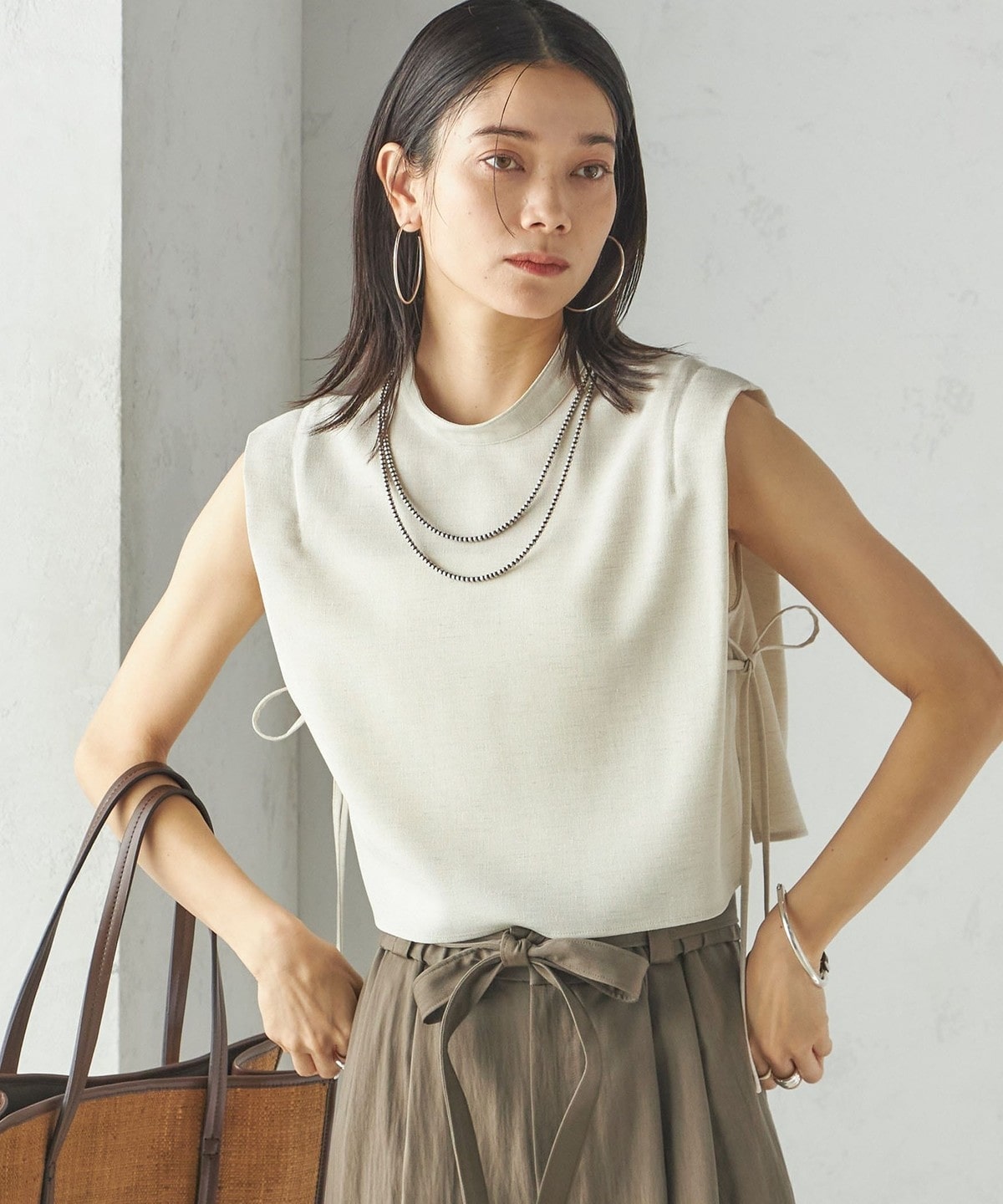 小泉里子コラボ:〈手洗い可能〉ツイル ウエスト テーパード パンツ