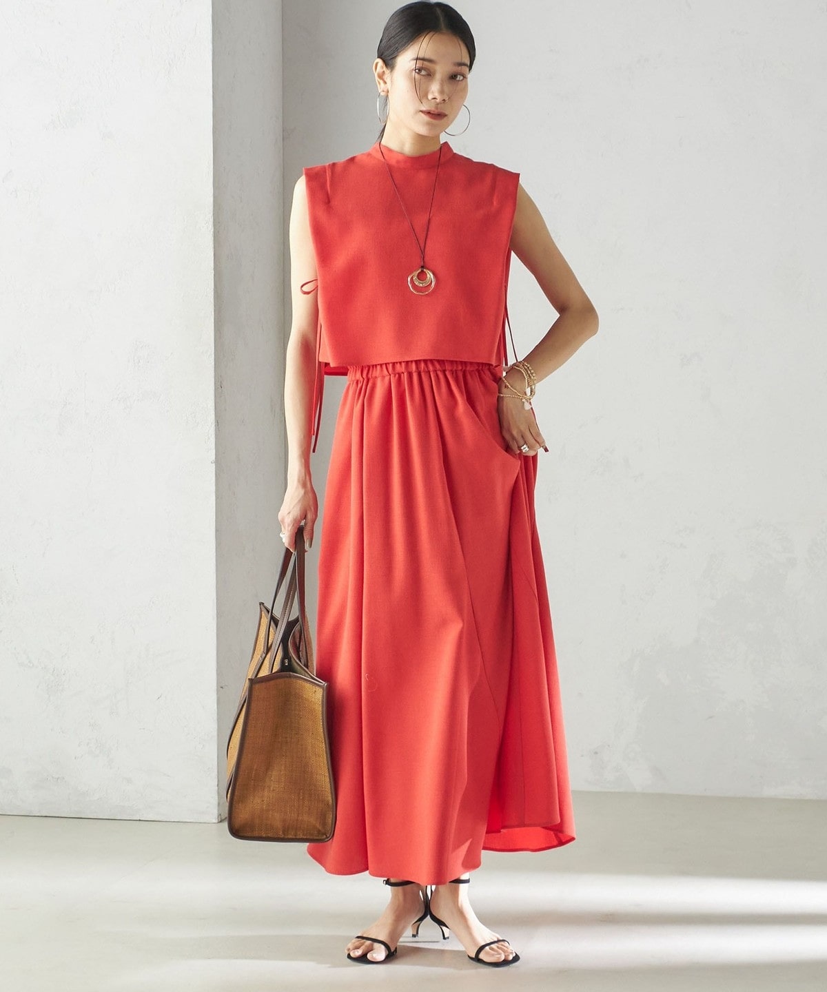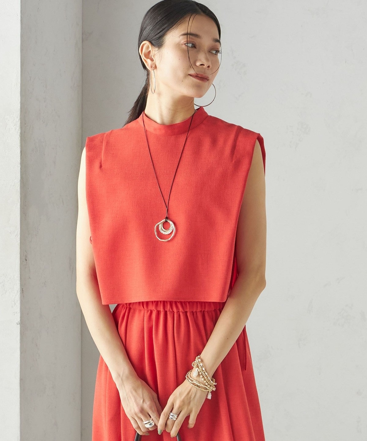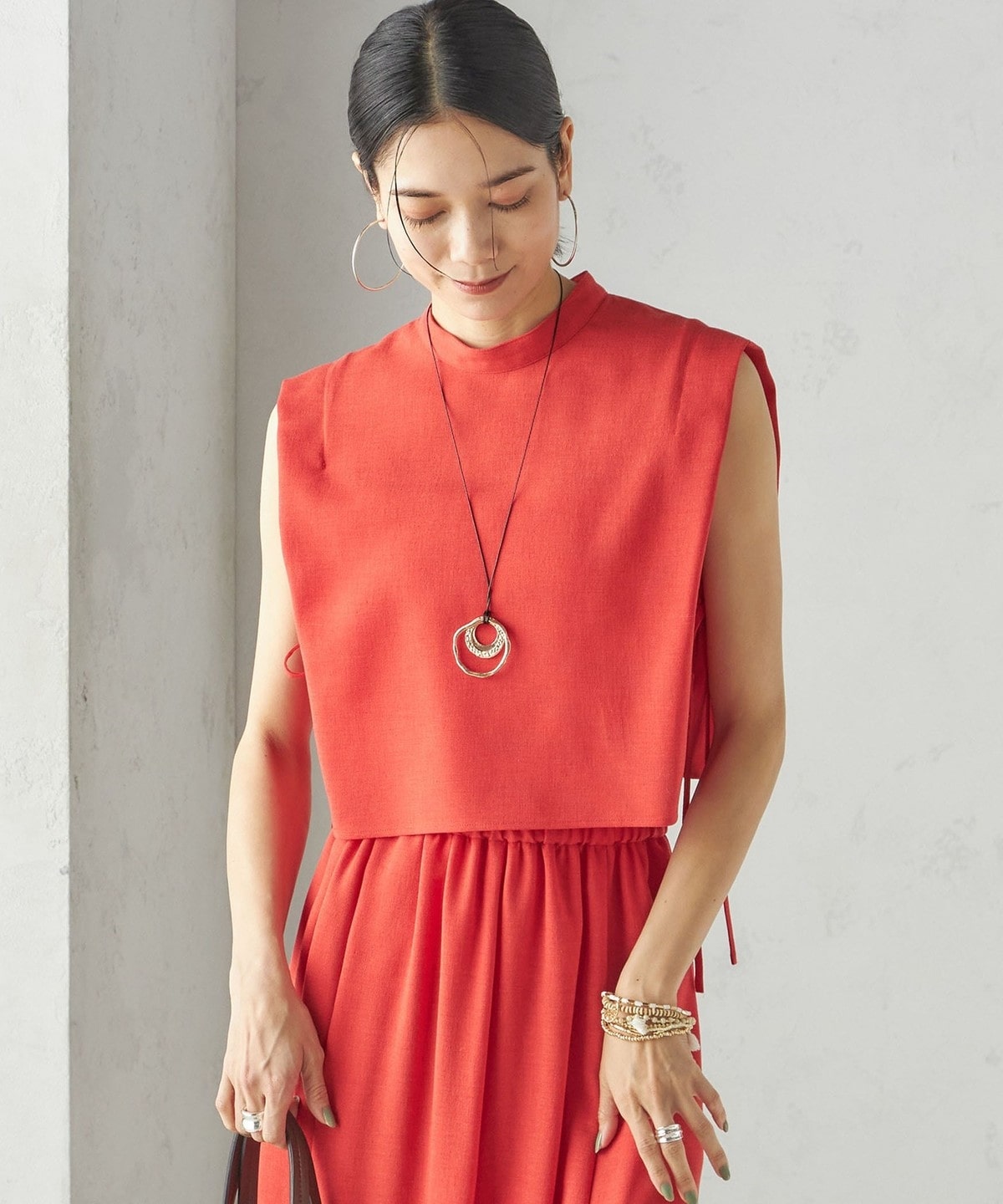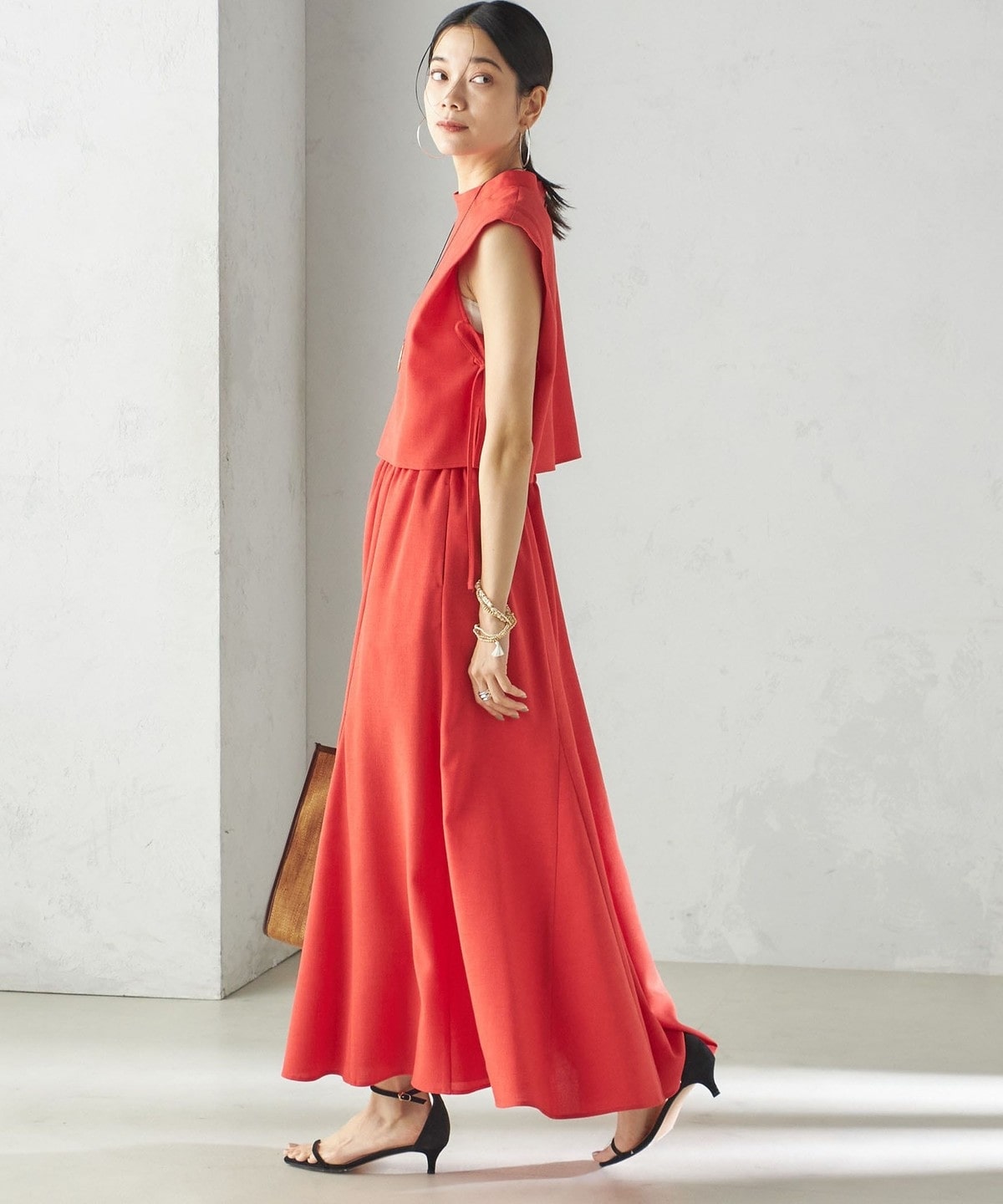 小泉里子コラボ:〈手洗い可能〉ツイル ウエスト テーパード パンツ