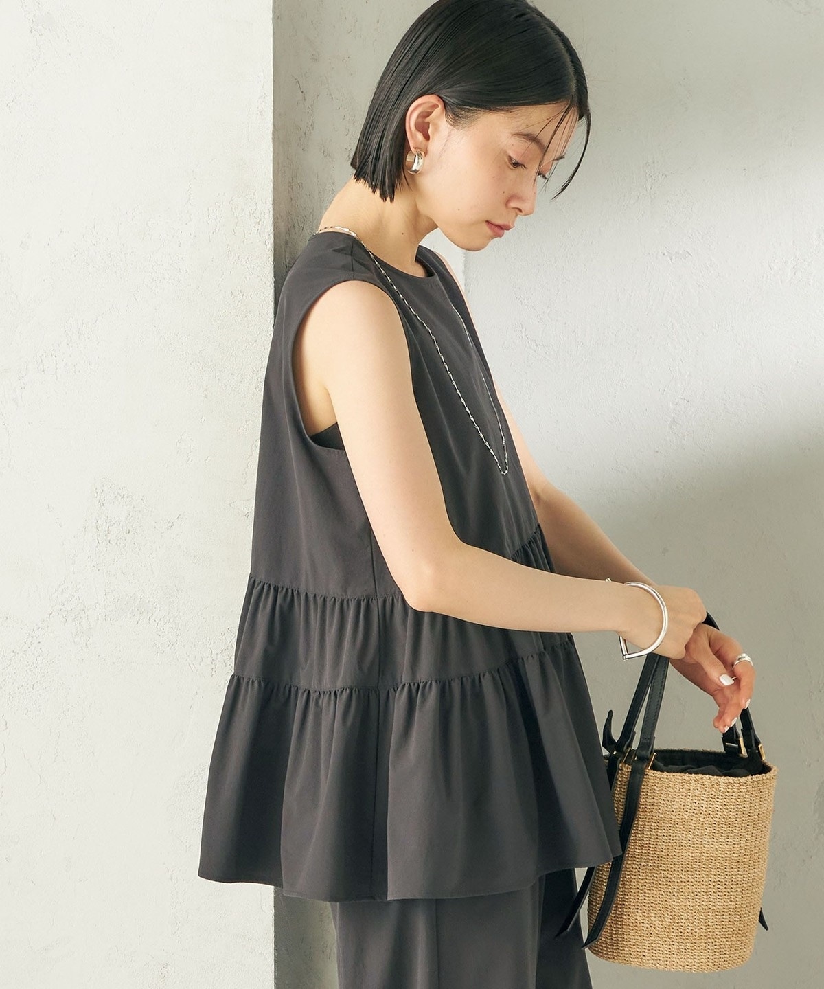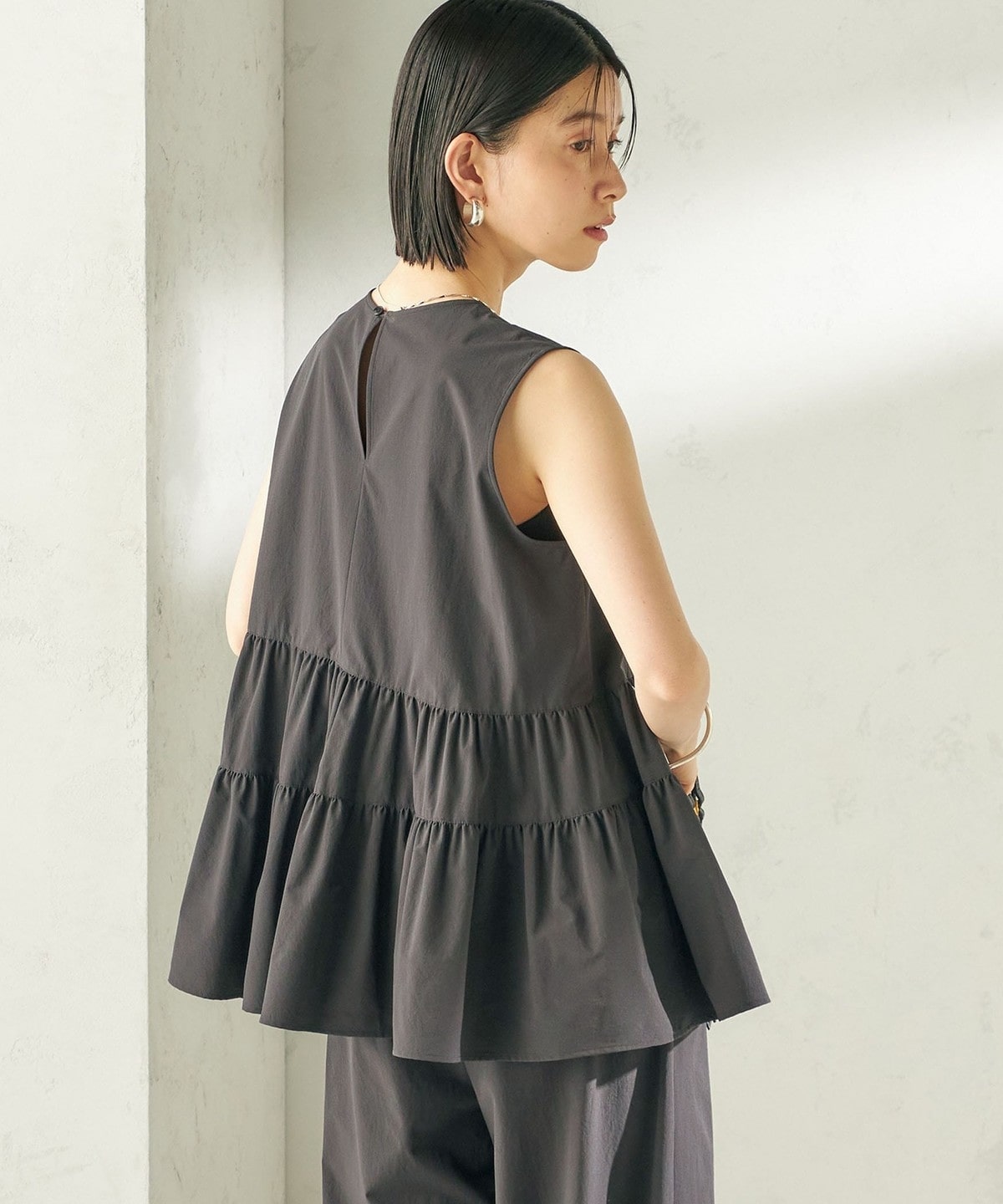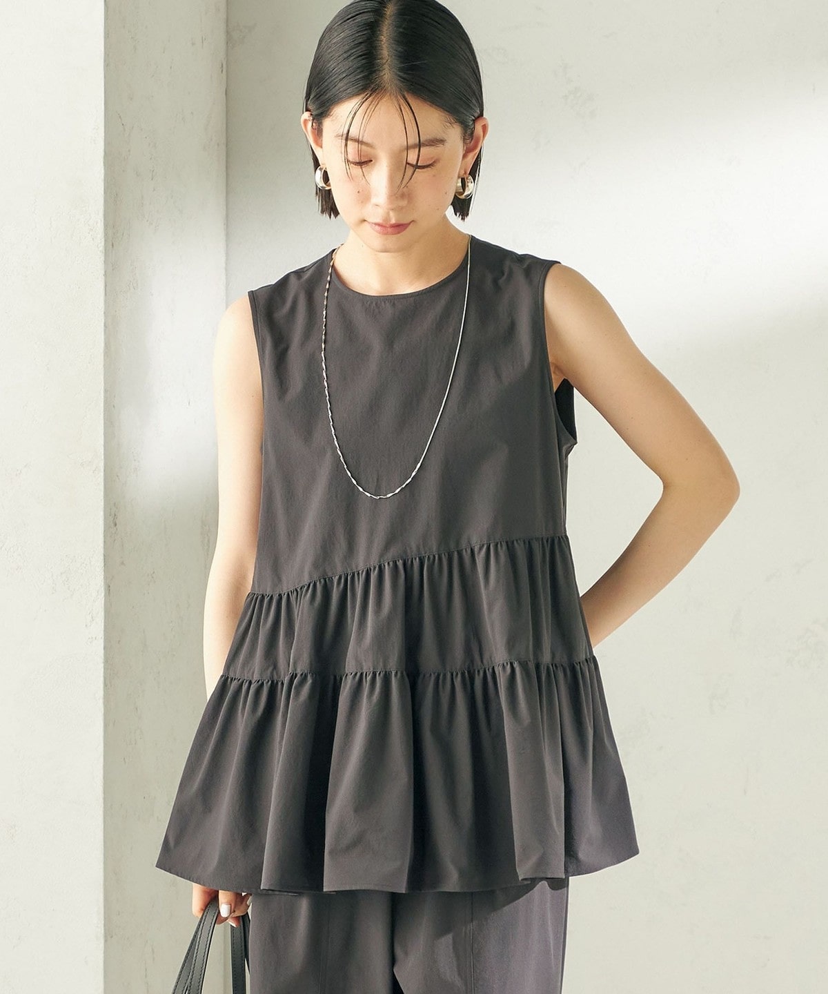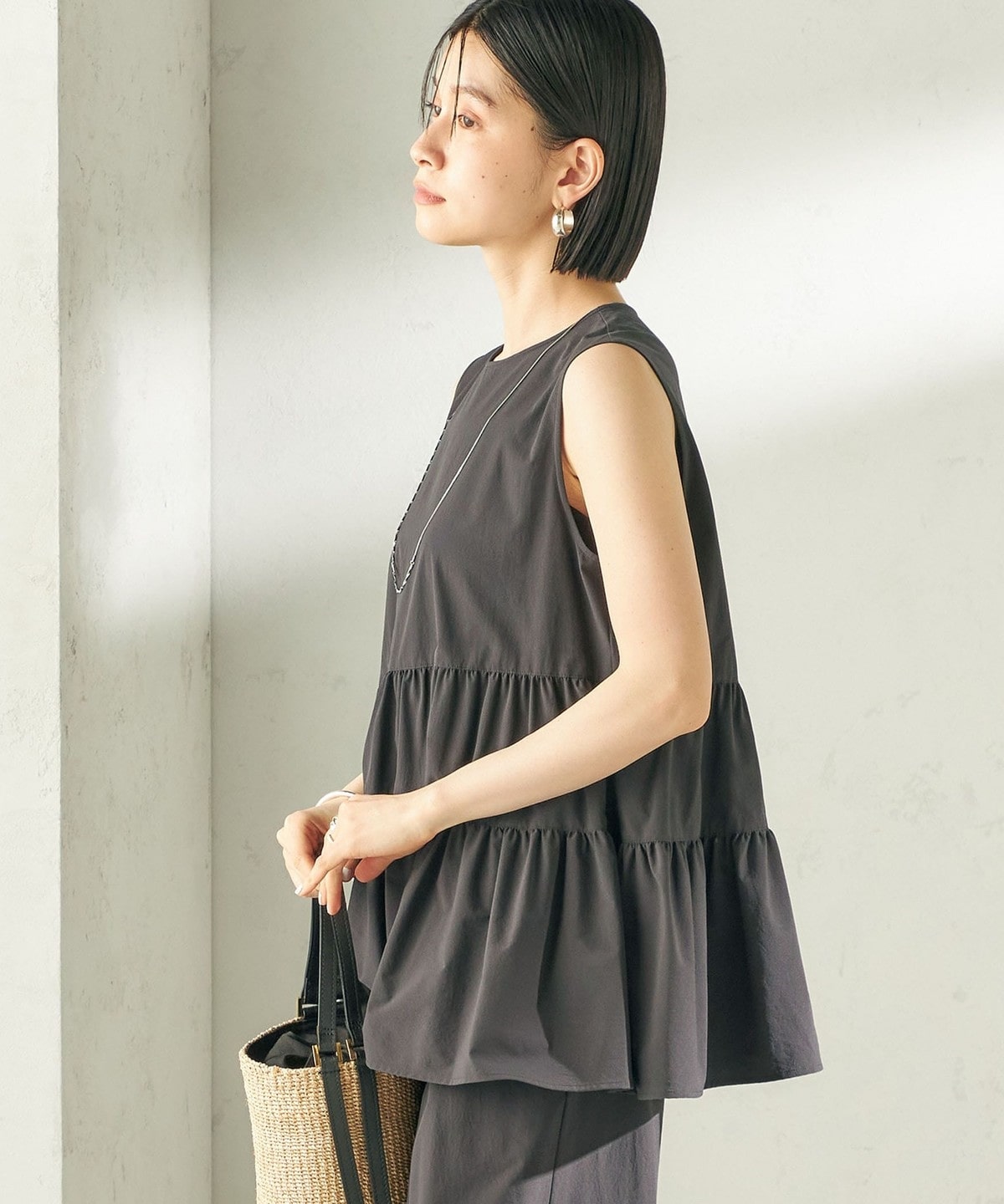 14. 《予約》〈接触冷感 / 撥水加工〉TEXBRID(R) タフタ ノースリーブ ブラウス