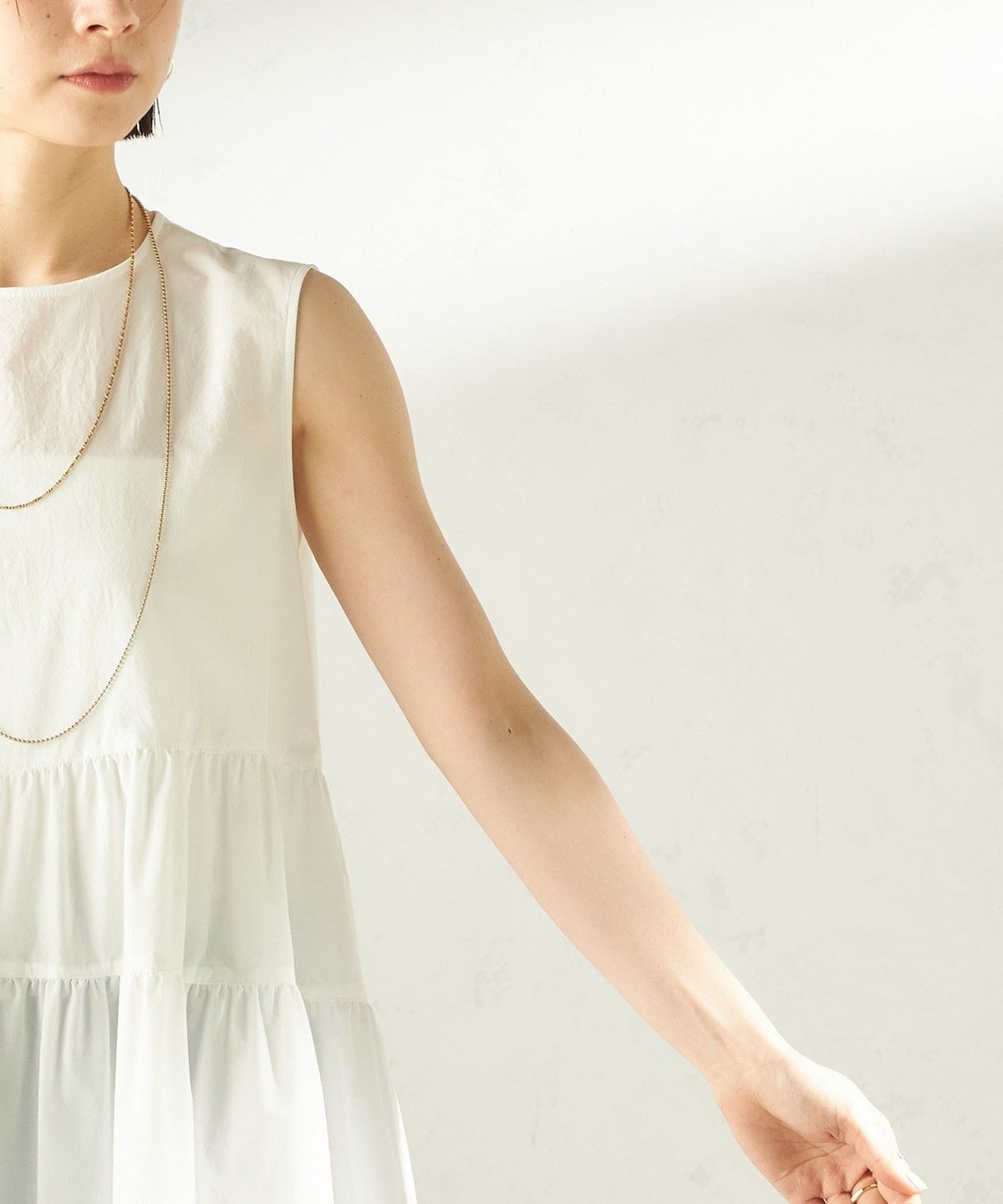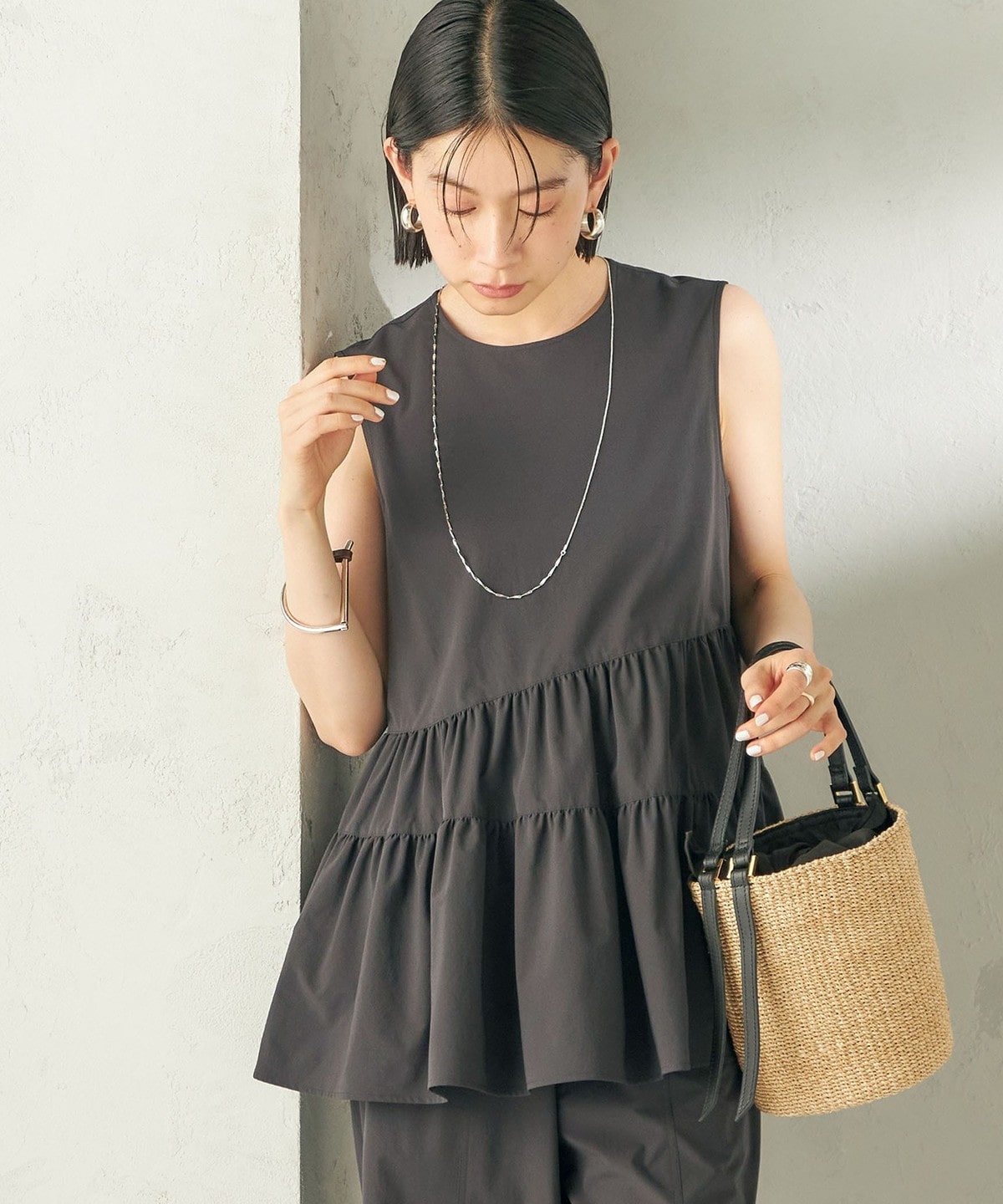 さりげないアシンメトリーデザインで、単調になりがちなティアードに動きをプラスし、日常に溶け込みながらも他にはないデザインに仕上げています。