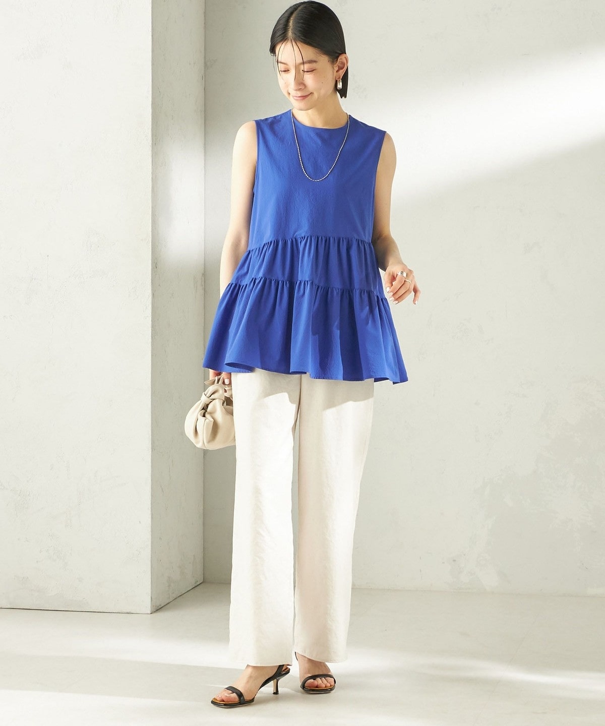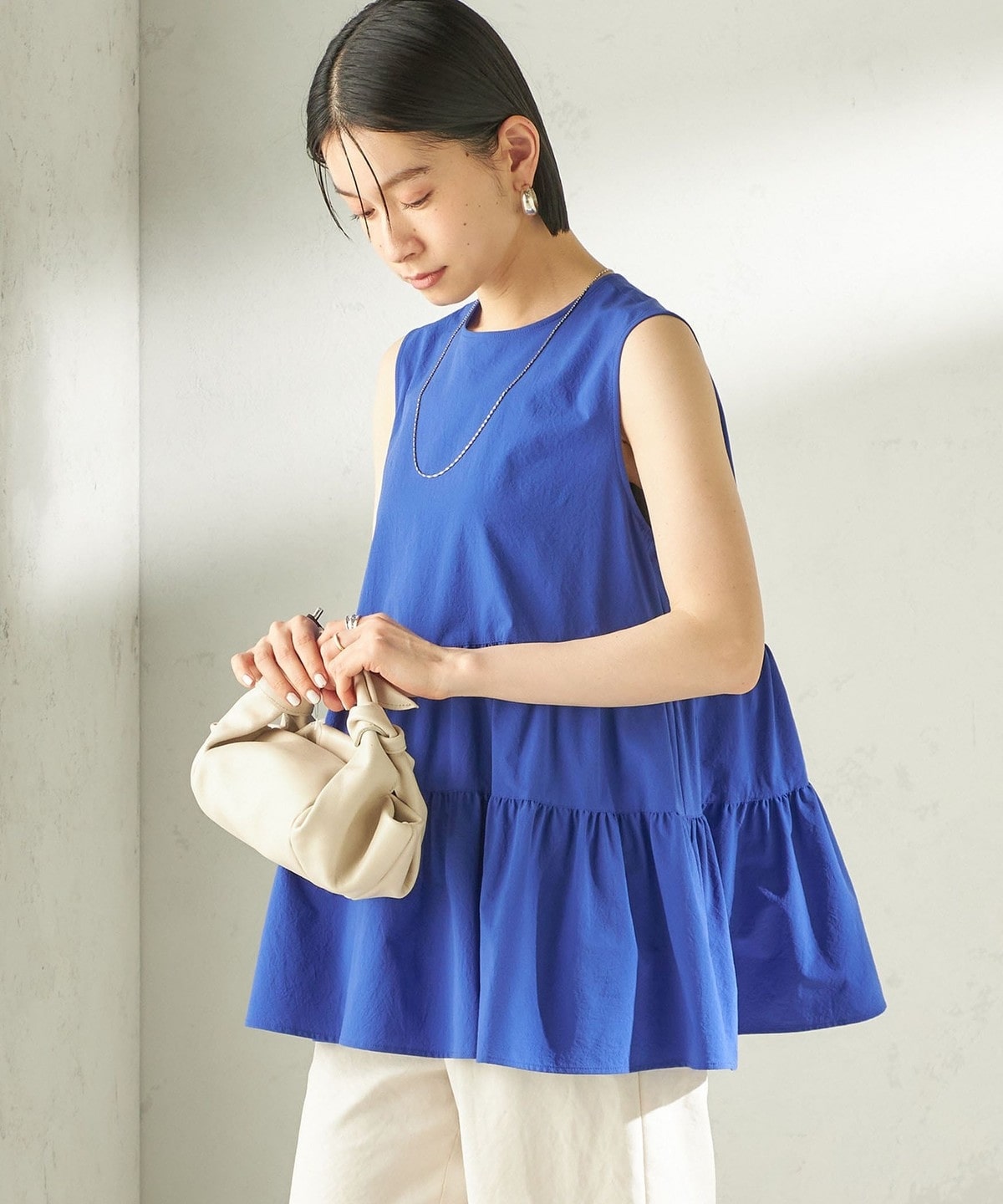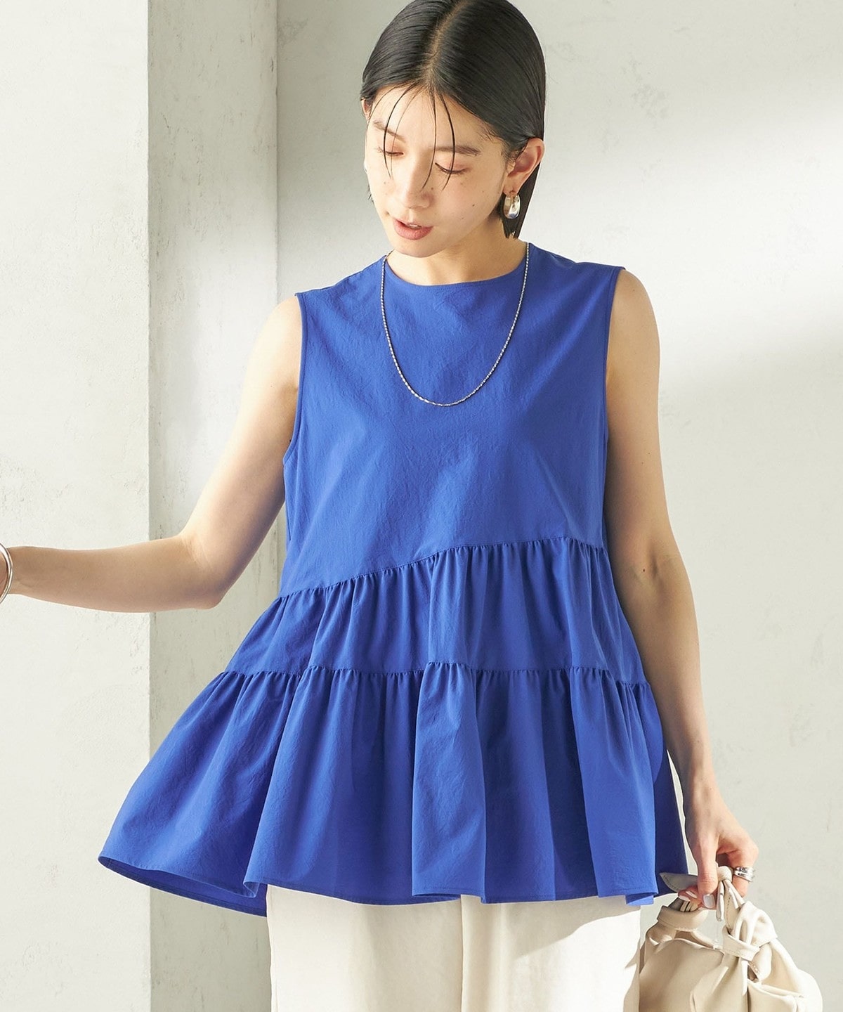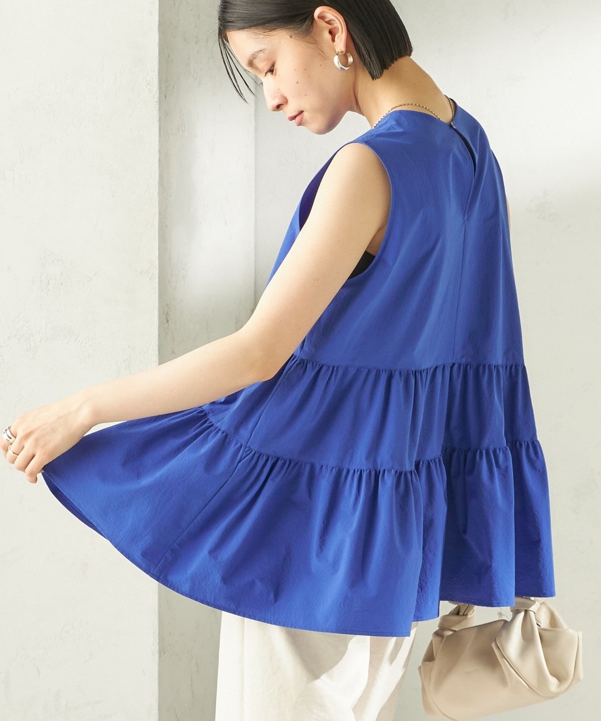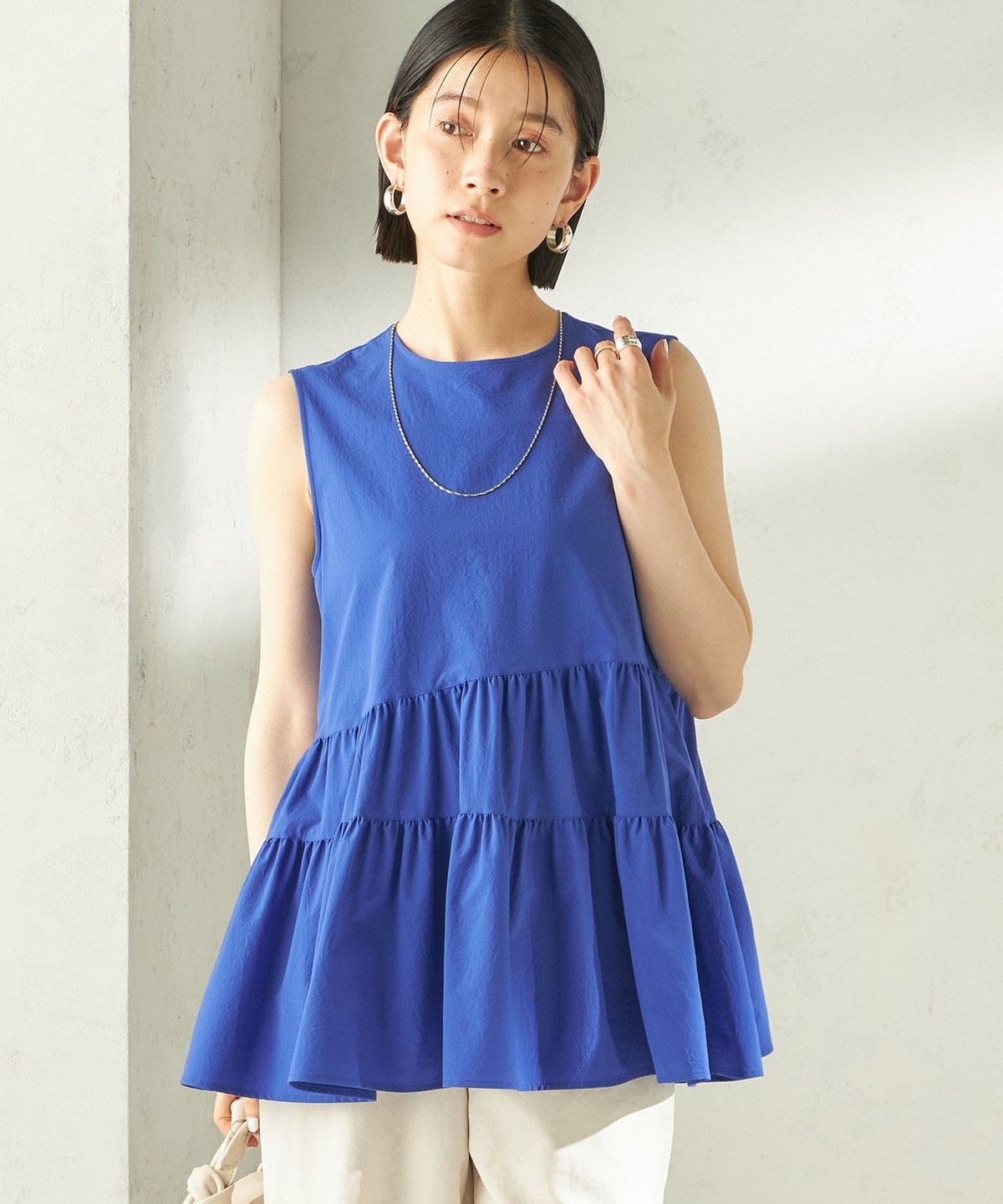 3. 《予約》〈接触冷感 / 撥水加工〉TEXBRID(R) タフタ ノースリーブ ブラウス ロイヤルブルー