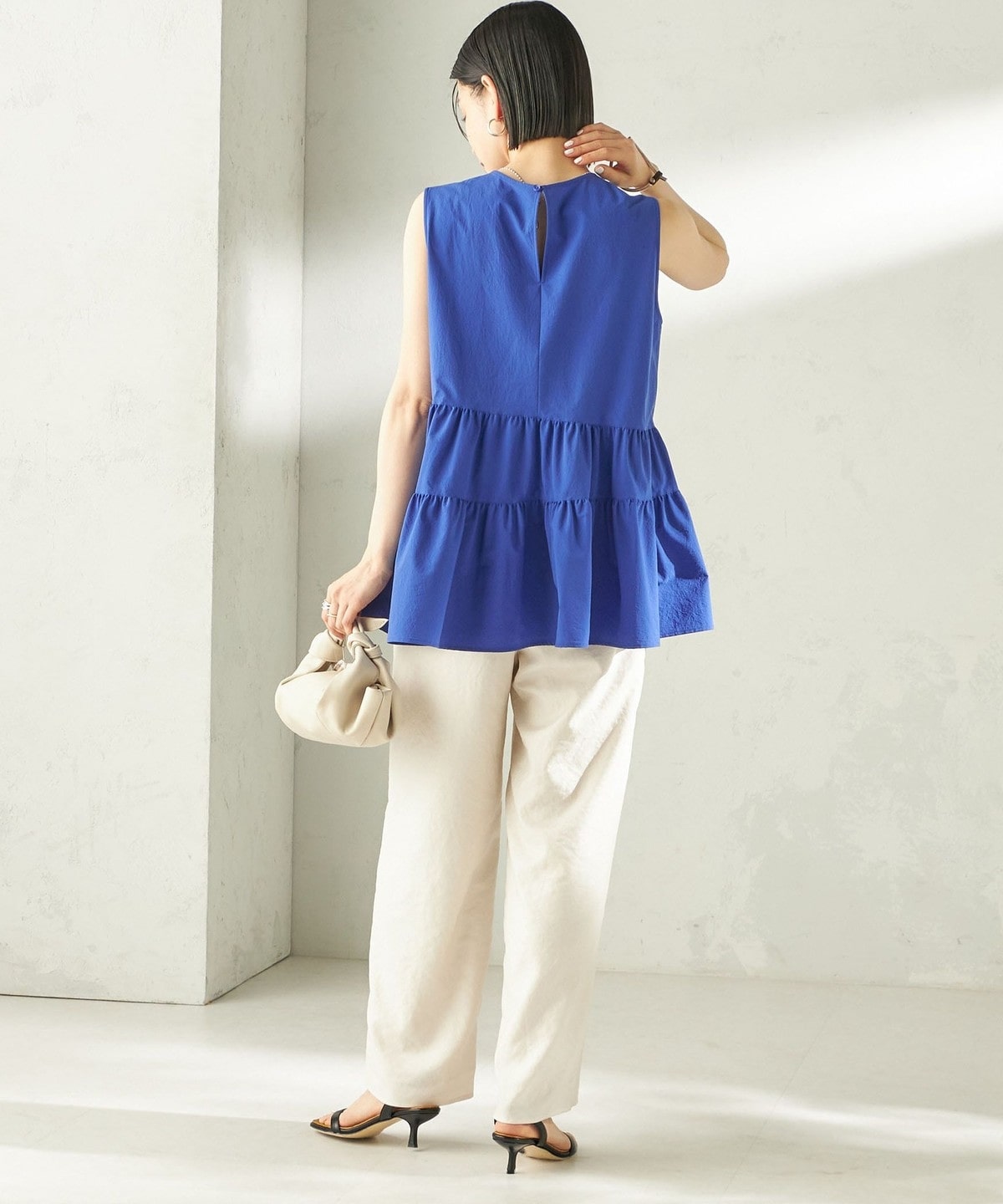 4. 《予約》〈接触冷感 / 撥水加工〉TEXBRID(R) タフタ ノースリーブ ブラウス