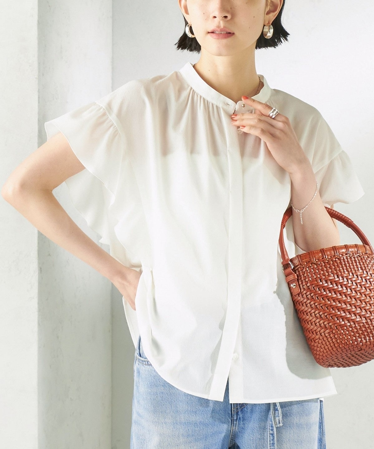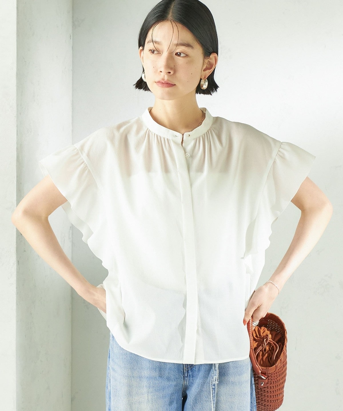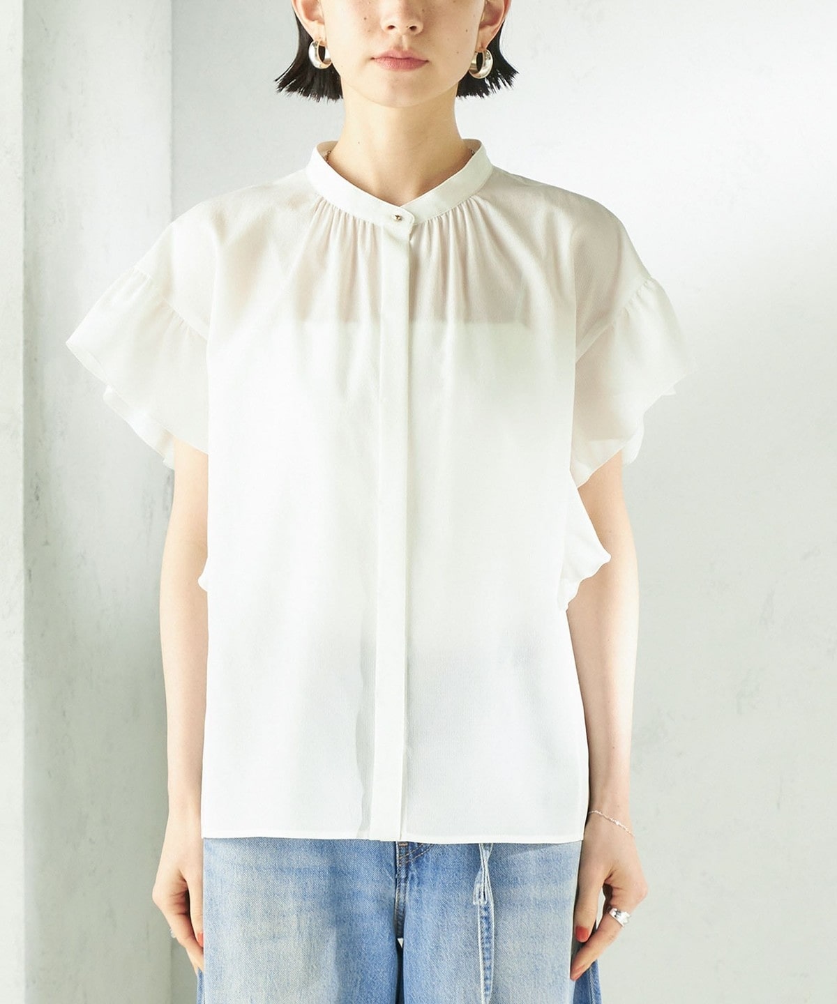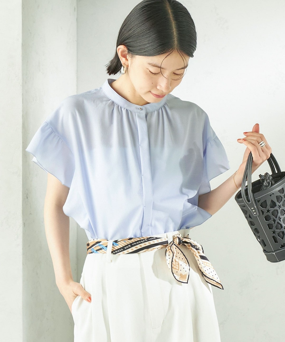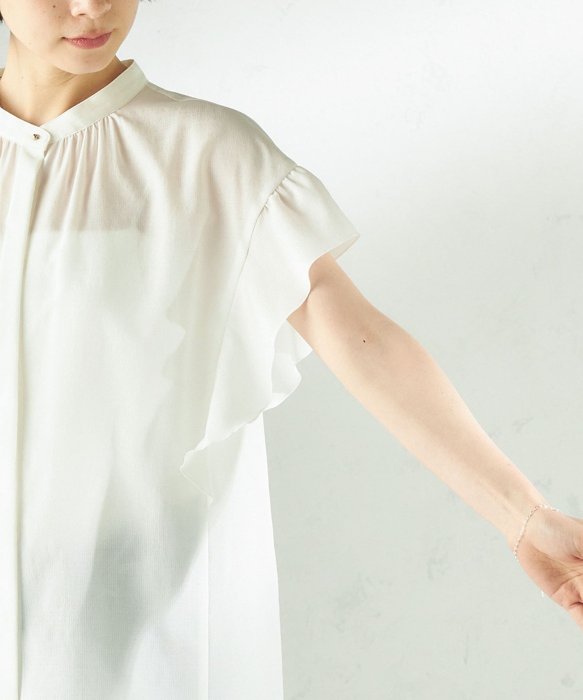23. 《予約》〈接触冷感/洗濯機可能〉SUUSUU フリル ギャザー ブラウス