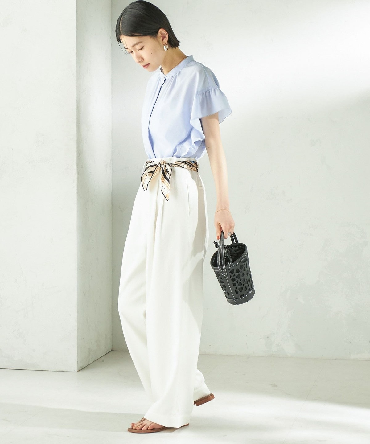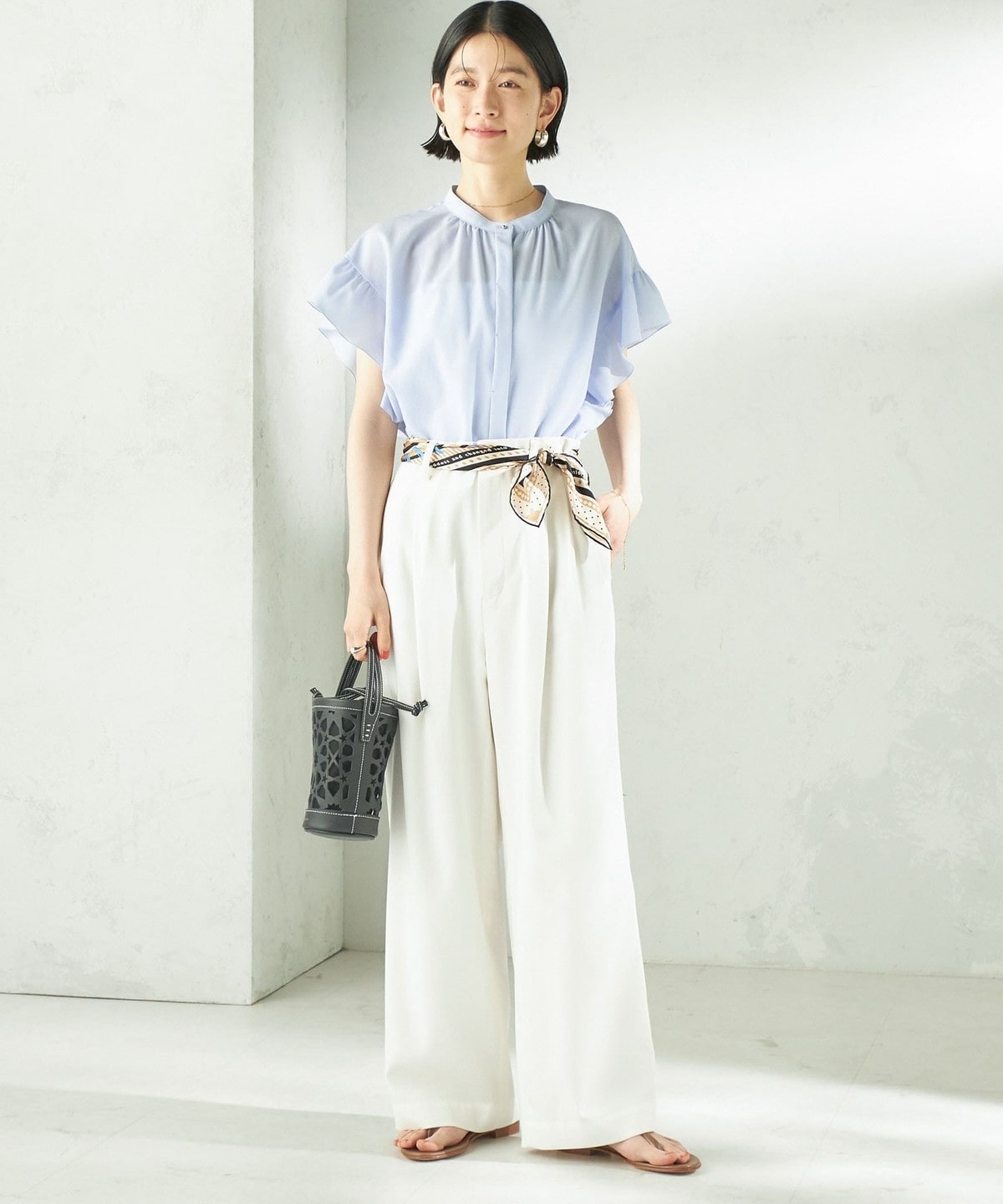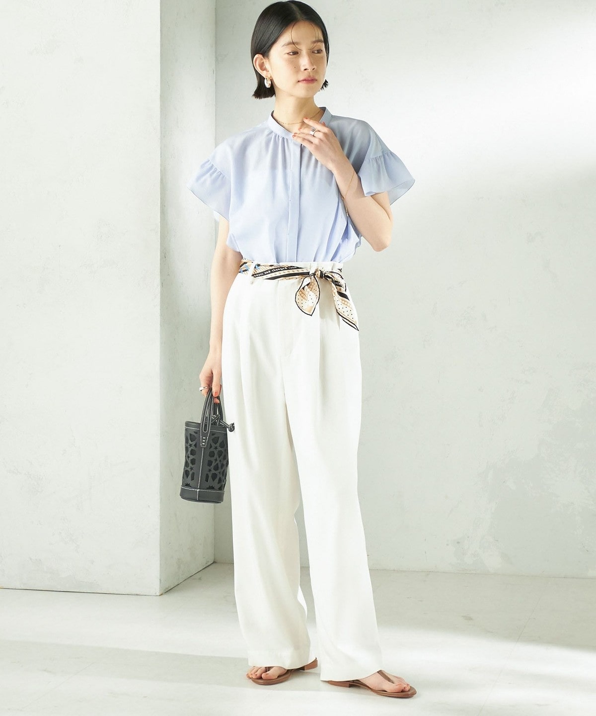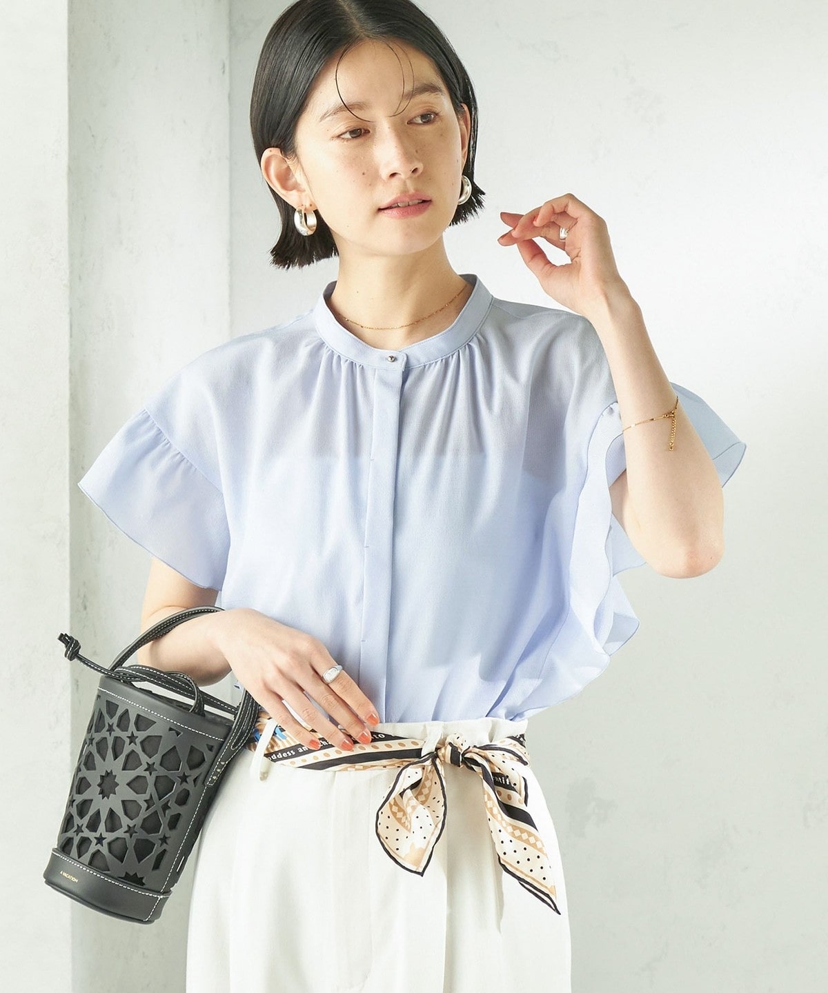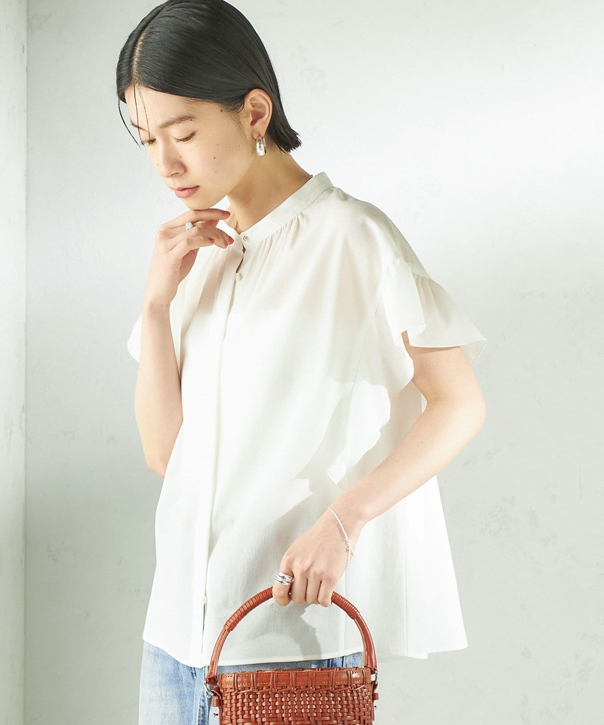23. 《予約》〈接触冷感/洗濯機可能〉SUUSUU フリル ギャザー ブラウス