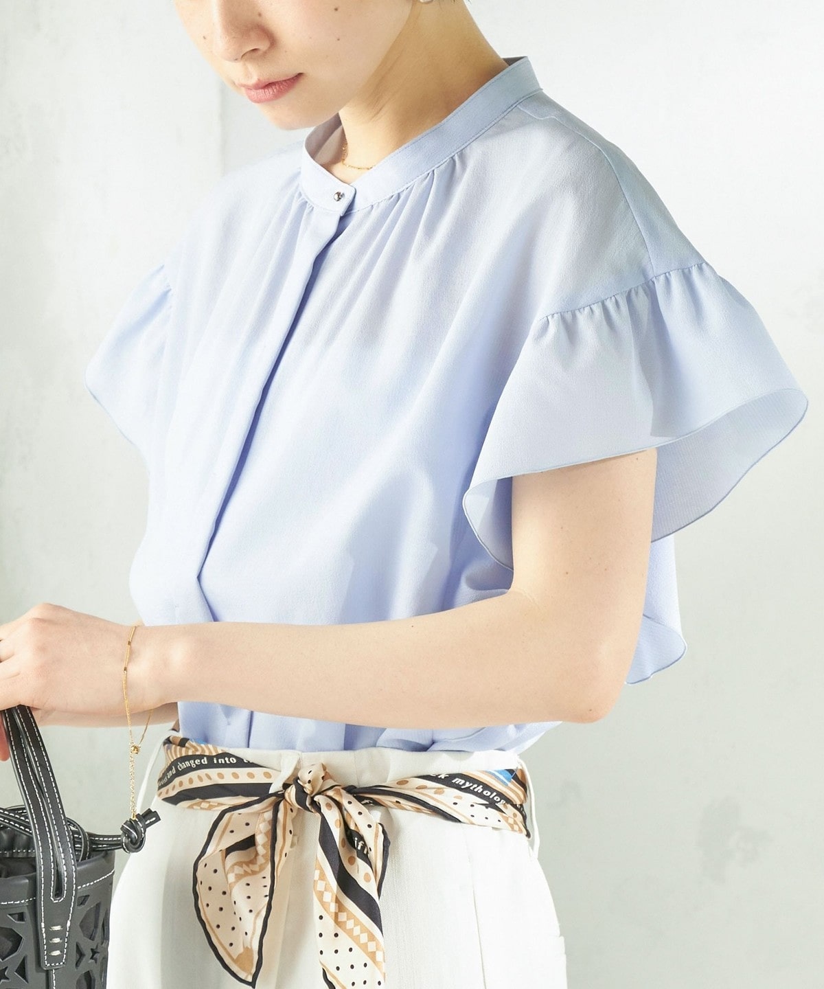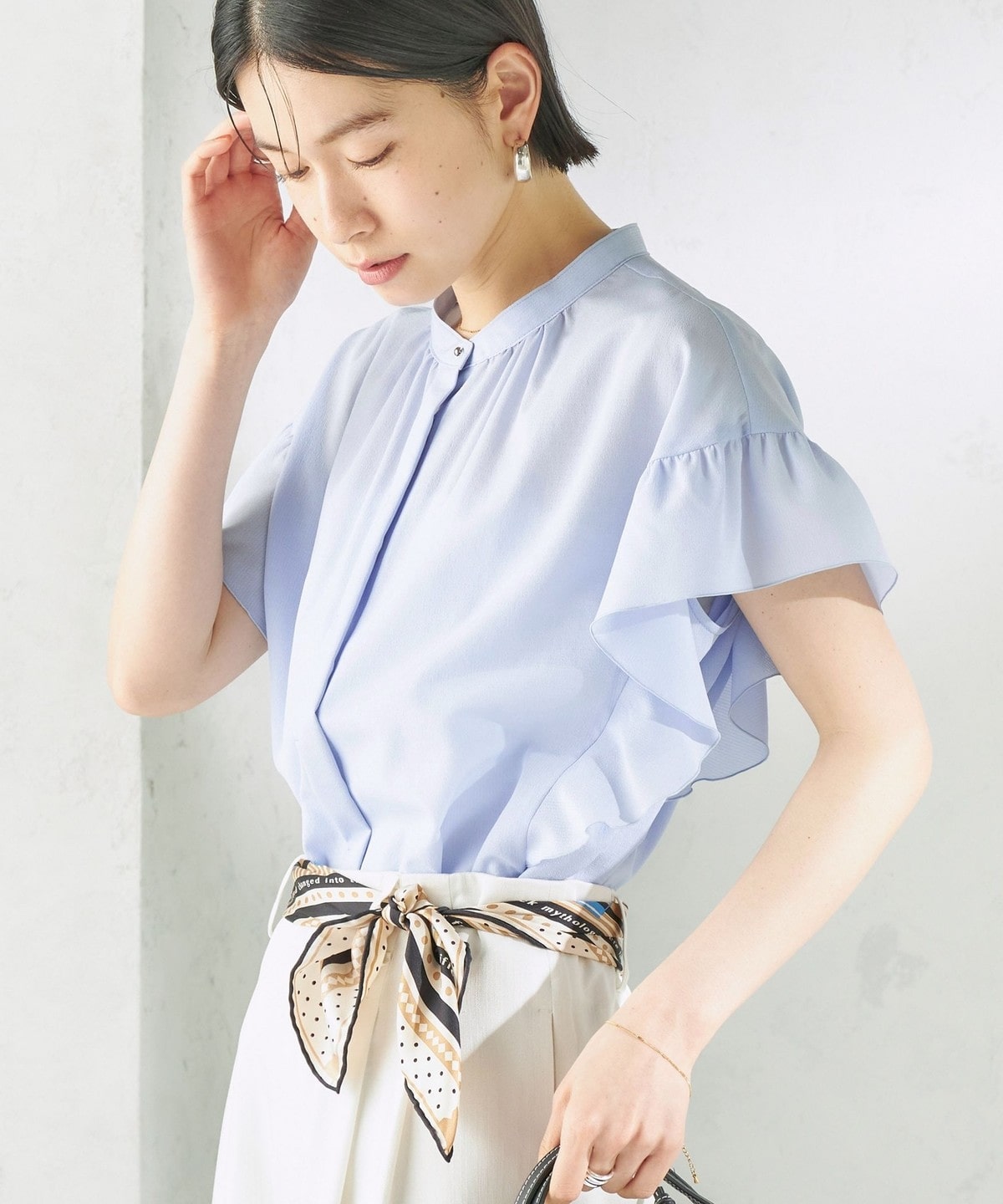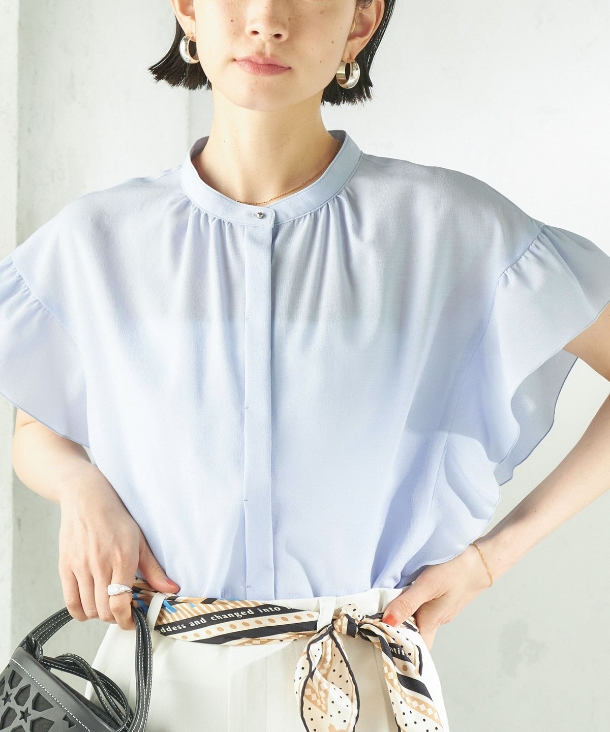1. 《予約》〈接触冷感/洗濯機可能〉SUUSUU フリル ギャザー ブラウス ライトブルー