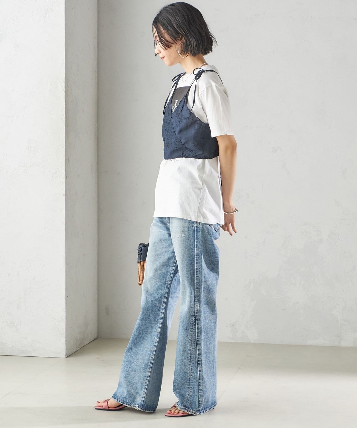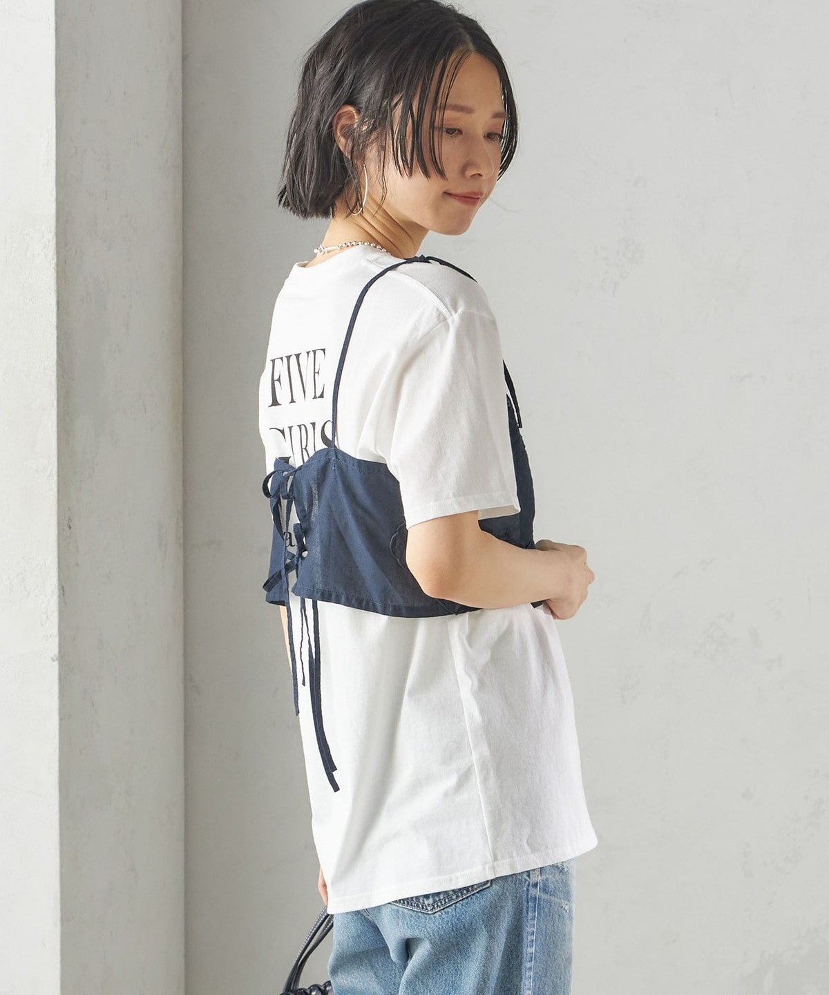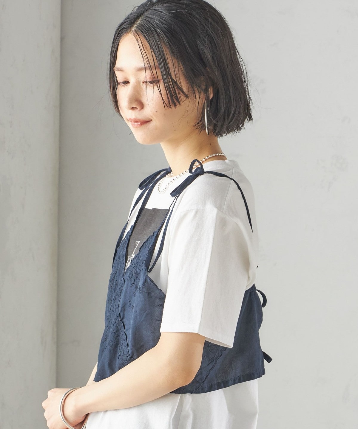タンクトップや半袖Tシャツ、ロンTEEなどカットソーとの合わせはもちろん、秋冬シーズンはハイゲージニット〜ローゲージニットまでシーズン問わずレイヤードを楽しめるのが魅力。