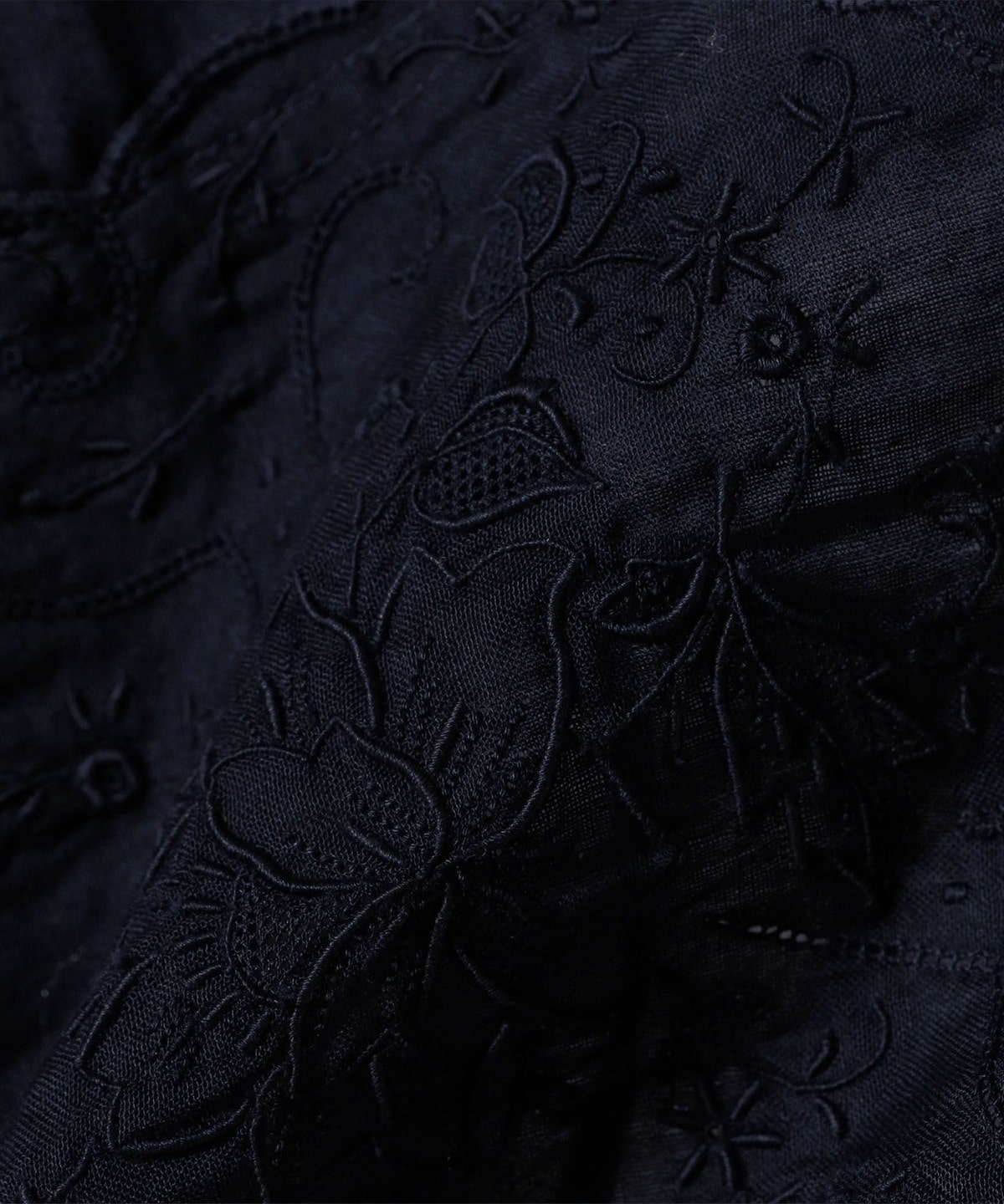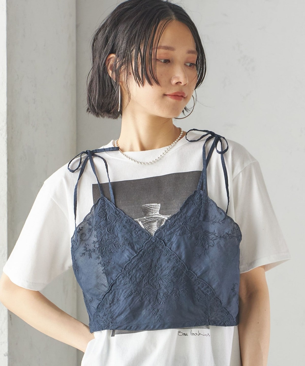 ※本製品は、中国汕頭(スワトウ)刺繍のデッドストックのハンカチを使用しております。ハンカチの刺繍は、全て手仕事で作られています。汕頭刺繍独自の手法による、刺繍の下絵の黒インクが残っているのが特徴です。ほつれ・傷や小さな穴・汚れ・色ムラがある場合がございます。デッドストックならではの風合いをお楽しみください。